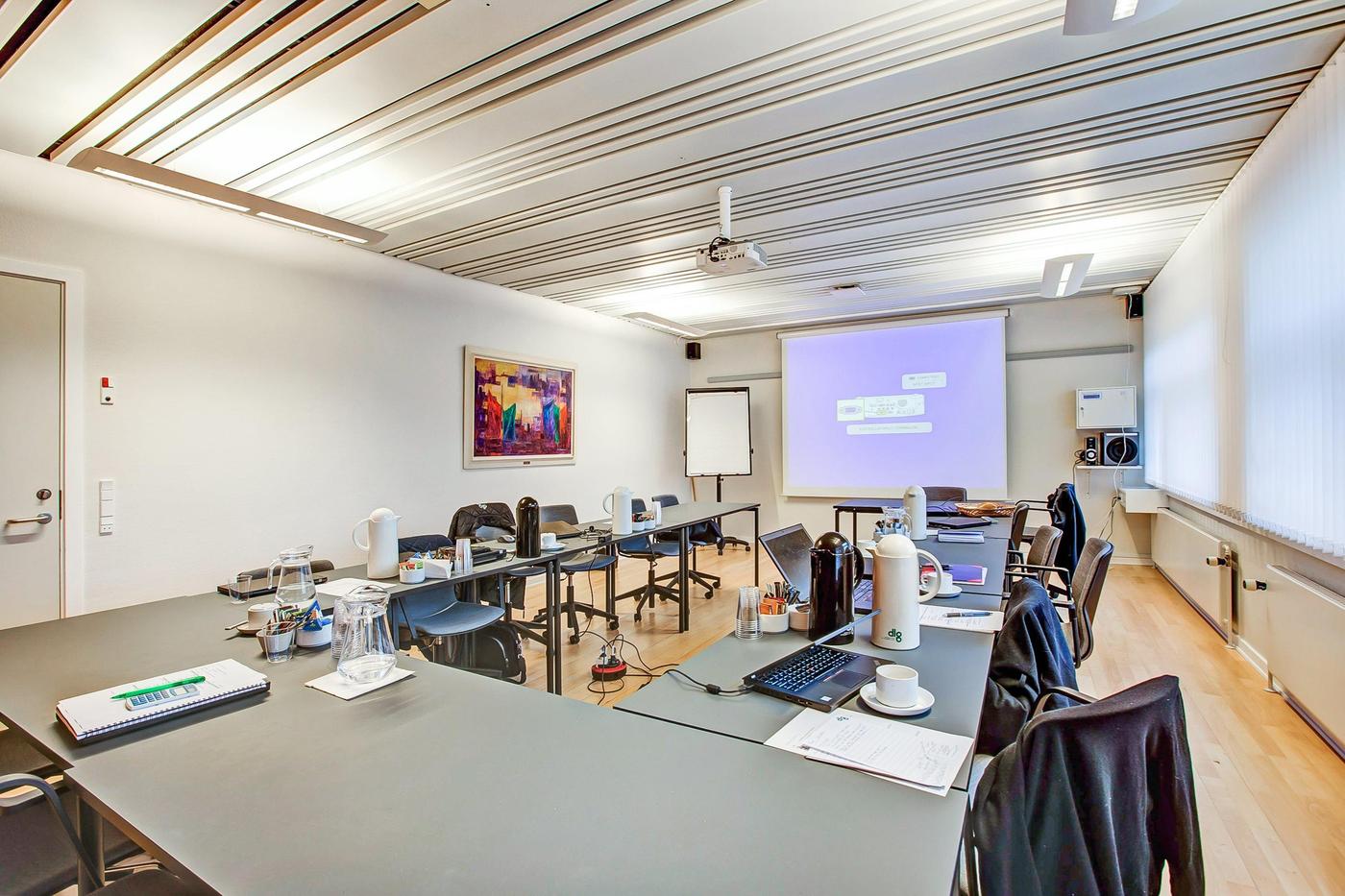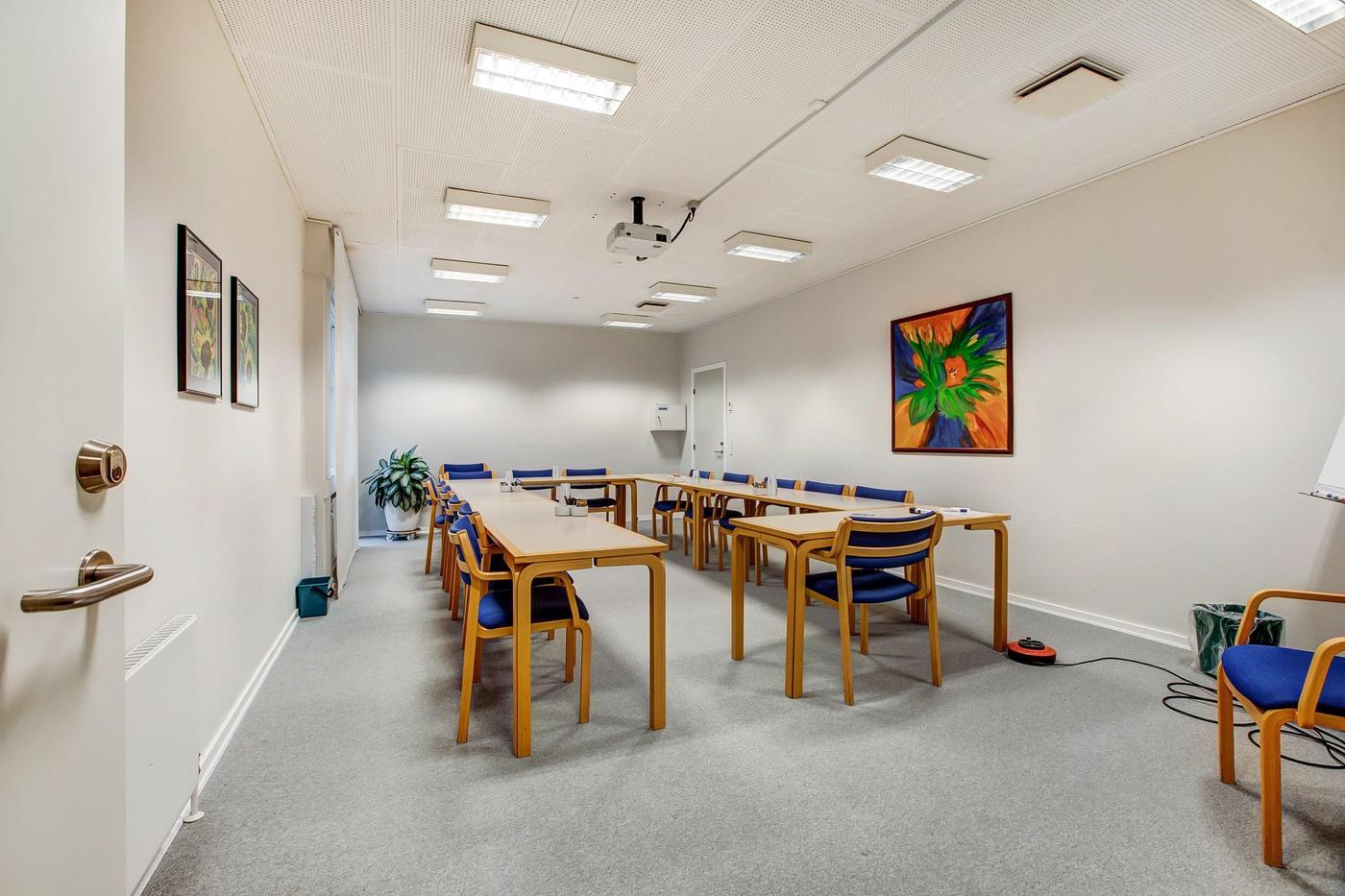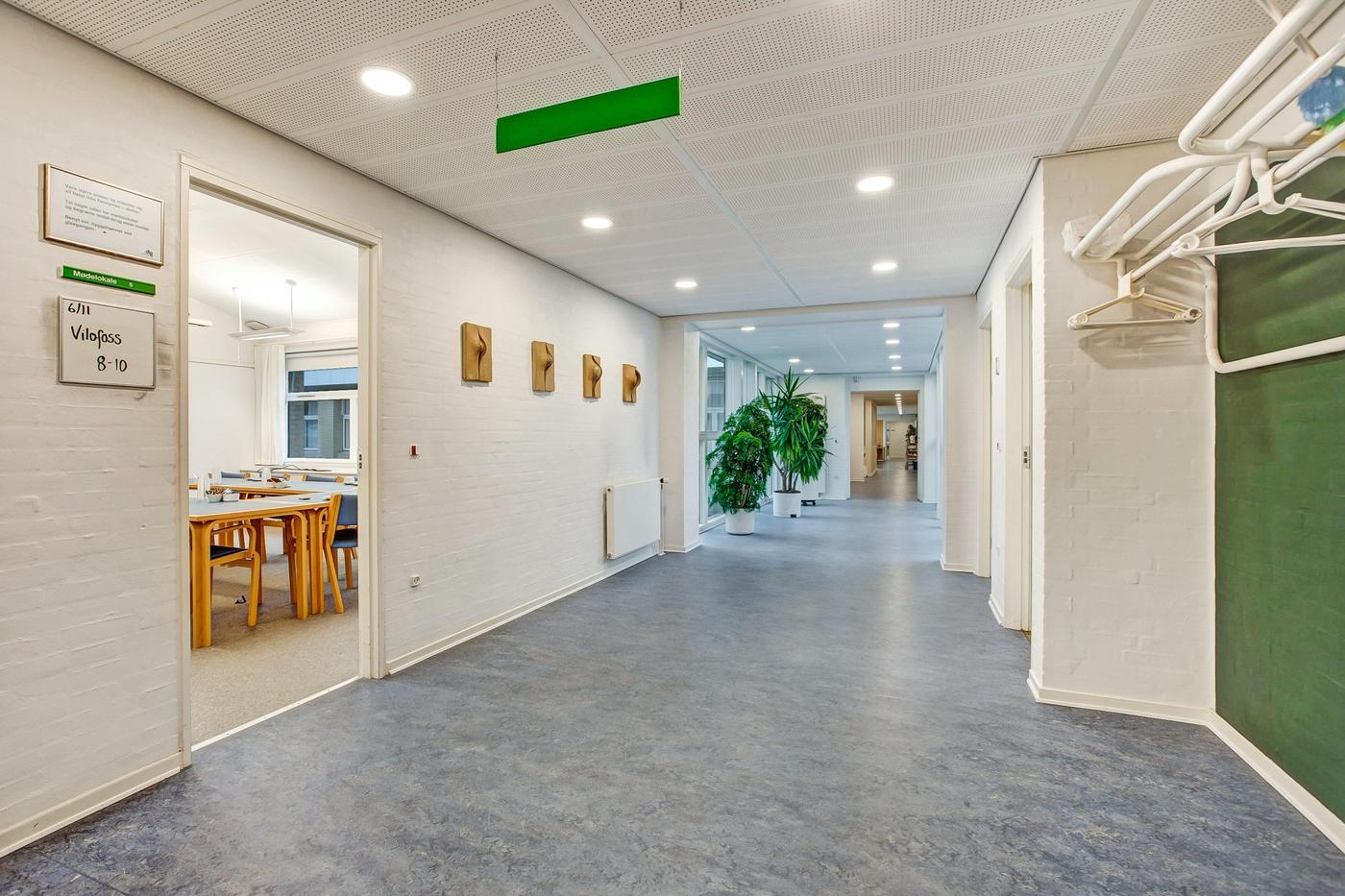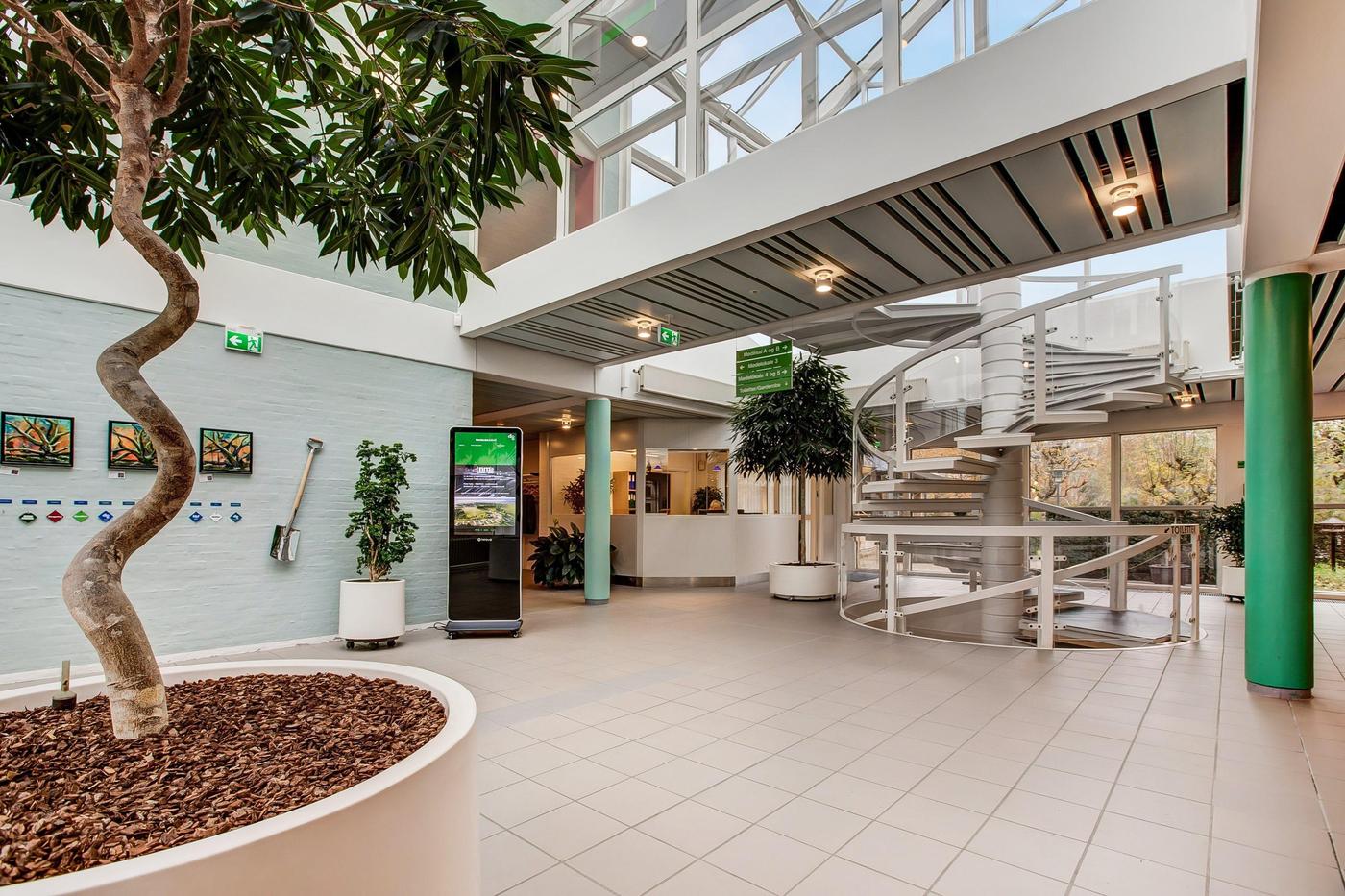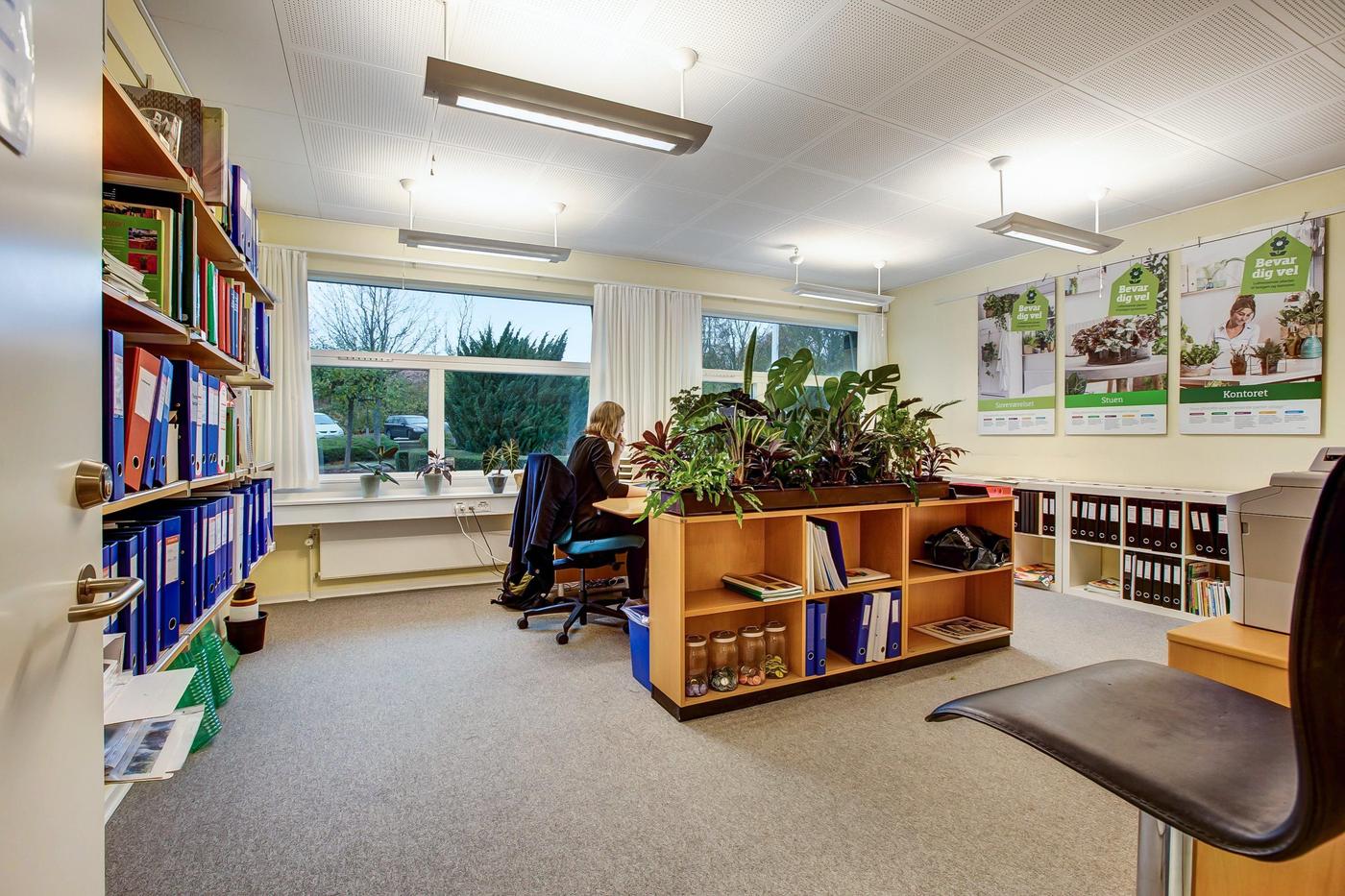 Indretning Kontorejendommen entreres via flot, stor hall, der fører dig ind til kontor-, møde- og konferencefaciliteter i gode størrelser. Herudover har kontorejendommen et særdeles spændende kantineområde samt stort auditorium.