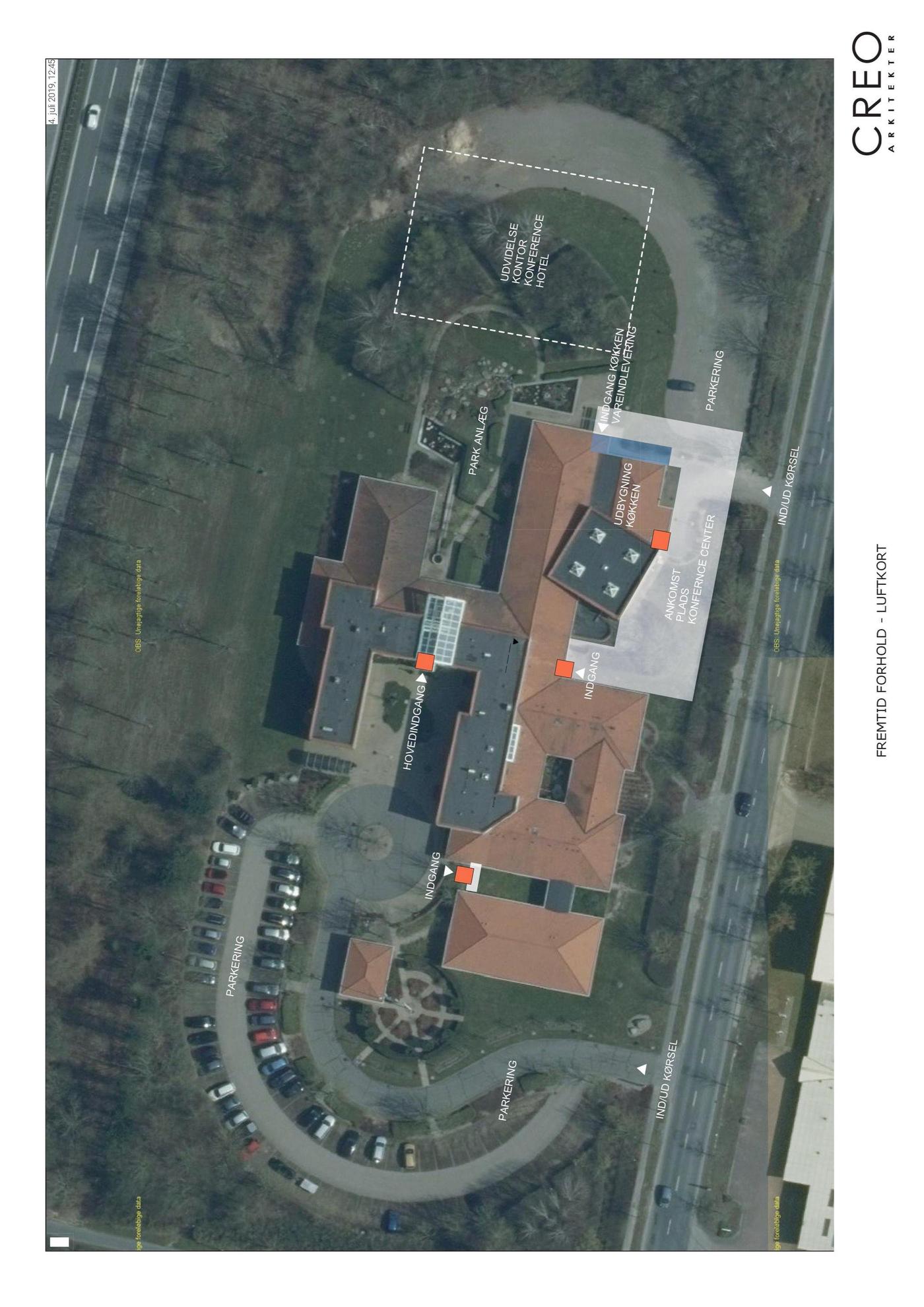 -opdeling af bygningen i mindre enheder for at skabe stor fleksibilitet -fælles reception, fælles møde- og kantinefaciliteter -bedre udnyttelse af foyer med møde, kontor, ny trappe, elevator -bedre udnyttelse af cellekontorer til åbent kontormiljø -flere mulige indgange til ejendommen -kantine til spisning, konferencer, catering evt. udlejning af festlokaler -mulig udvidelse af parkeringsarealer og bygninger mod øst