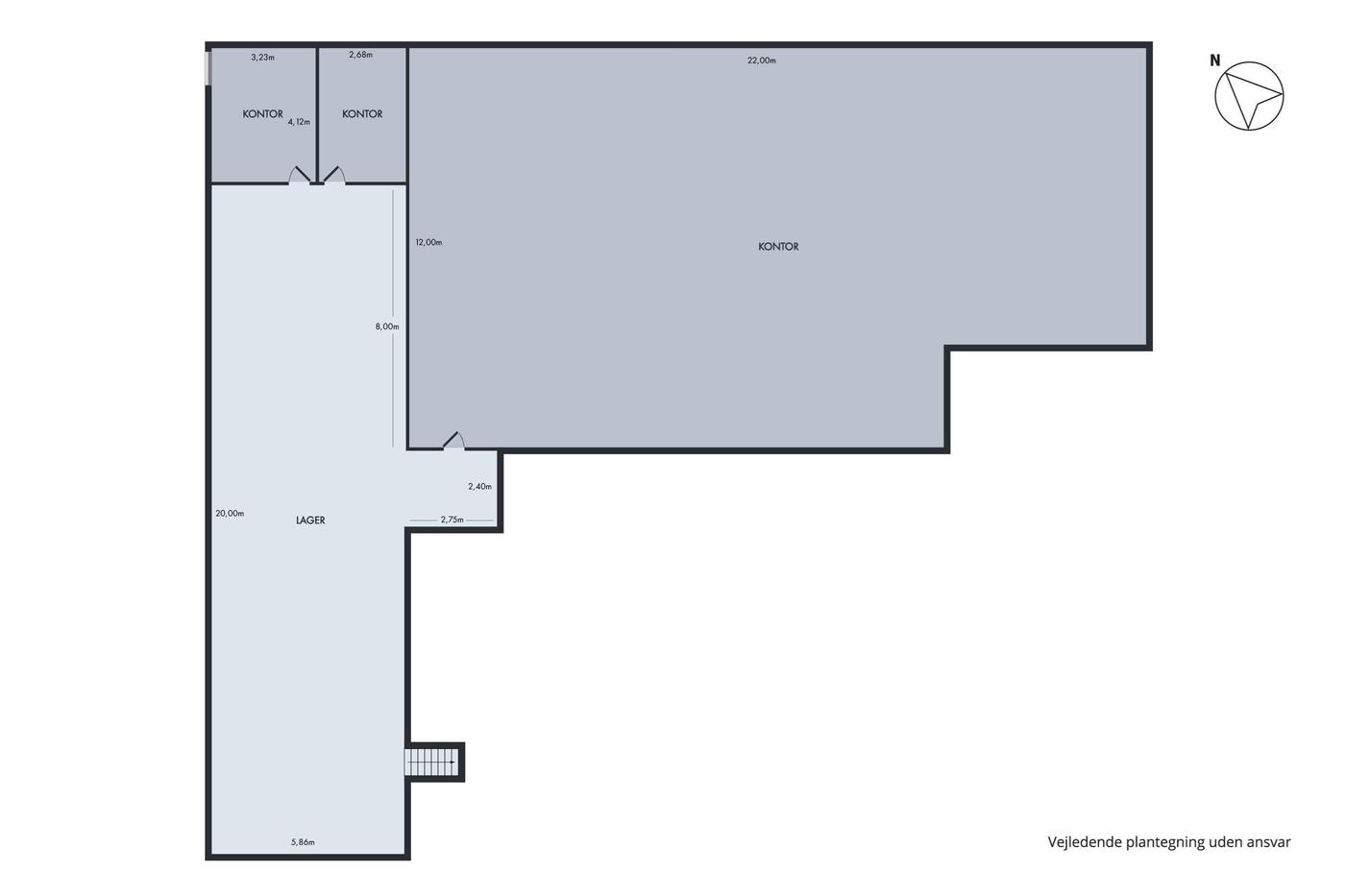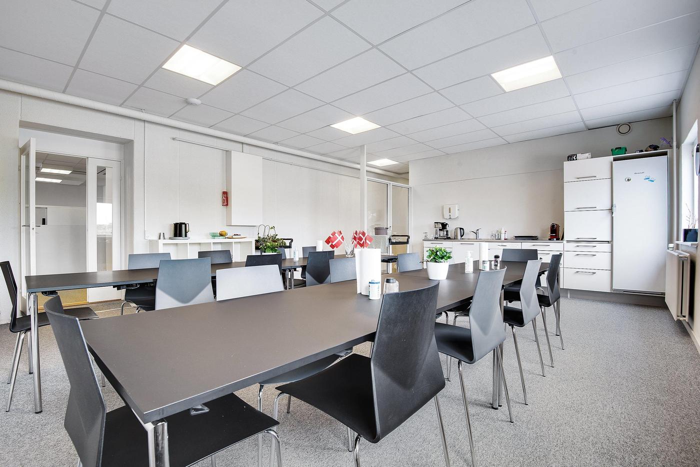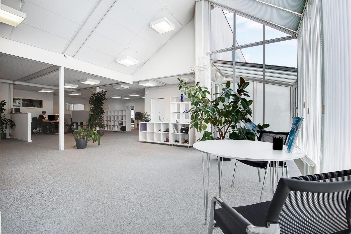 Kontorarealet på 239 m² indeholder stort forrumskontor, der nemt kan anvendes som butik/showroom. Derudover mødelokale samt yderligere et stort kontor. Stor frokoststue med pænt køkken samt toiletter. Kontorerne fremtræder pæne og indbydende.