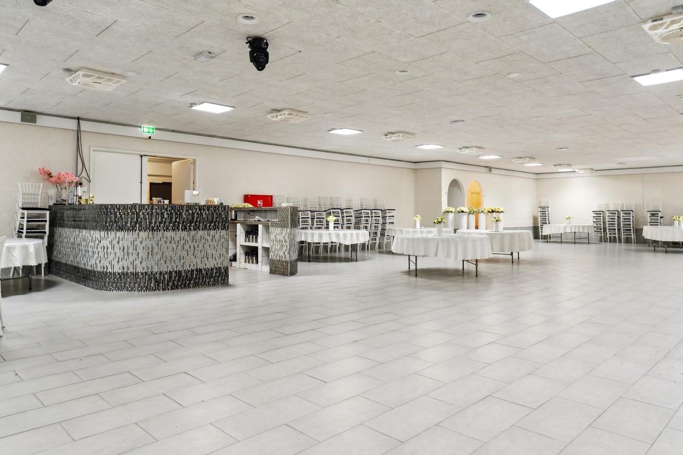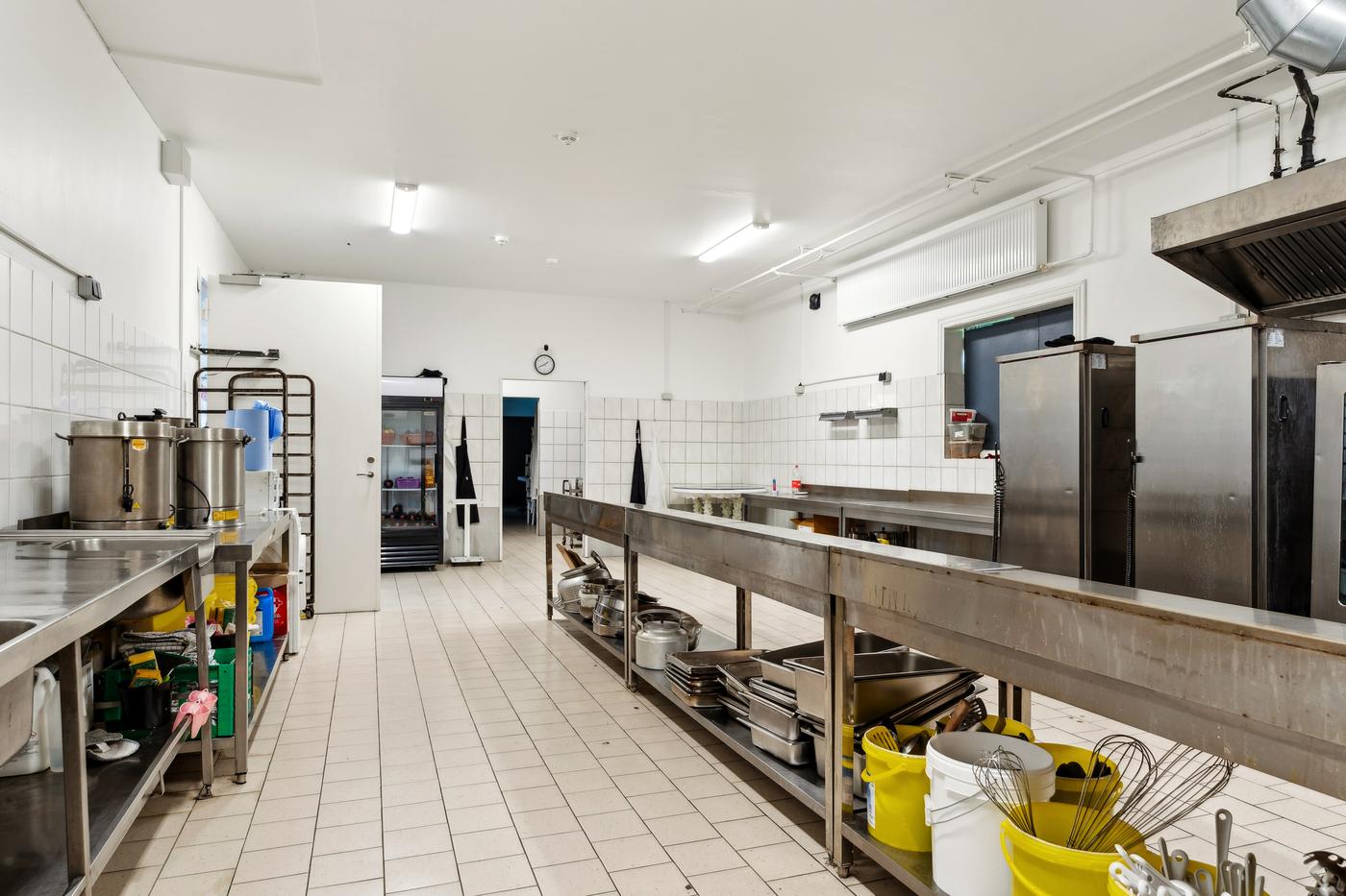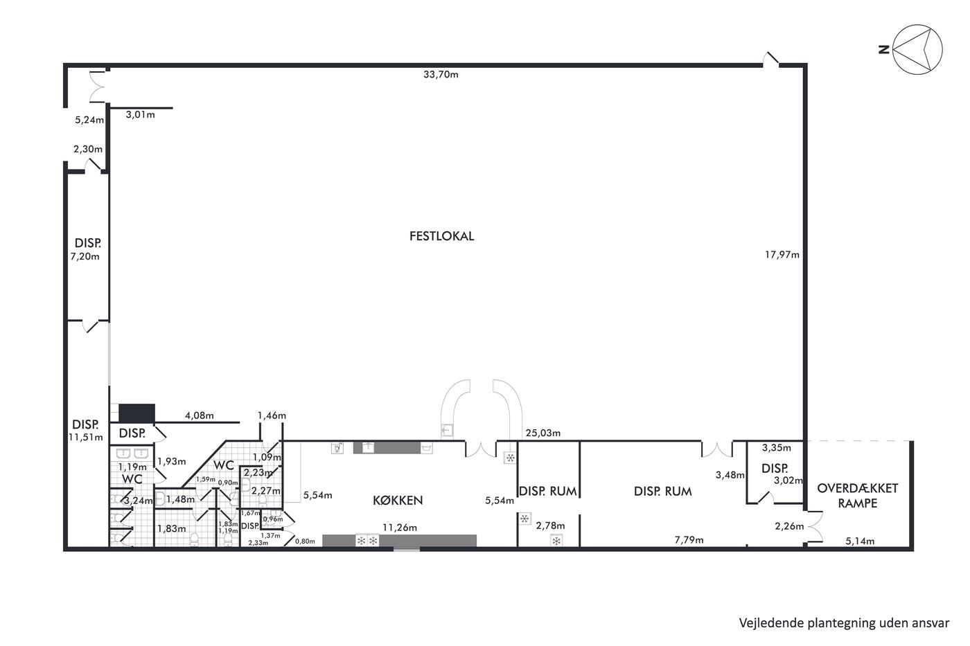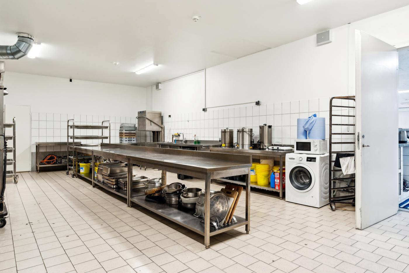 Ejendommen er indrettet med et stort festlokale, produktionskøkken, flere disponible rum samt gode toiletfaciliteter.