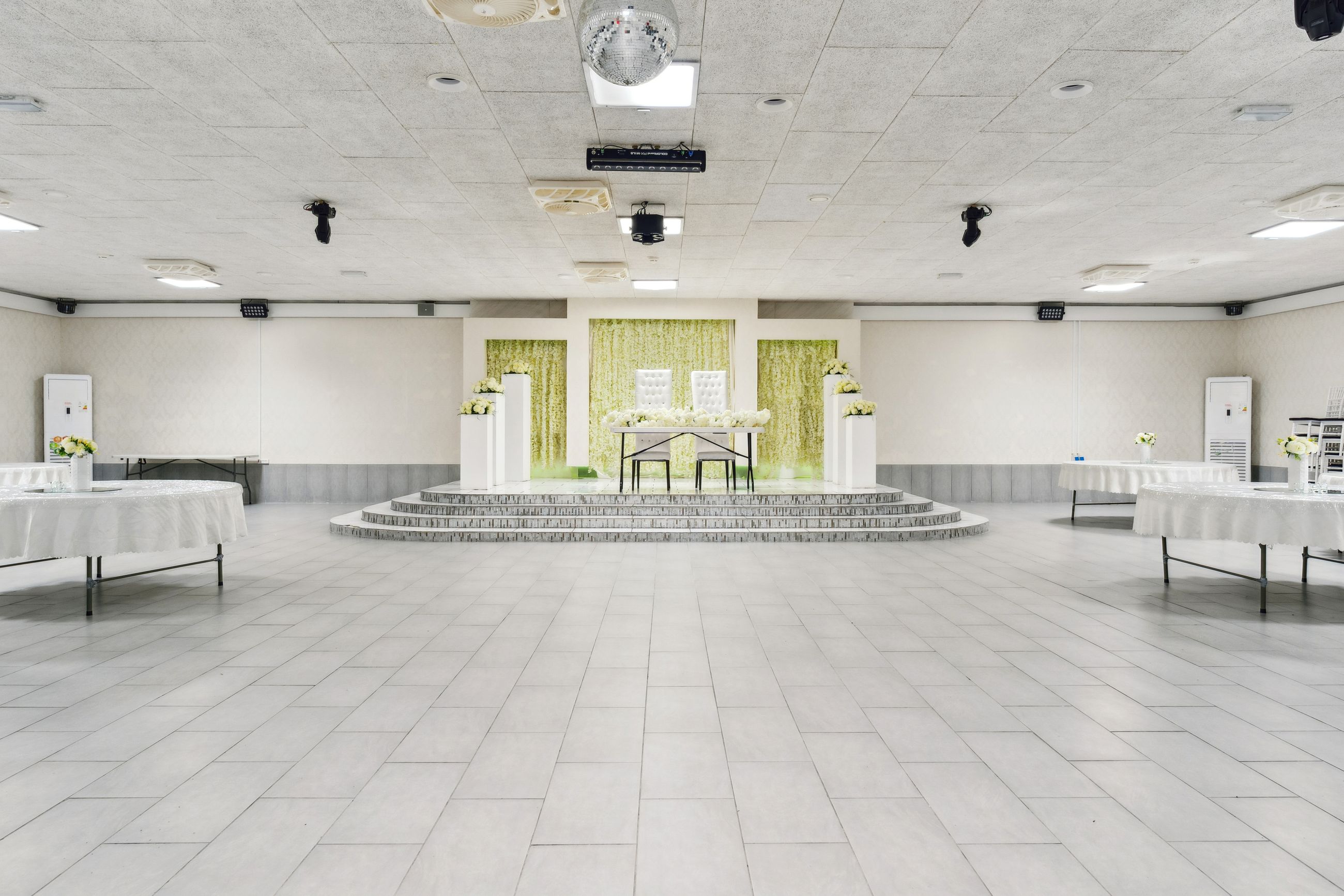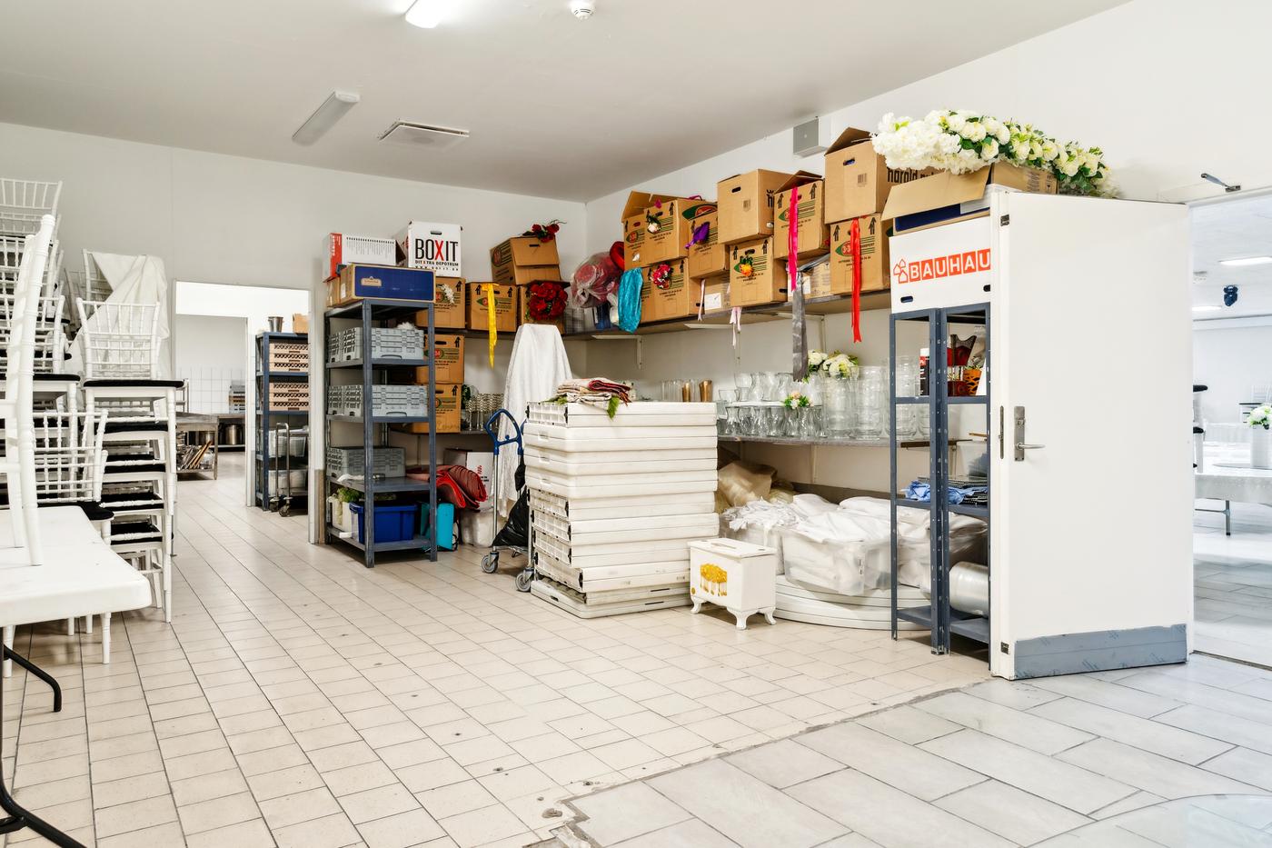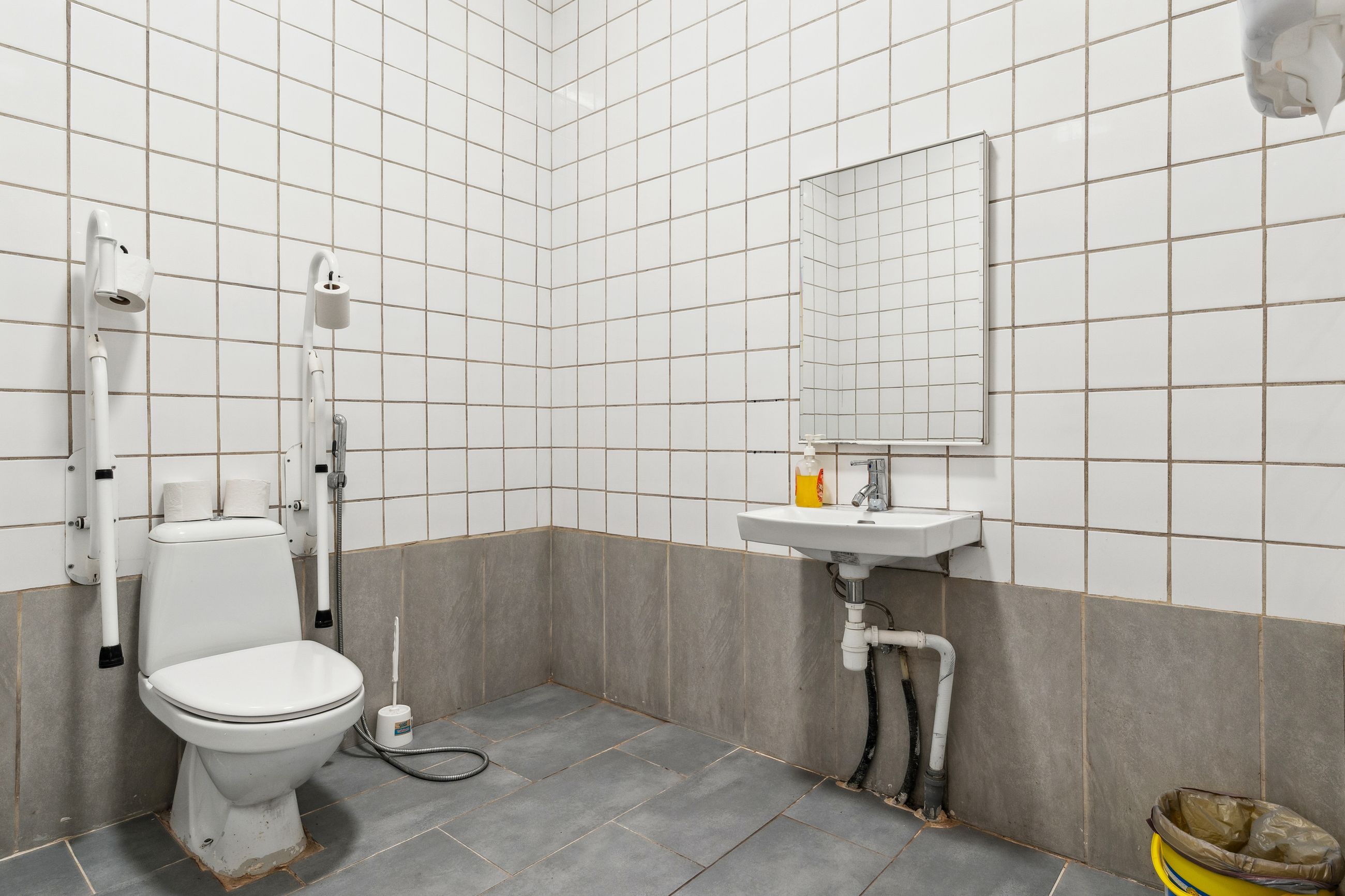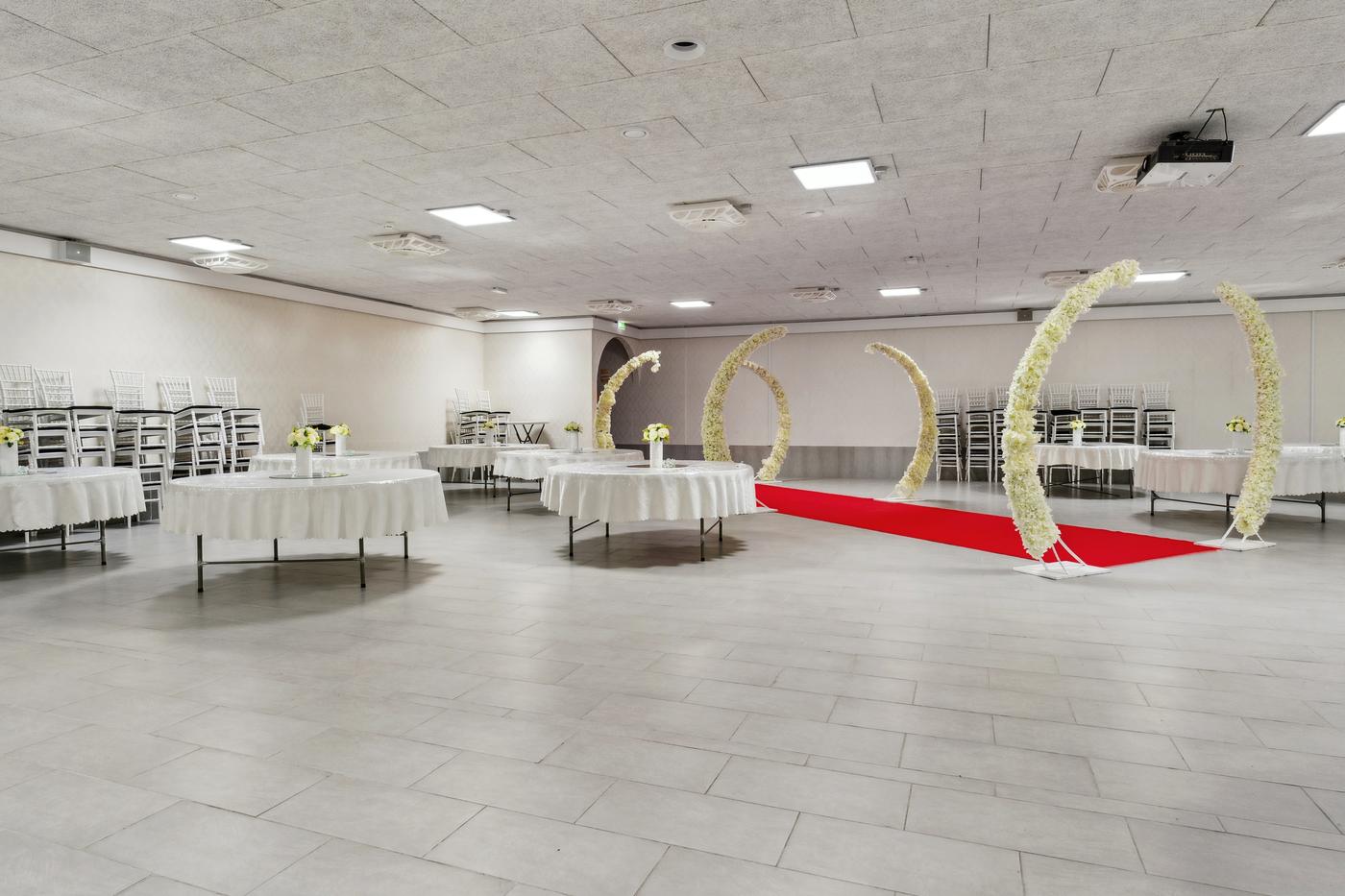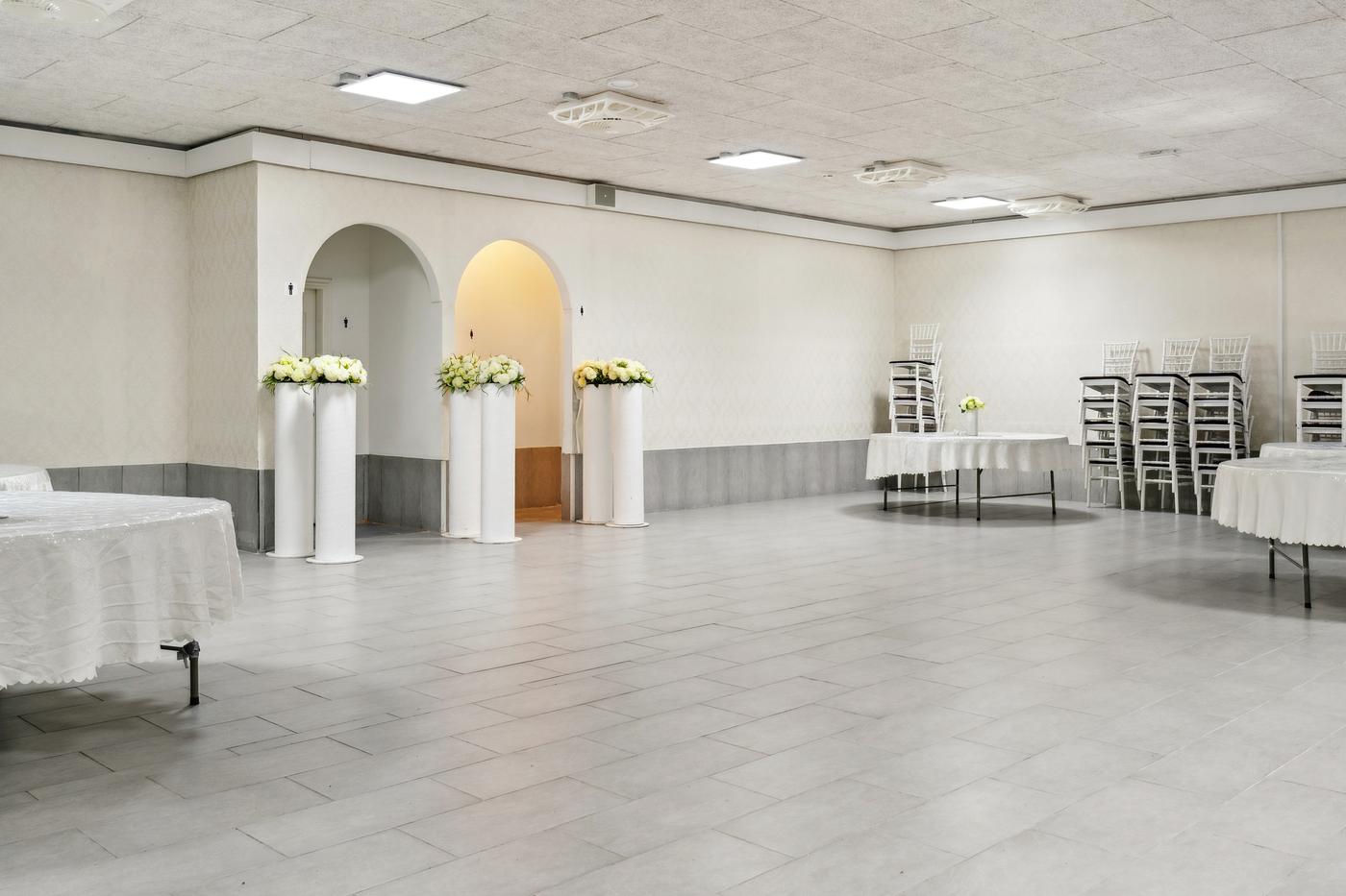 Ejendommen er indrettet med et stort festlokale, produktionskøkken, flere disponible rum samt gode toiletfaciliteter.