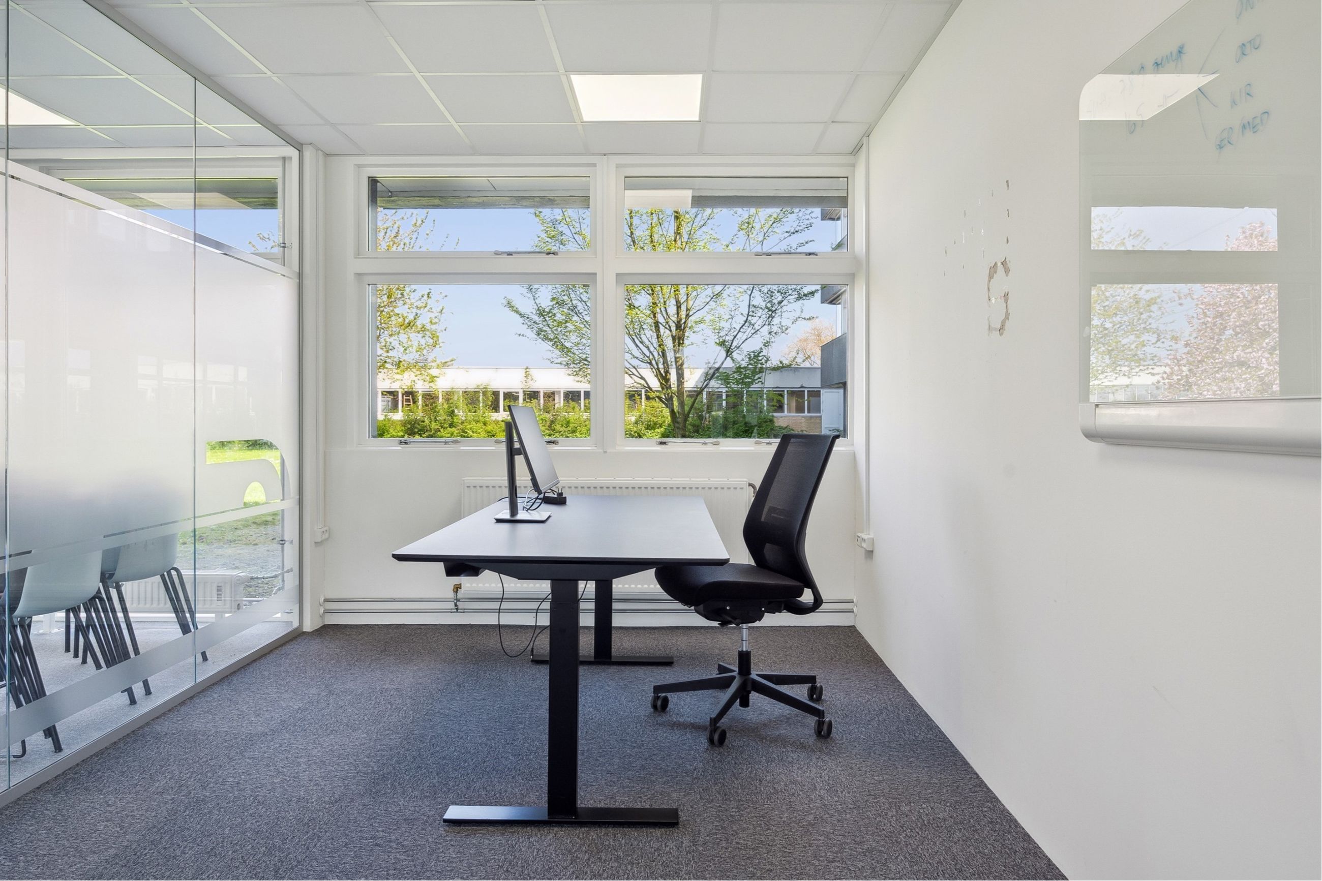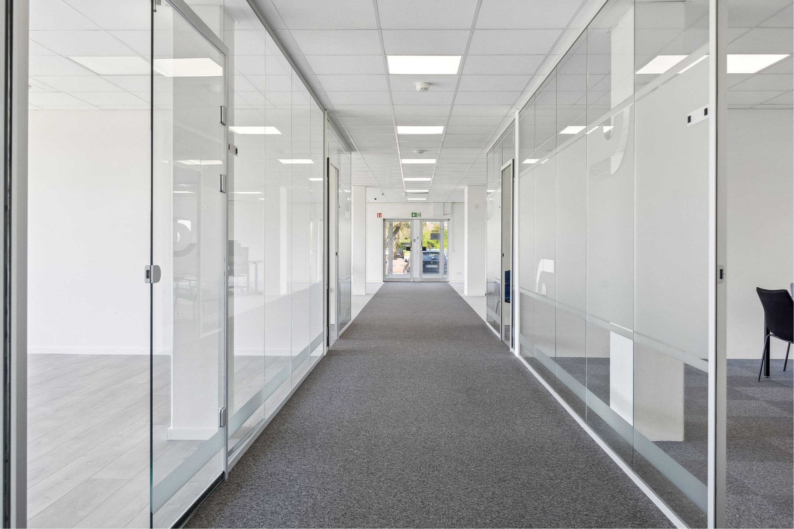 Der er en fin fordeling mellem storrumskontorer, mødelokaler og enkeltmandskontorer, og er i det hele taget bygget på en måde, så det vil kunne tilpasses en ny lejers behov.