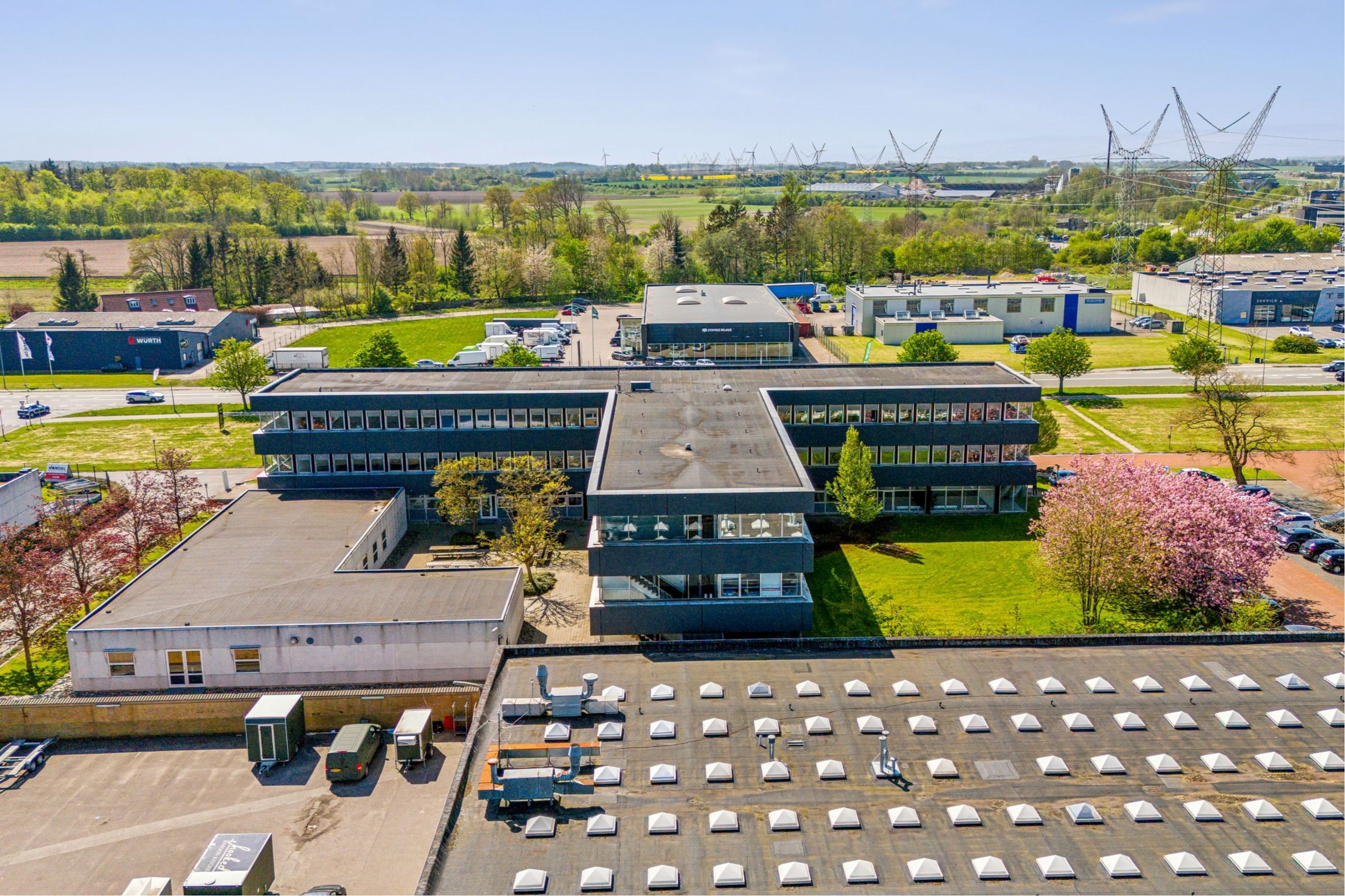 Velbeliggende kontorlejemål i større erhvervsejendom og med kun få hundrede meter til Drejebænken ved afkørsel 50 på den Fynske Motorvej.
