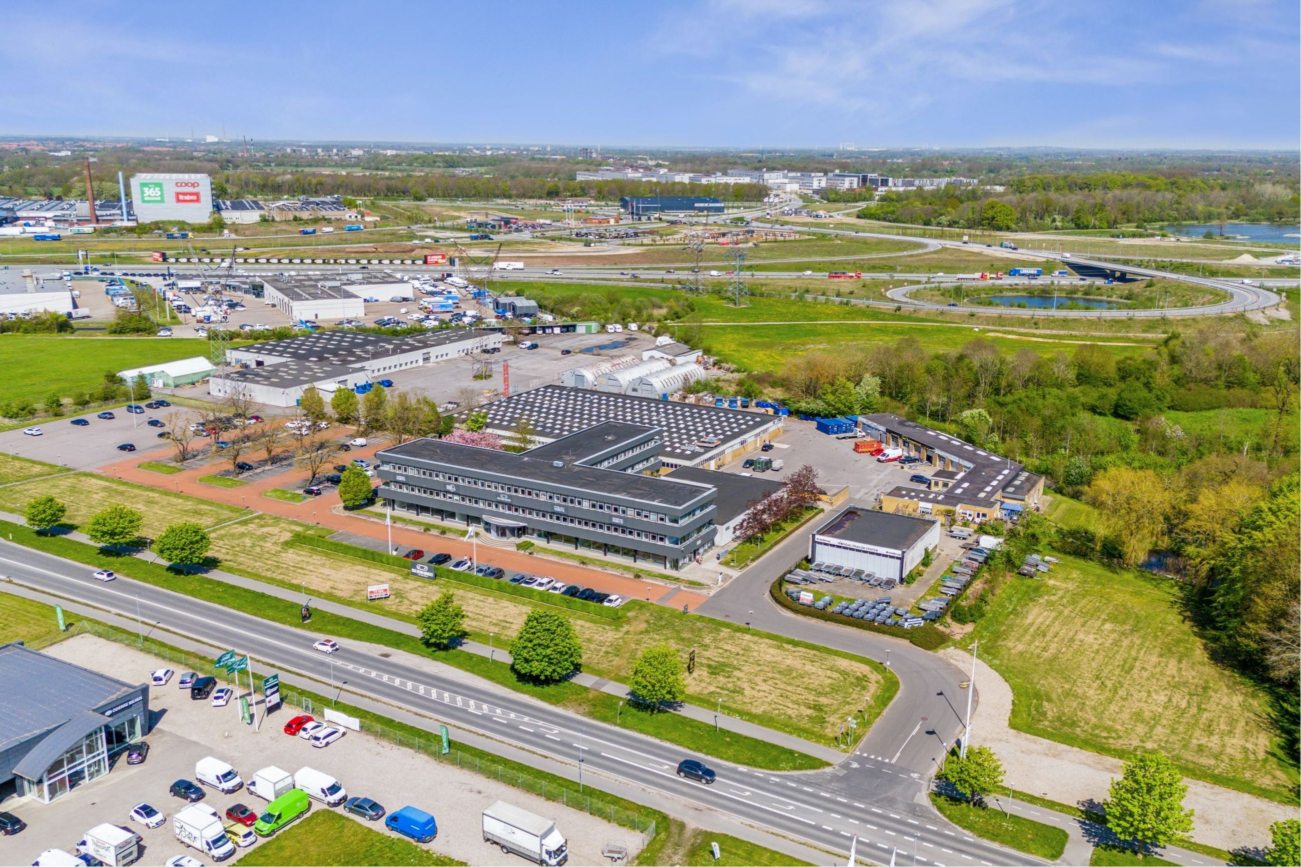Bygningen er beliggende på en ca. 55.000 m² stor grund, hvor der er mange gratis p-pladser til brug for lejer som såvel kunder af huset.