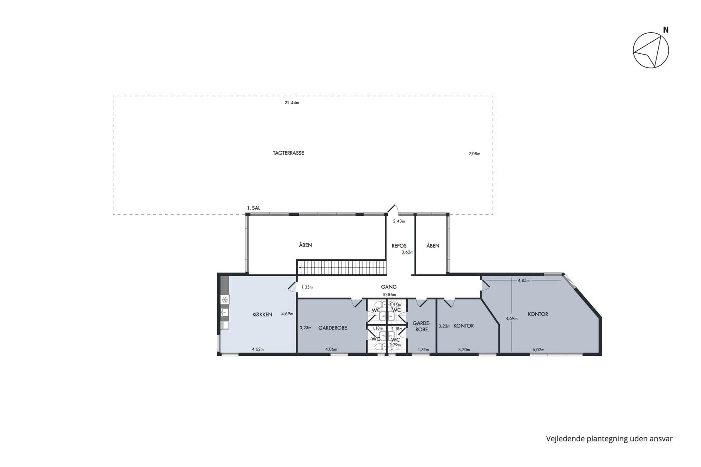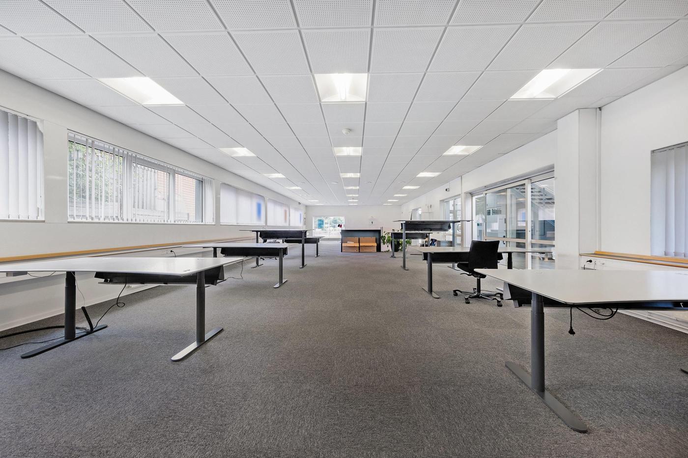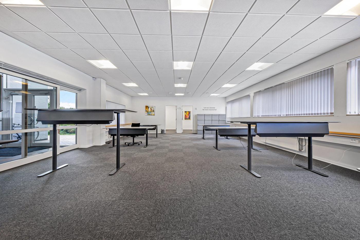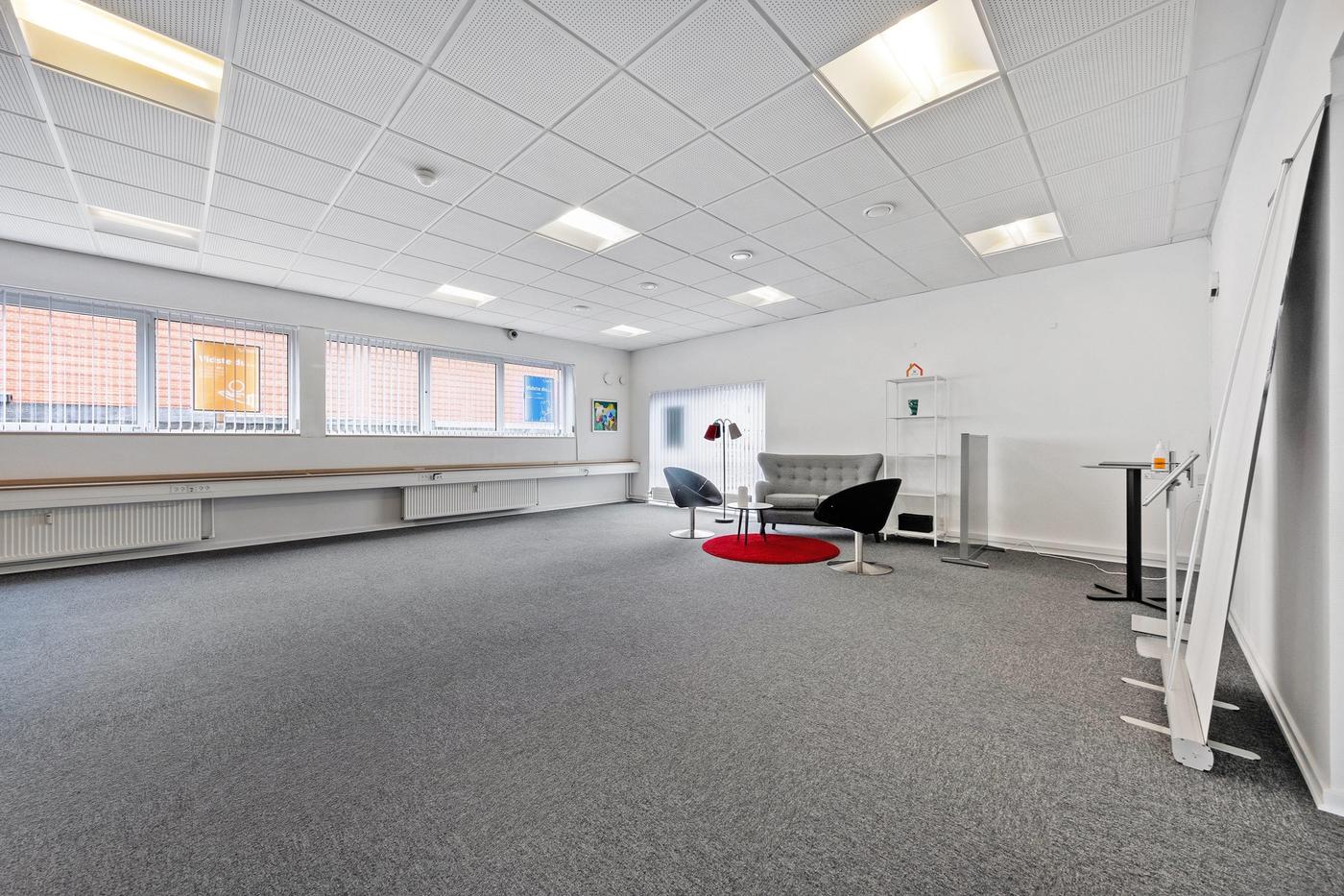 1. salen er indrettet med stort mødelokale, kontor, stort køkken/frokoststue, bad/omklædning til damer/herrer. Kan udlejes til 3 brugere med egne el-målere og fjernaflæste varmemålere.