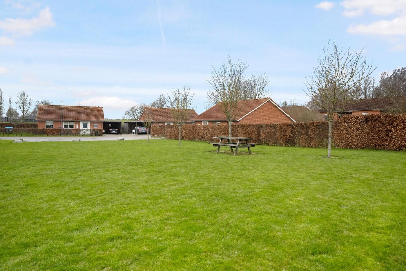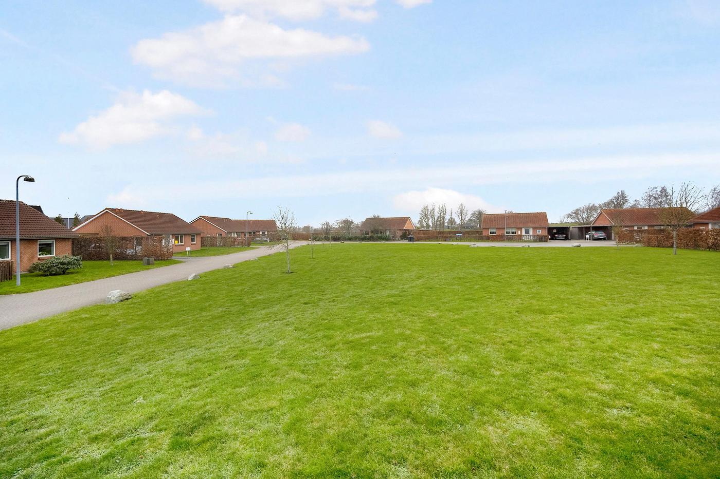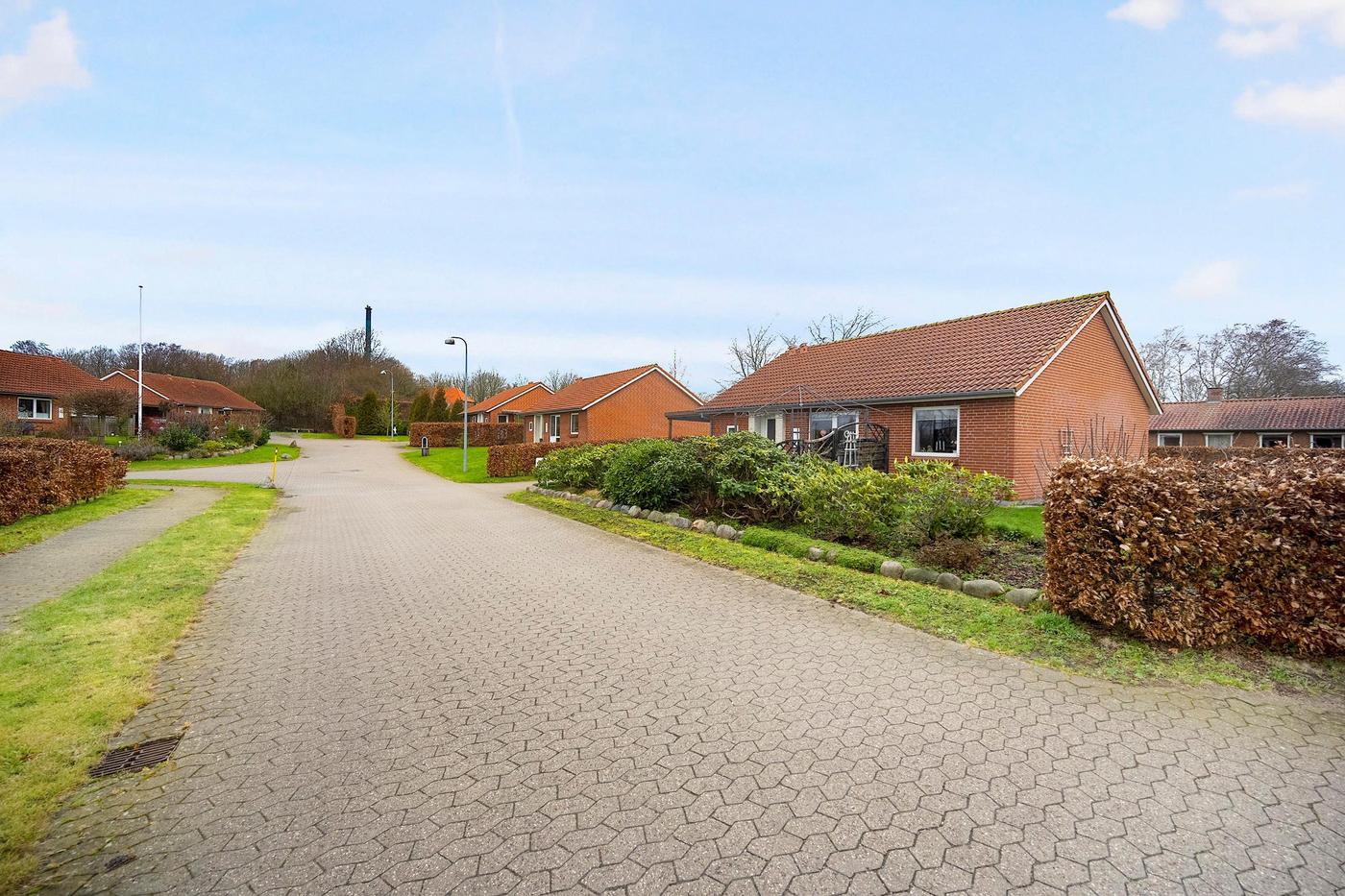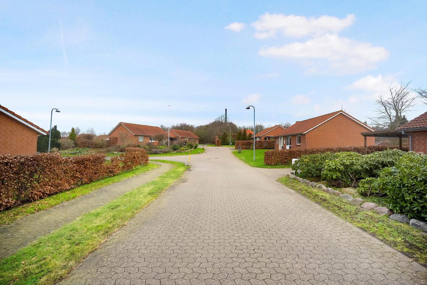 Alle boliger har egen indkørsel med plads til to mindre biler, derudover har alle boliger også egen fliseterrasse.