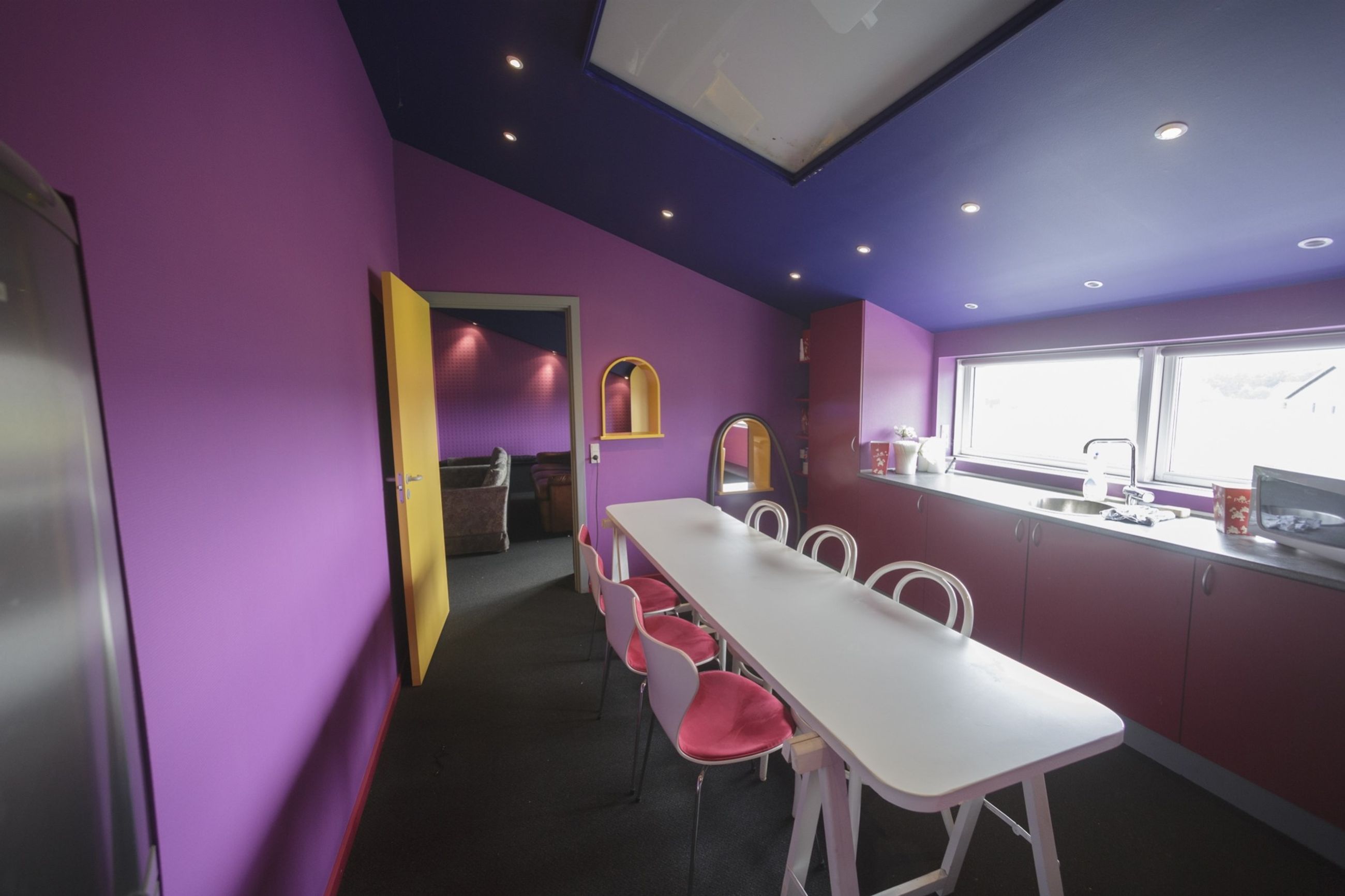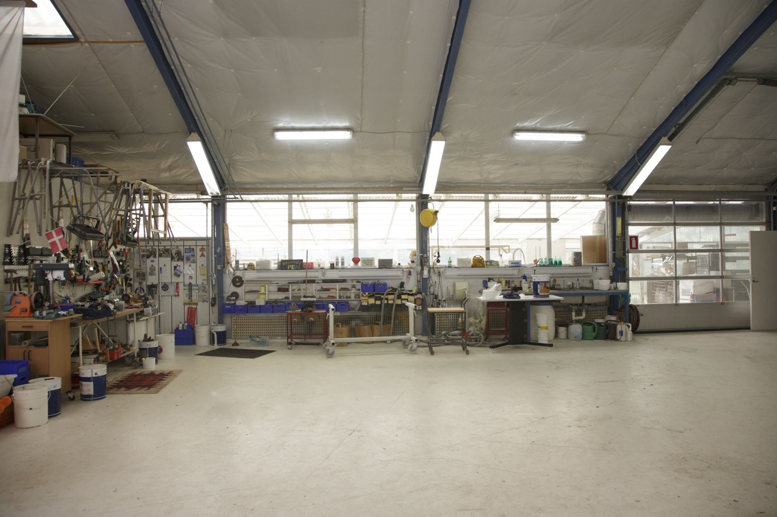 Herudover er der i den høje hal et indskudt dæk med et ekstra køkken samt auditorium. Dette er ikke godkendt. Sidst, men ikke mindst, er der i 1996 lavet en overdækning og sideinddækning langs hele bygningen på 170 m², som er perfekt til koldlager (godkendt)