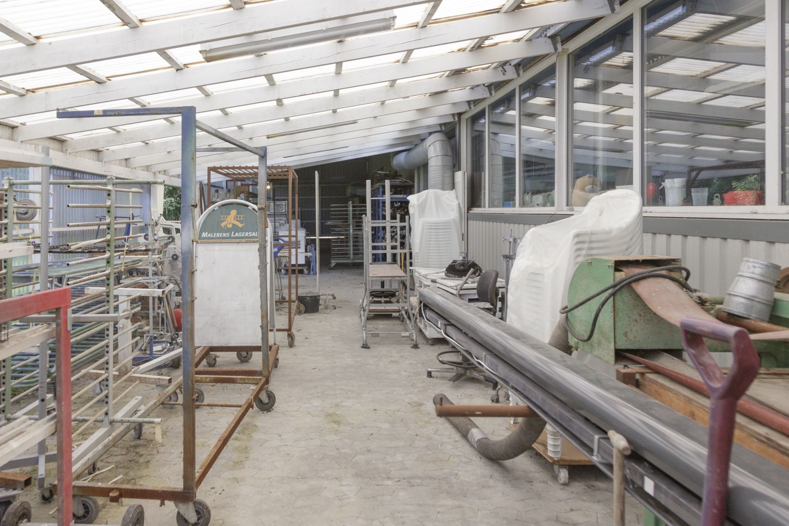 I udbygget mindre erhvervsområde i Otterup, sælges nu meget velholdt håndværksejendom. Ejendommen er opført i 1989 og tilbygget i 1996. Ejendommen er opført i 2 haller i søjlefri stålspærskonstruktion med grå stålpladebeklædning og eternittag. Indeholder nydelig frokoststue/køkken med udgang til terrasse, pænt kontor, mandskabsrum samt 2 haller. I den ene hal er der i siden opført en let konstruktion med et smalt rum til lager. I en del af den anden hal er der malerkabine med sidesugskabine som forbliver i bygningen. Der er portadgang i begge ender af bygningen og en i siden. Samlet ca. 666 m² for denne del.