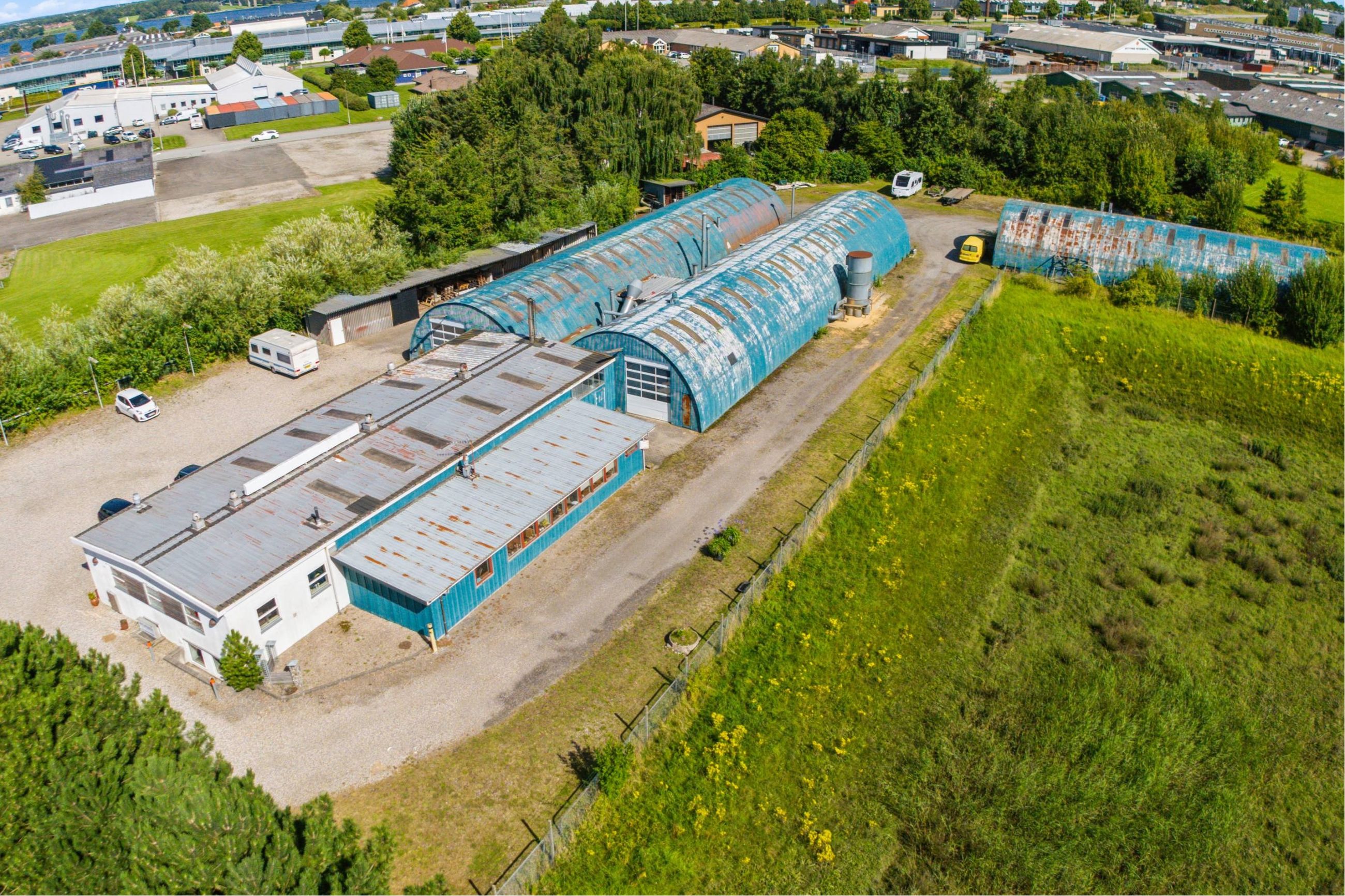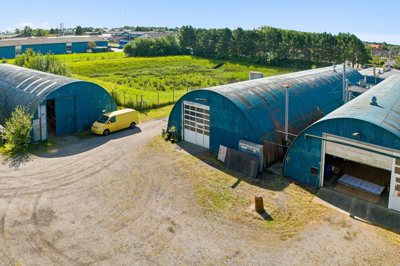 Ejendommen indeholder 3 selvstændige "romni-haller", hvoraf de 2 er sammenbygget, mens den 3. er beliggende bagerst på grunden. Ejendommen er oprindeligt opført til smede-svejsevirksomhed men bliver pt. anvendt til møbelproduktion. Foran og ud mod Fynsvej er indrettet kontor. Øvrig administration er "langs siden".