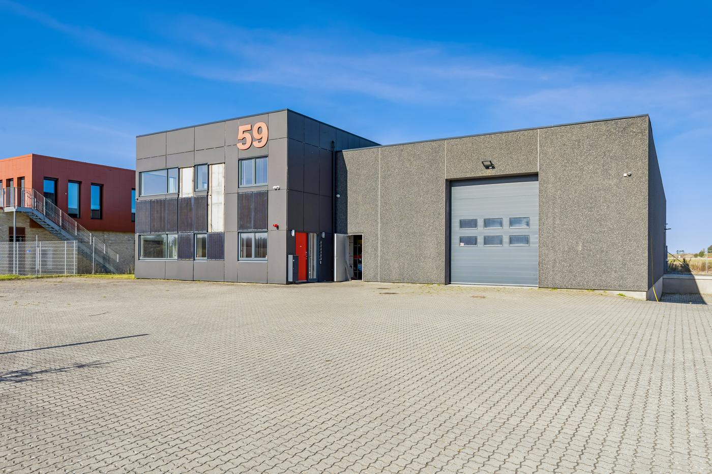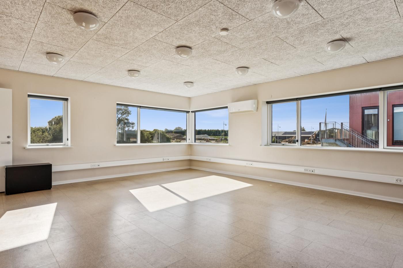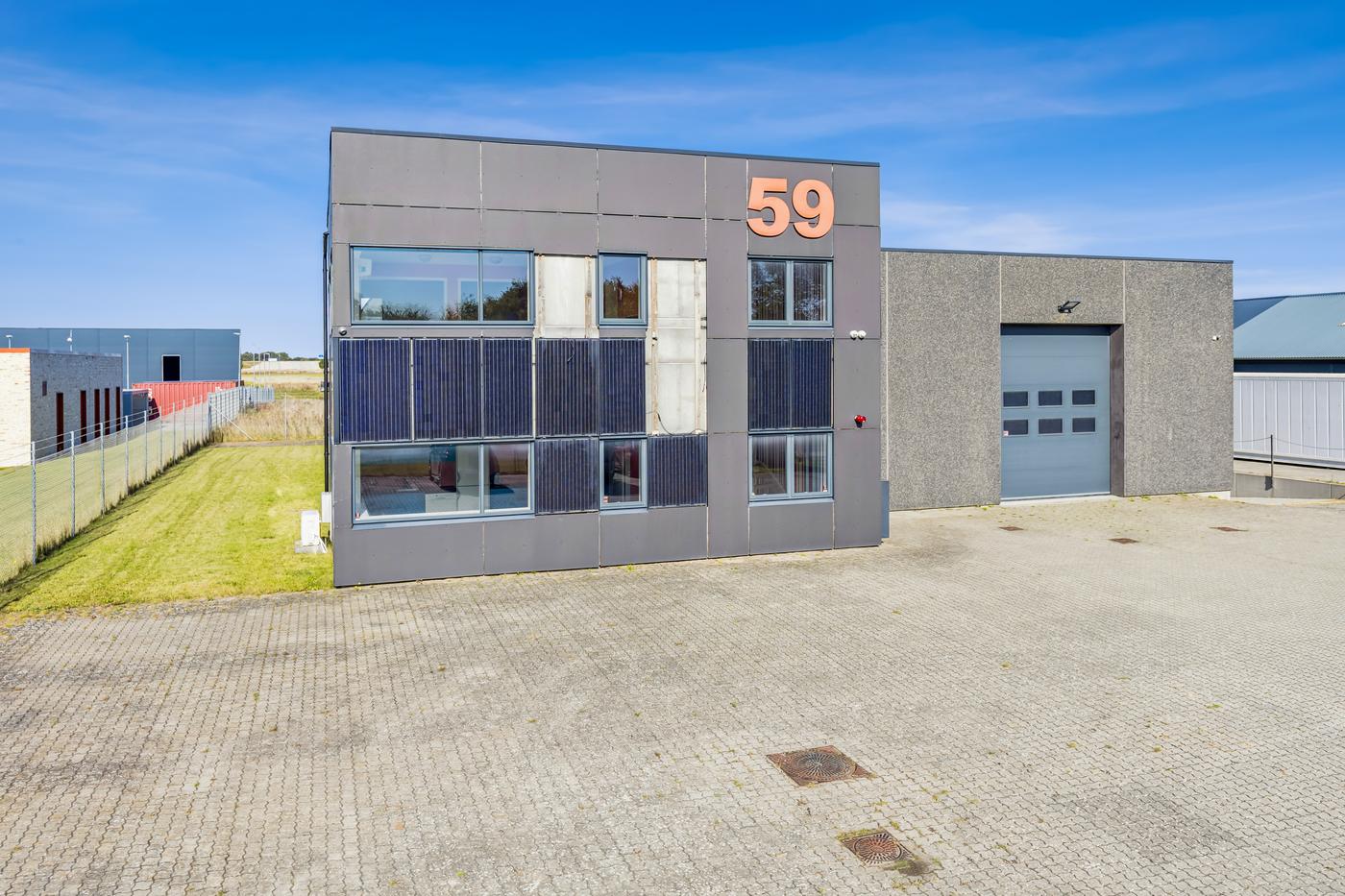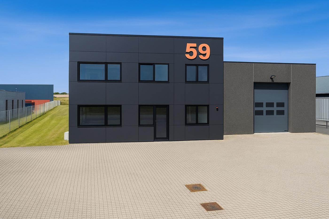 Ejendommen på Fynsvej 59 udgør i alt 749 m² og fremstår som en regulær og funktionel erhvervsejendom med mange anvendelsesmuligheder. Den indeholder ca. 200 m² kontor- og velfærdsfaciliteter, mens resten udgøres af højloftet lager opdelt i tre separate rum. Lagerdelen har en loftshøjde på ca. 8 meter til drager og er isoleret, hvilket gør den velegnet til både opbevaring og lettere produktion. Adgangen til lageret sker via to porte - én i niveau og én via sluse.