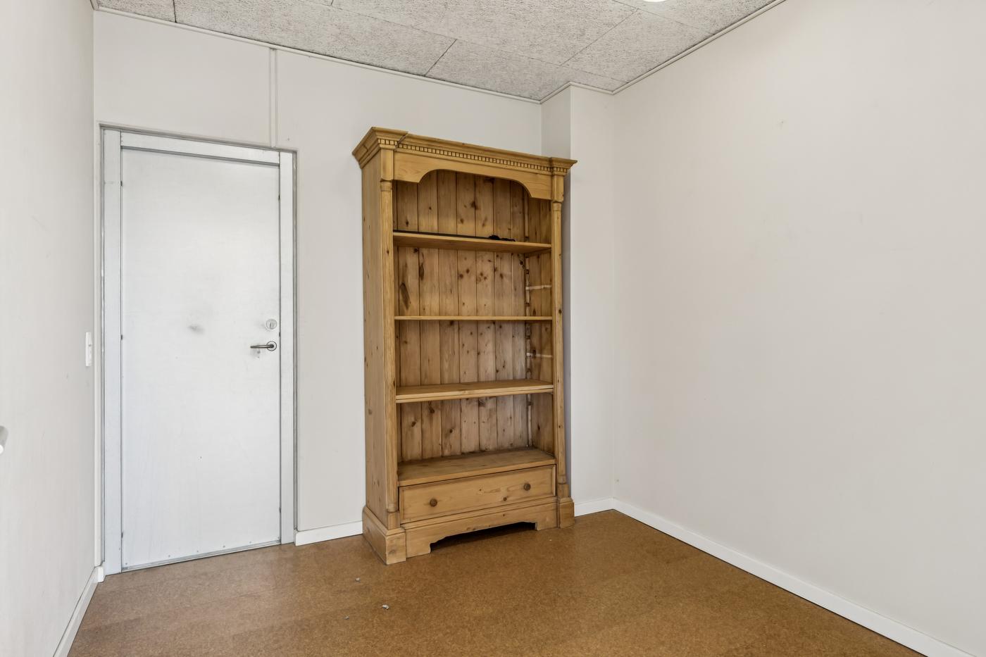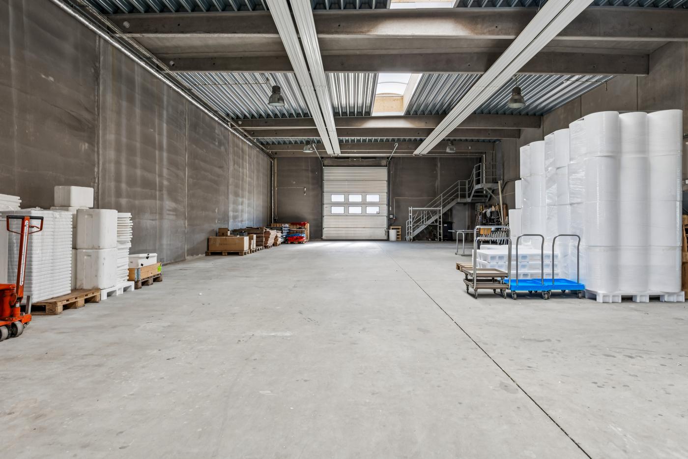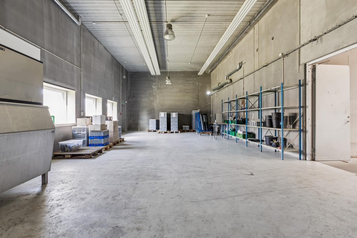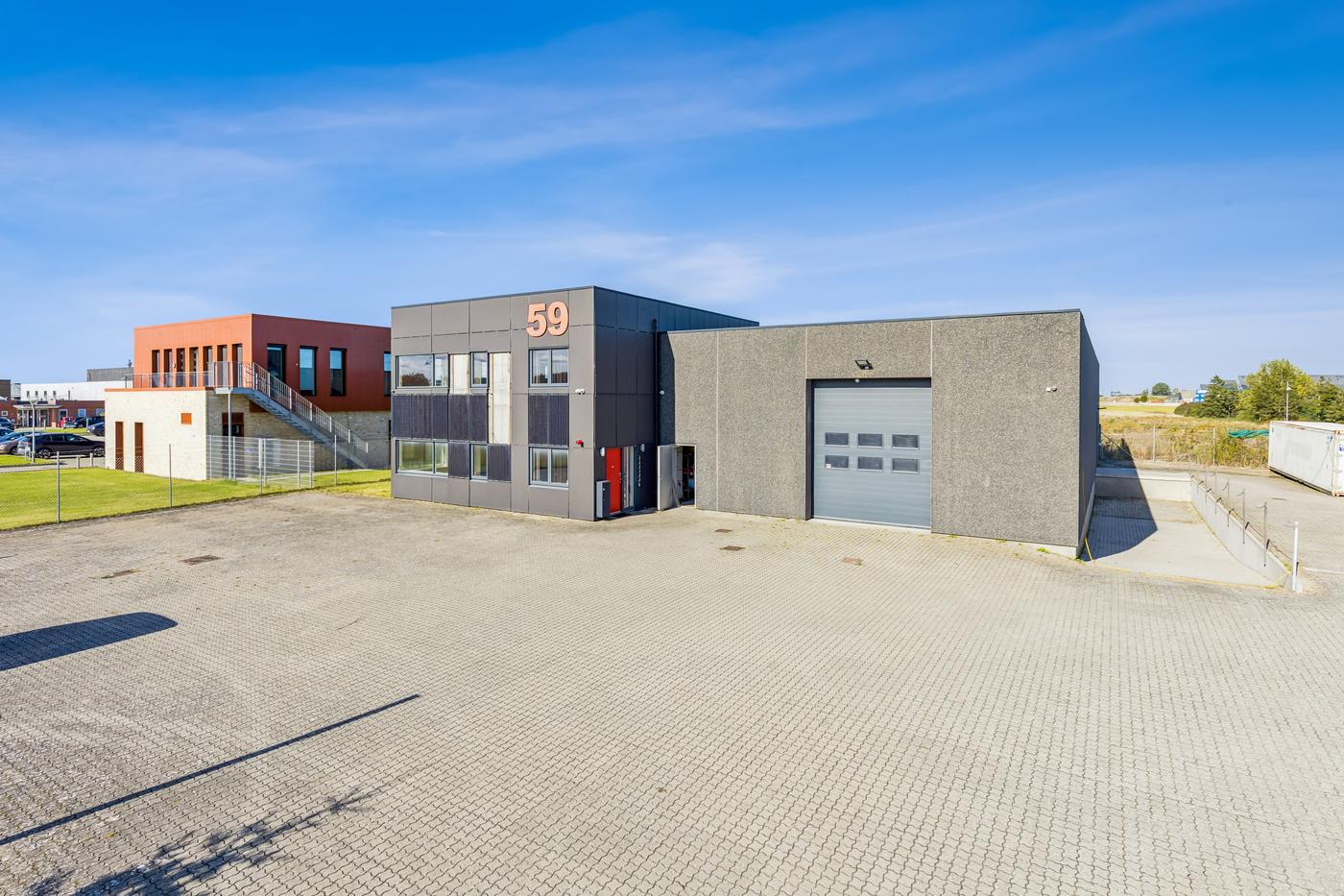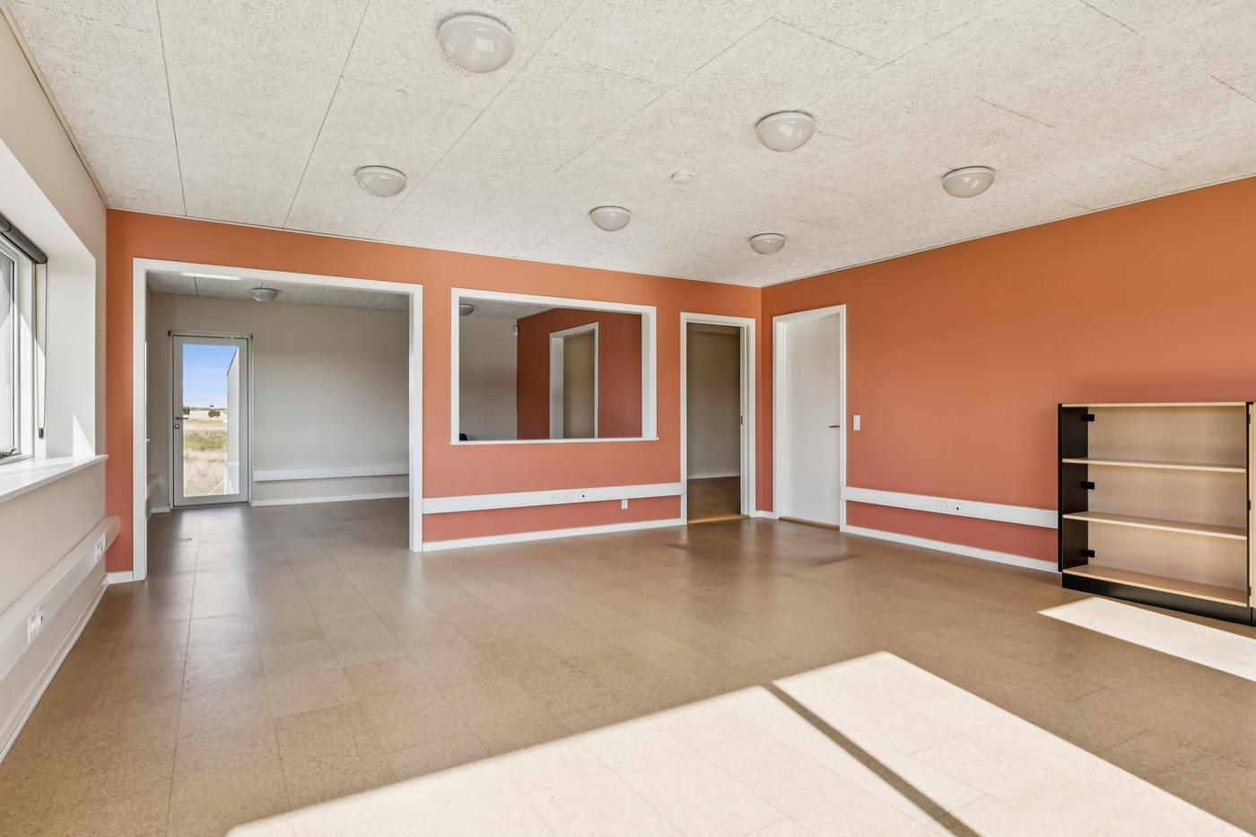 Ejendommen på Fynsvej 59 udgør i alt 749 m² og fremstår som en regulær og funktionel erhvervsejendom med mange anvendelsesmuligheder. Den indeholder ca. 200 m² kontor- og velfærdsfaciliteter, mens resten udgøres af højloftet lager opdelt i tre separate rum. Lagerdelen har en loftshøjde på ca. 8 meter til drager og er isoleret, hvilket gør den velegnet til både opbevaring og lettere produktion. Adgangen til lageret sker via to porte - én i niveau og én via sluse.
