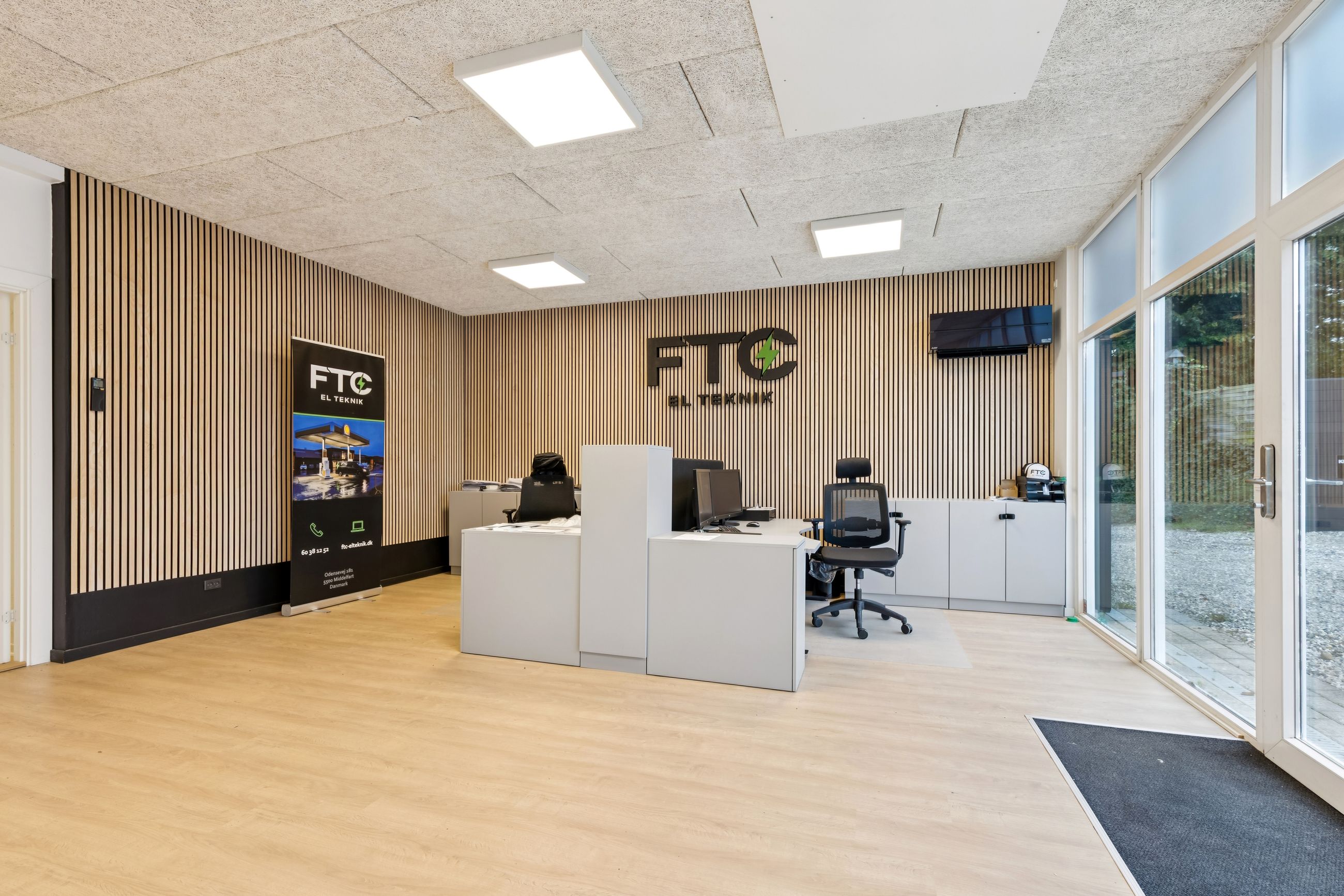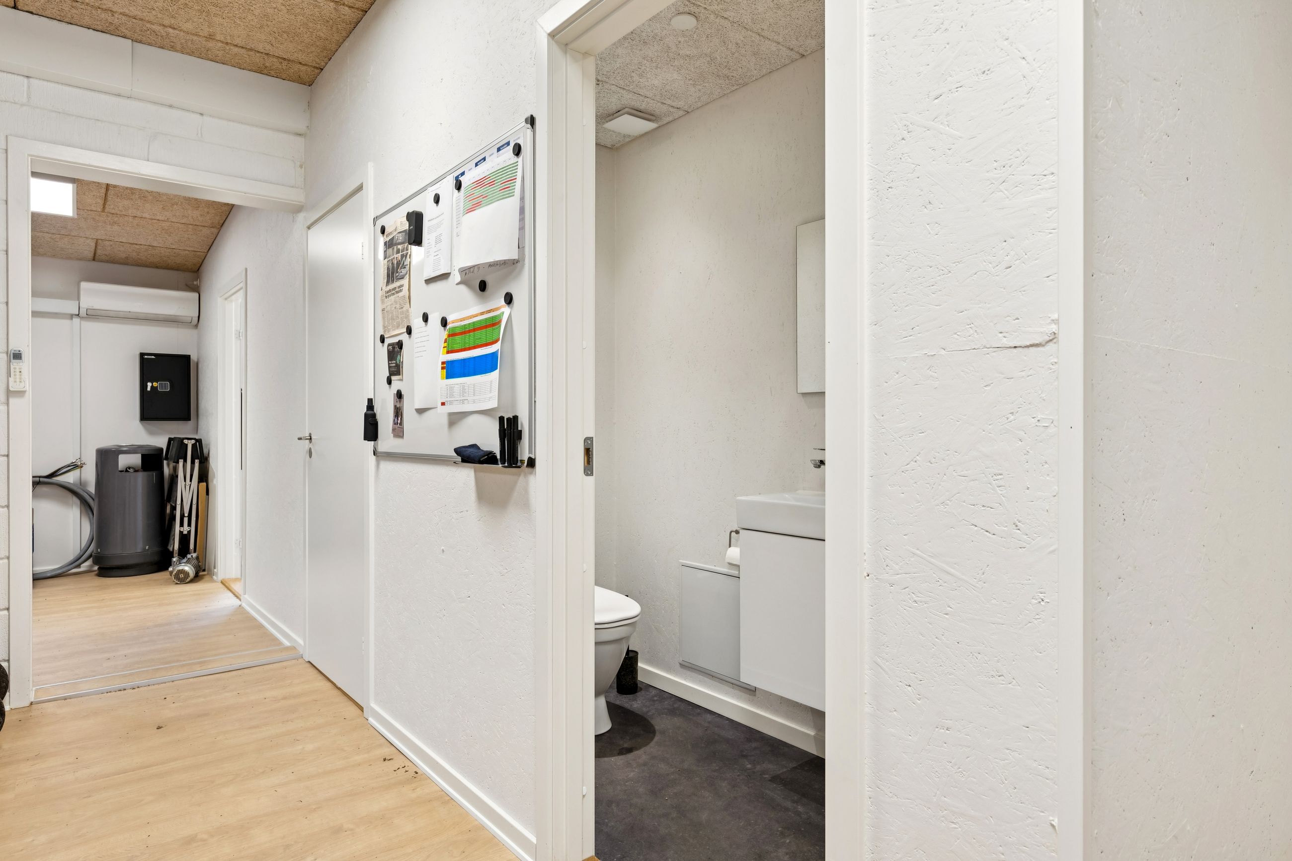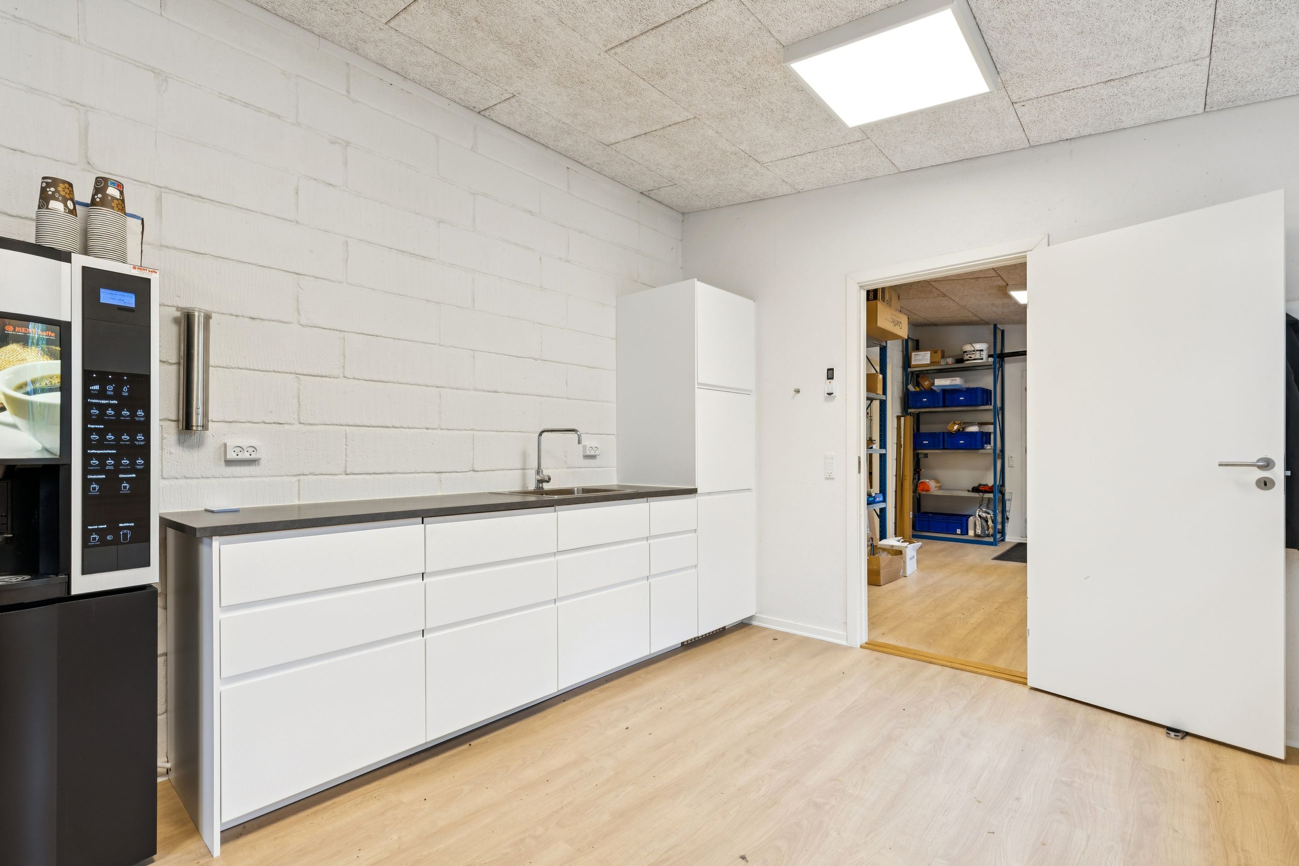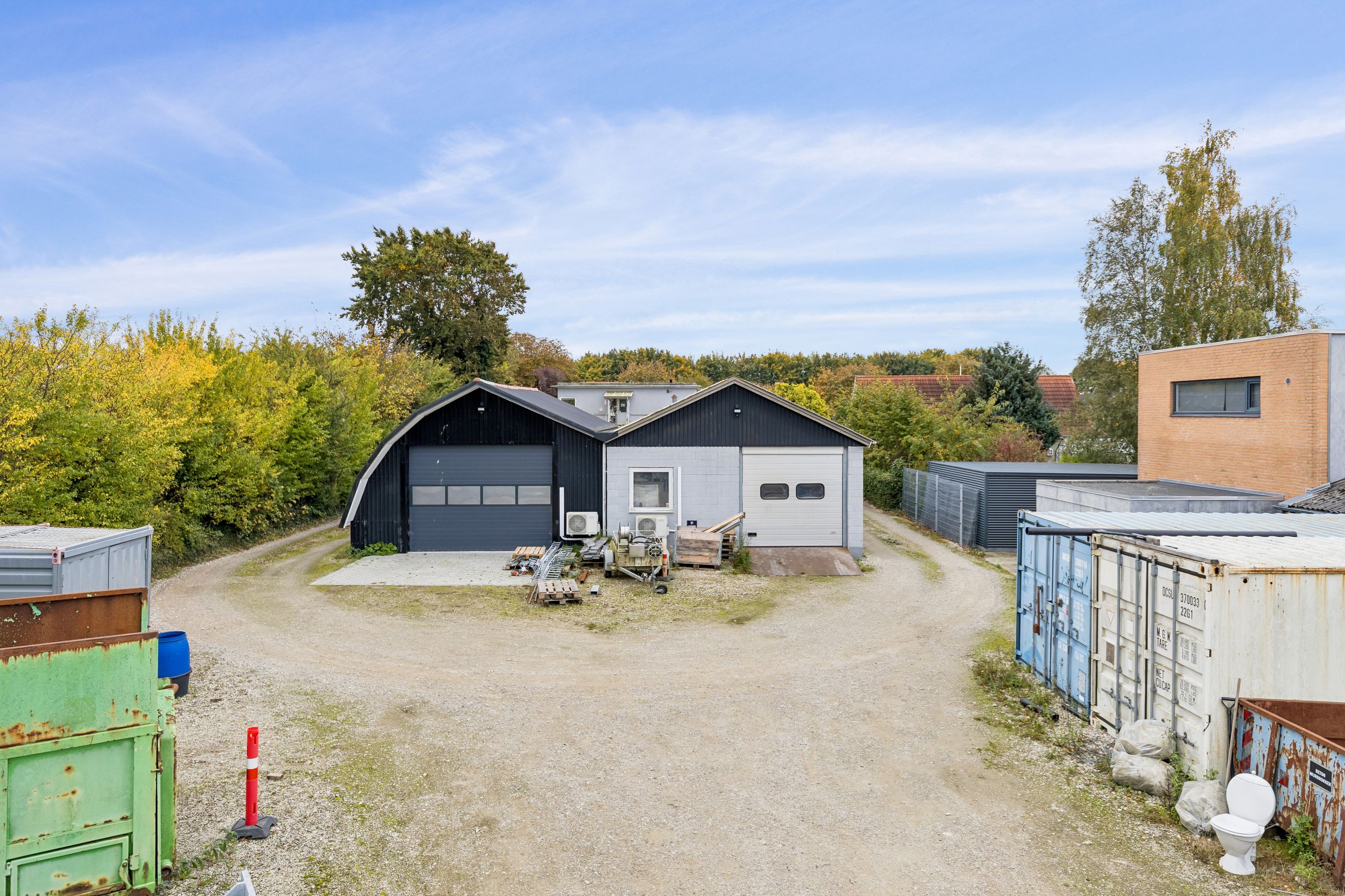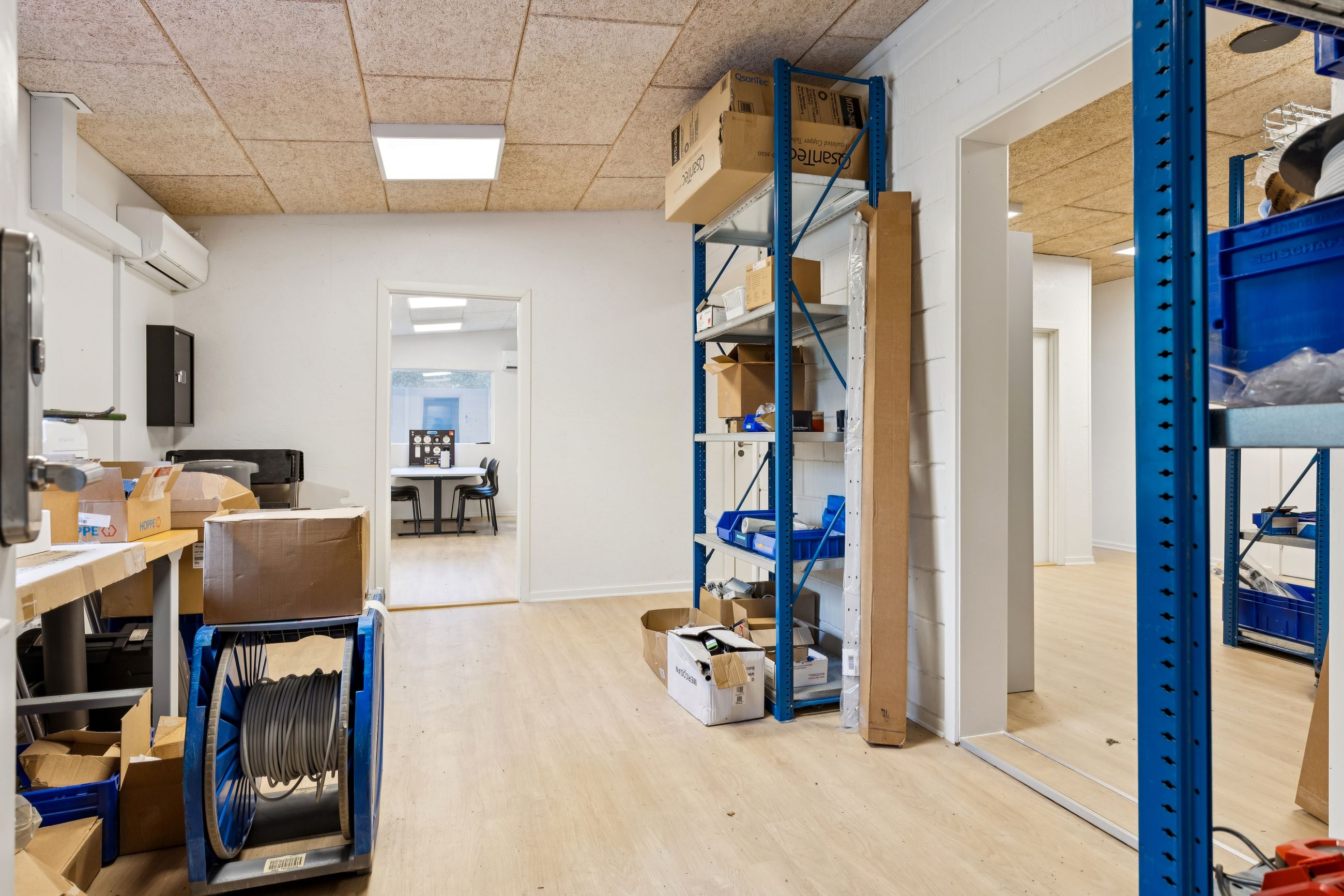 Ejendommen består af 376 m² erhverv og 184 m² bolig. Erhvervsdelen overtages tom og omfatter lagerfaciliteter med adgang via porte i niveau samt kontorarealer, der er renoveret i 2024. Boligen er udlejet og har fået delvist nye vinduer samt hulmursisolering i 2024. Lejen udgør i alt 126.000 kr. pr. år. Ejendommen har en samlet el kapacitet på 63 ampere.