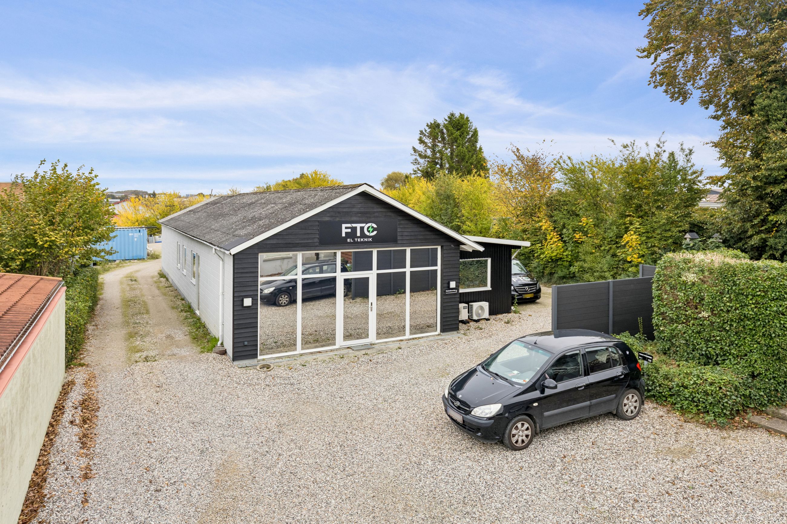 Udenomsarealerne er udlagt til parkering og oplagring bagerst på grunden, hvilket giver gode driftsmæssige muligheder. Ejendommen ligger i den sydlige del af Middelfart, med kort afstand til Middelfart Station, Motorvej E20 og indkøbsmuligheder ved Østergade. Området er præget af blandet bolig og erhverv.