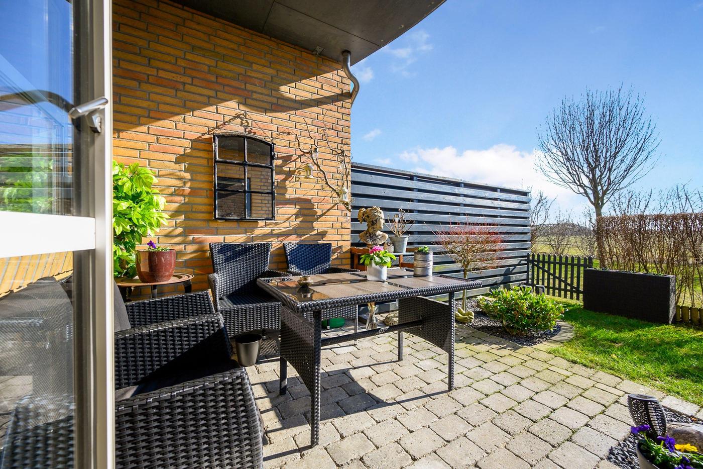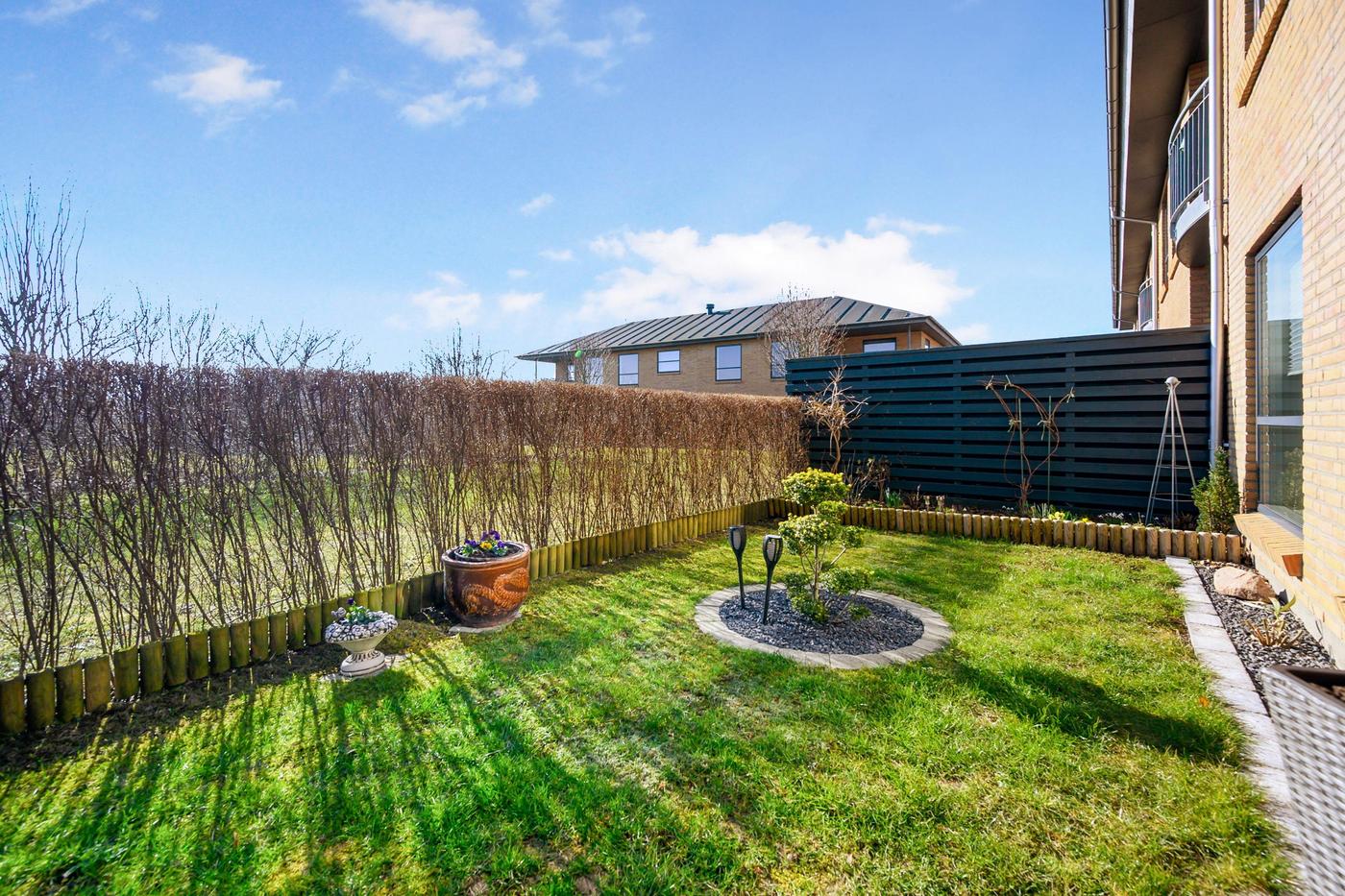 Alle boligerne er indrettet med hvide køkkener med mørk trækant og gråmeleret laminatbordplade, hvilket går igen badeværelse. Der er faste skabe i alle soverum. Badeværelser med beige klinker på gulve og i bruseniche samt rummelig entré med skabe. Herudover fremstår enhederne med trægulve og hvidmalede vægge samt træværk, der er lyst og imødekommende med store vinduespartier. I boligerne på 1. sal er der ca. 6 m² store altaner indbygget i facaden, mens der er fliseterrasse og lille have til alle boligerne i stueplan.