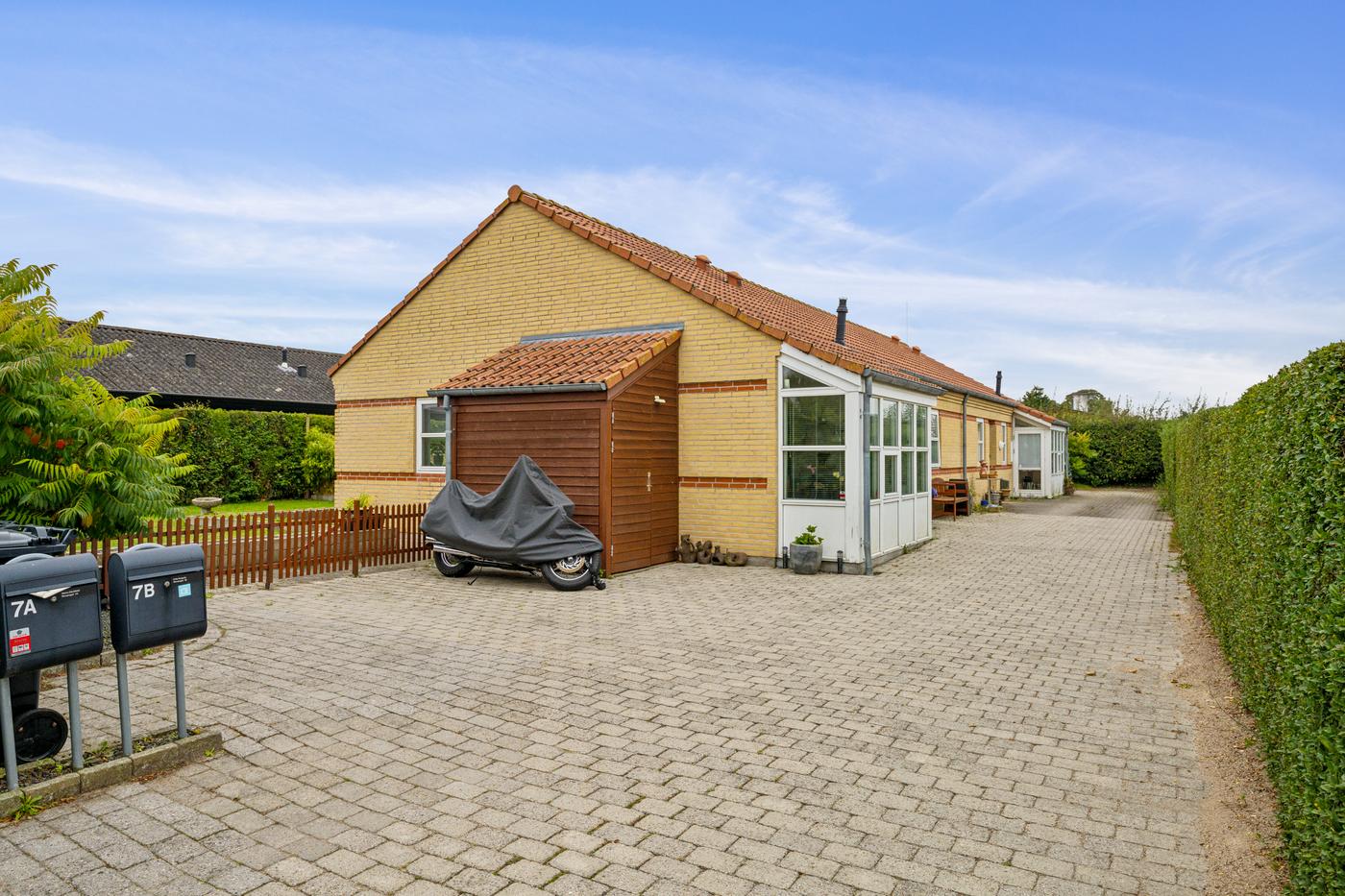 Dobbelthus beliggende i Birkende tæt ved Langeskov i et hyggeligt parcelhuskvarter. Ejendommen er opført i 2006 i gule mursten med dekorative bånd i røde sten, og taget er beklædt med røde betonsten, som giver ejendommen et klassisk og velholdt udseende.