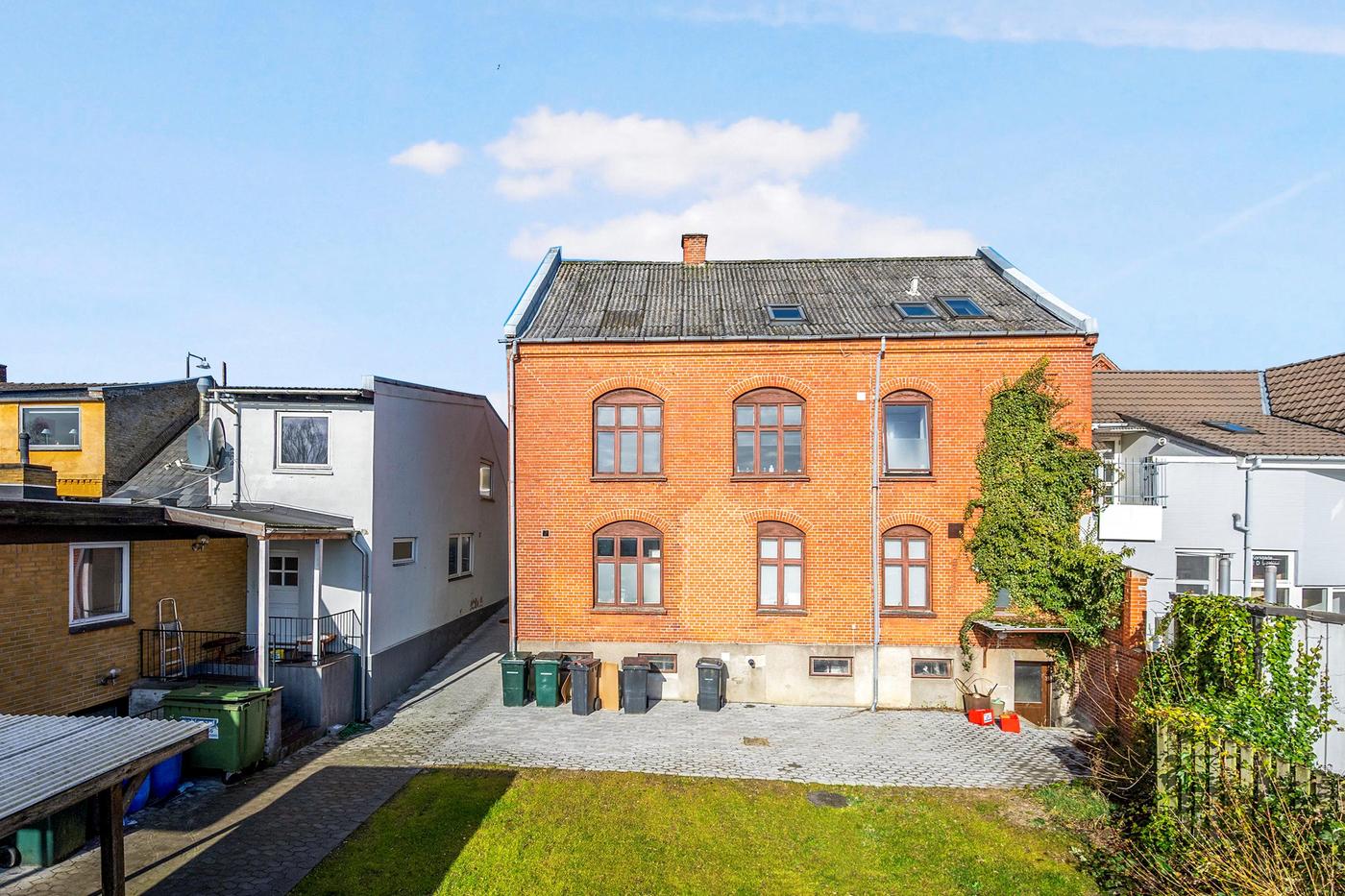 Ejendommen er indrettet med et forretningslejemål samt to separate boliger, én på 1. sal og én på 2. sal.