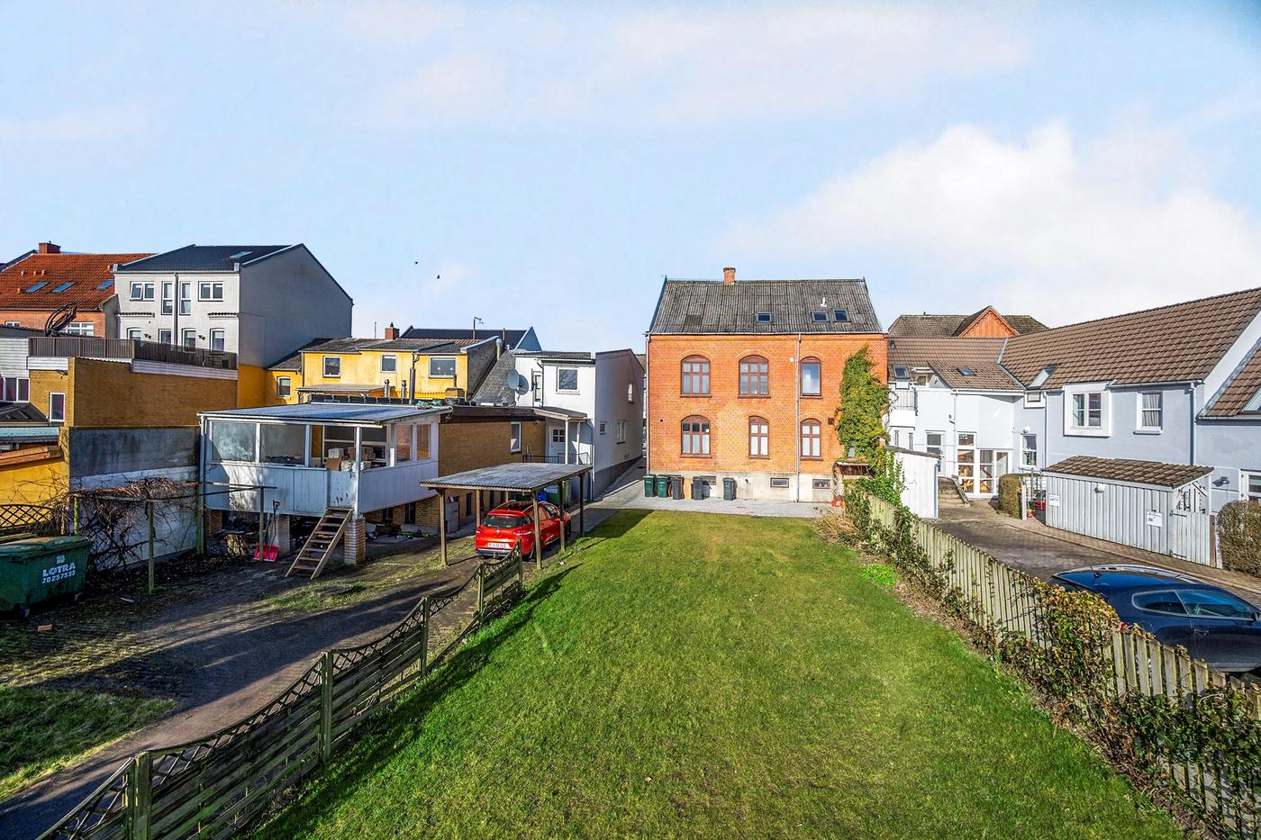 Der er fælles have bagved ejendommen og endvidere udgang fra haven til offentlig parkeringsplads.