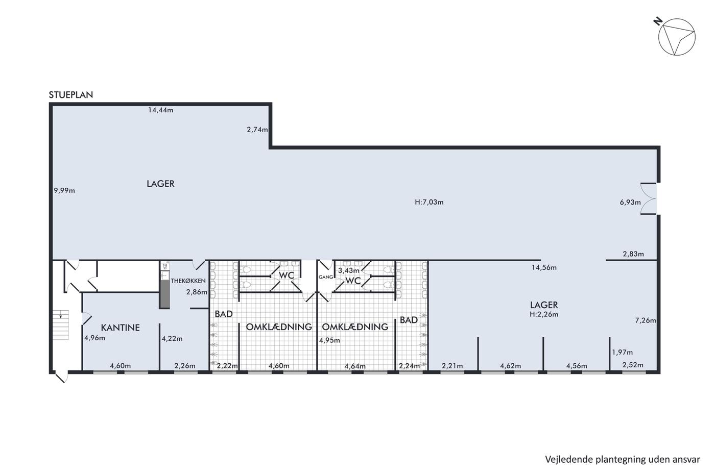 Lejemålet udgør 619 m² med loftshøjde op til ca. 6,5 meter, gode adgangsforhold, mulighed for etablering af port samt plads til både opbevaring og lettere produktion.