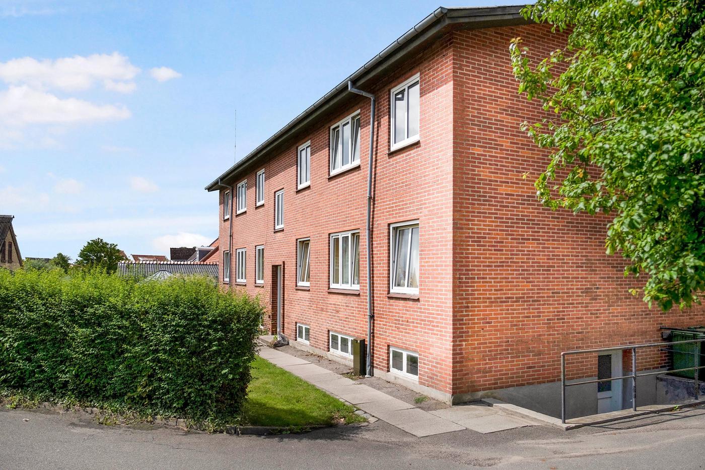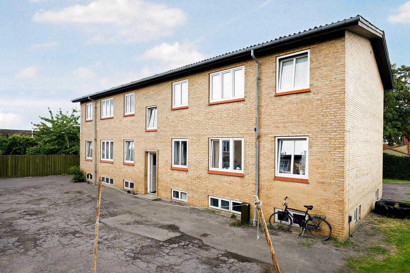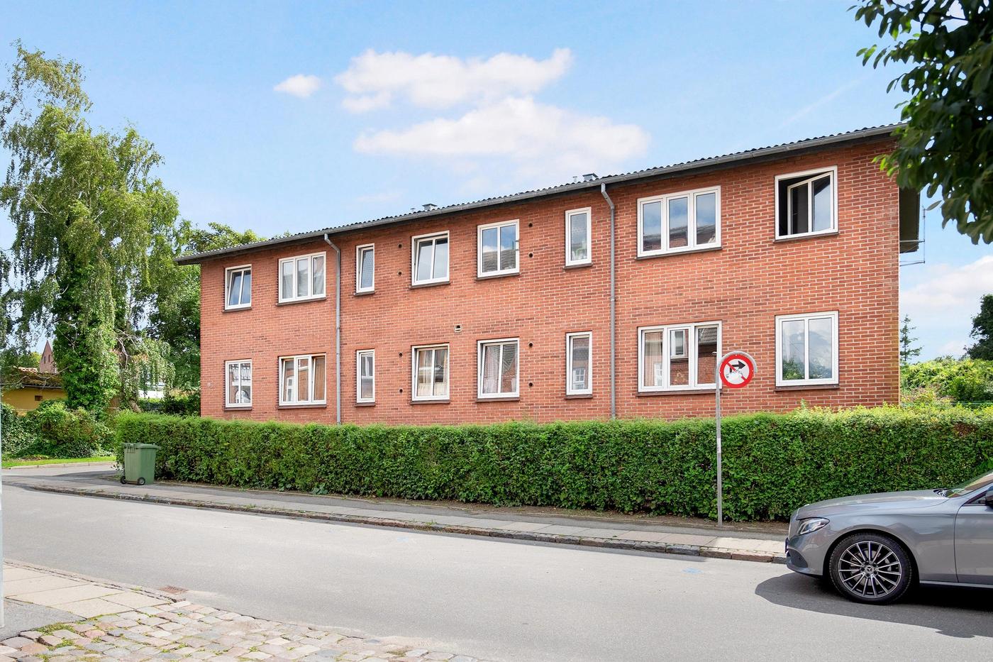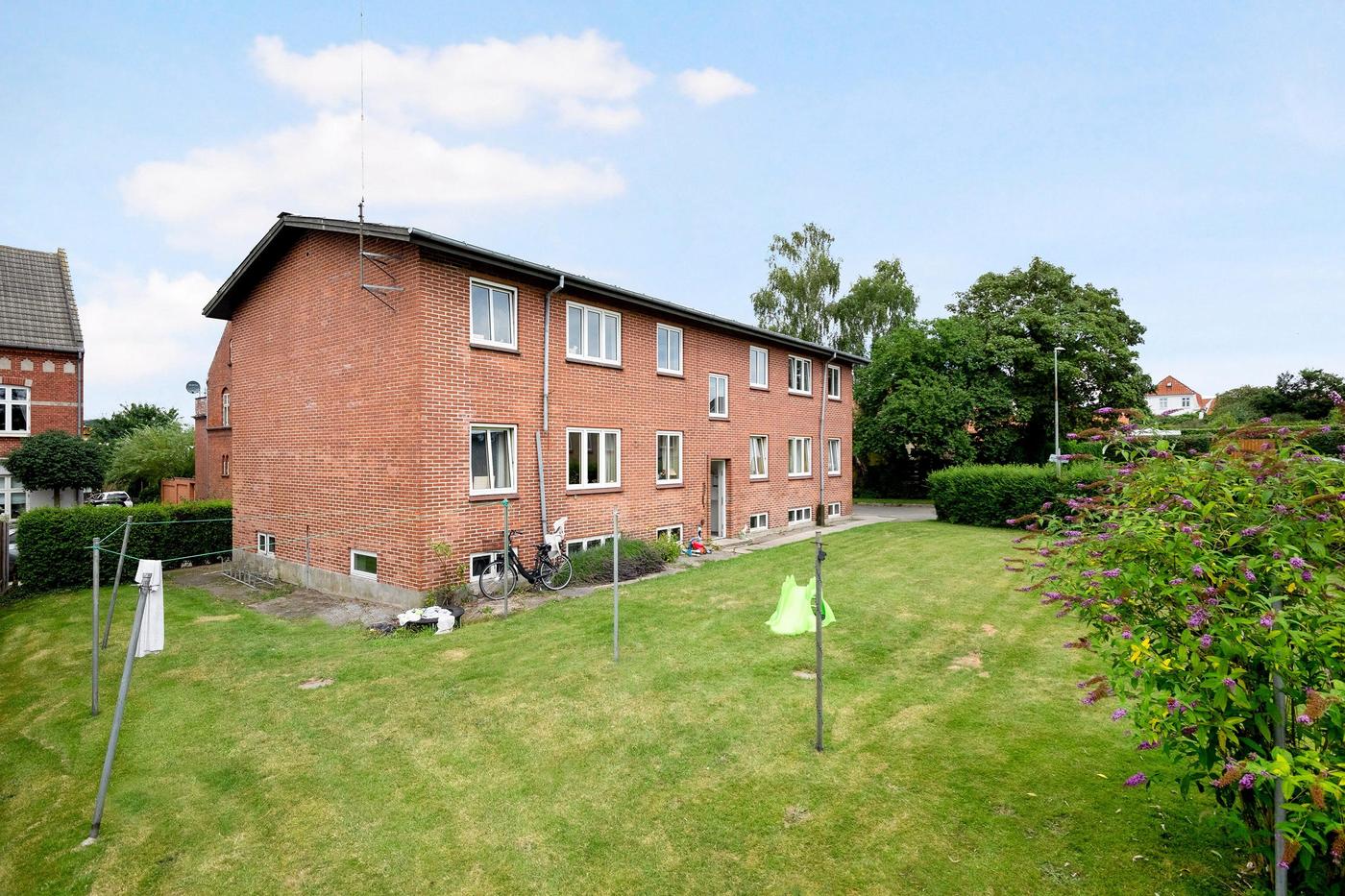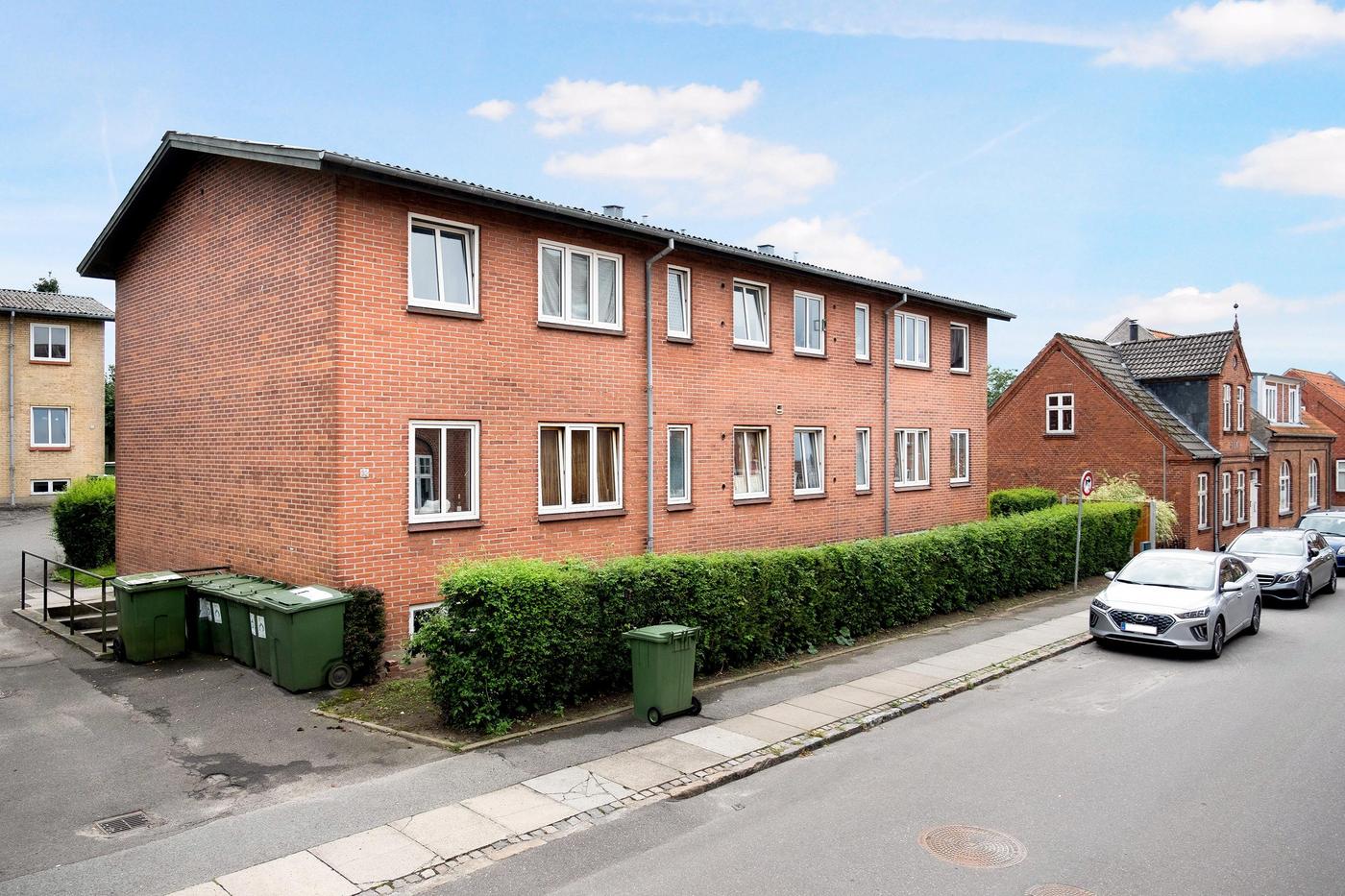3 selvstændige boligudlejningsejendomme med i alt 12 lejemål beliggende på samme matr., hvor den ene er opført i røde sten mens de 2 øvrige er opført i gule sten. Termovinduer er hvide. Taget er sadeltag belagt med eternit.