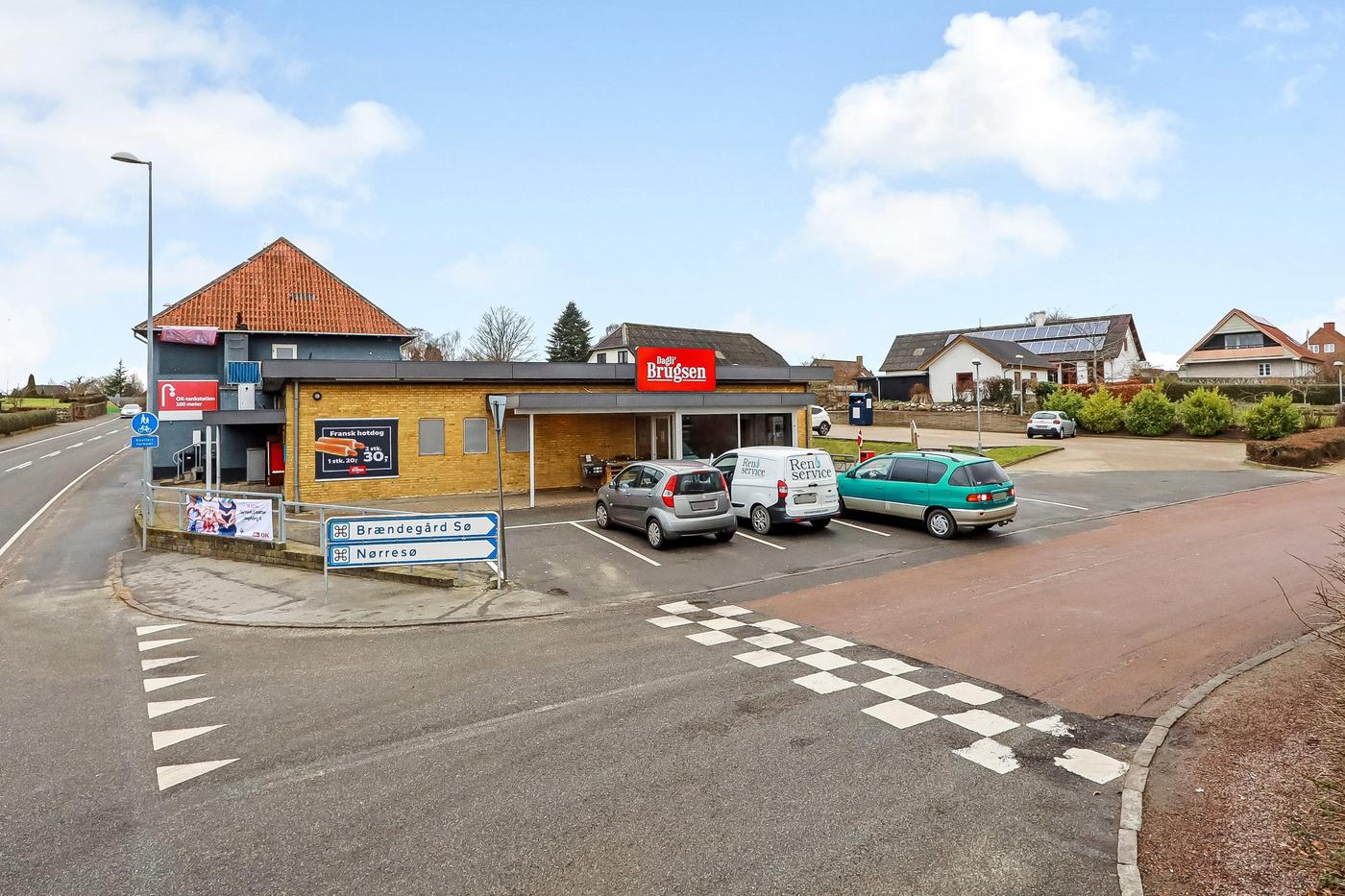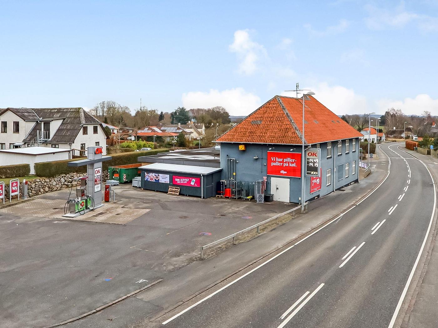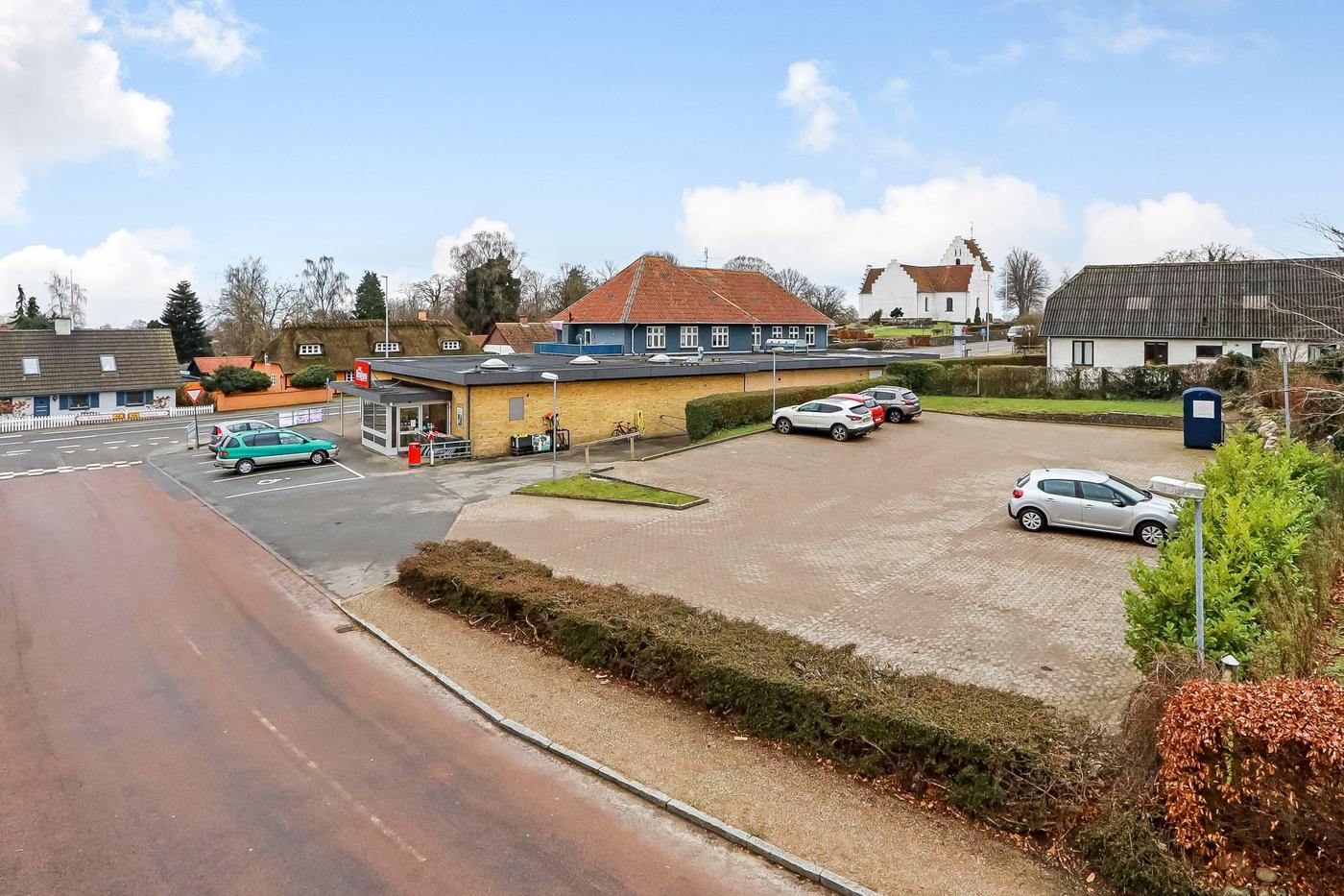 Forretningsejendom beliggende i Vester Åby med god facadedækning mod Svendborg-Faaborg landevejen.