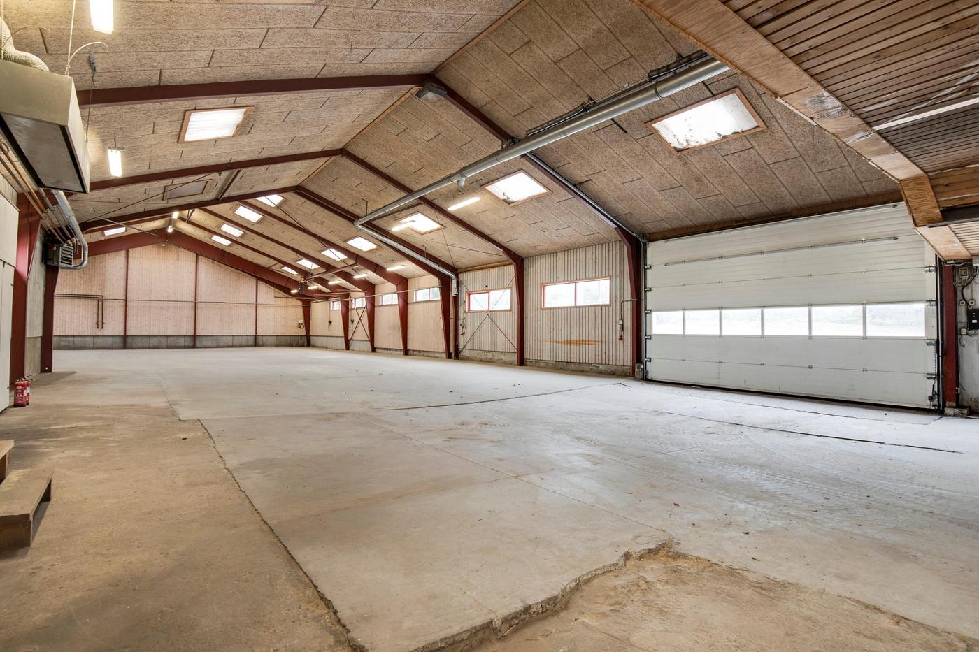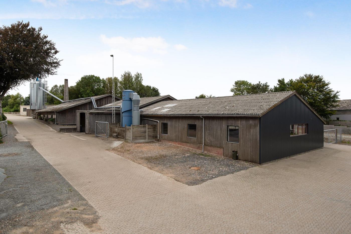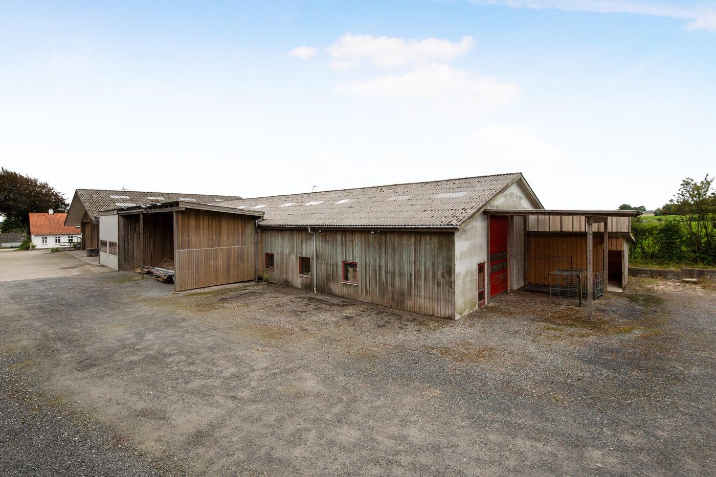 Erhvervsejendom med tilhørende bolig består af både kontor, lager og bolig. Ejendommens 3 lagerhaller er varierende i størrelse og har alle porte i niveau. Ejendommens bygninger tilgås af udenomsarealer med kørefast underlag. Desuden er der grusbelagte opbevaringsområder.