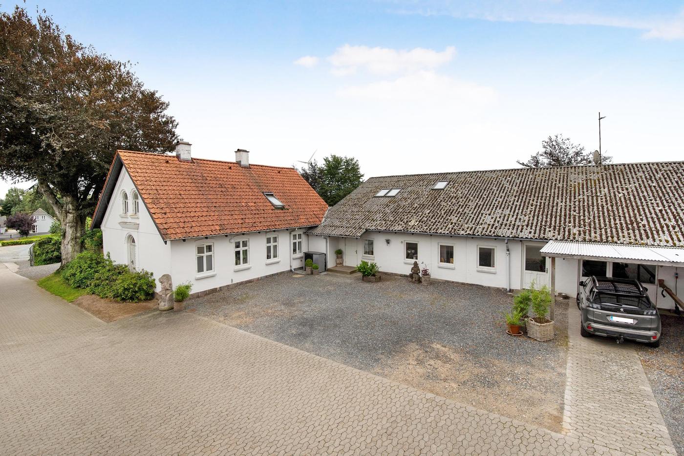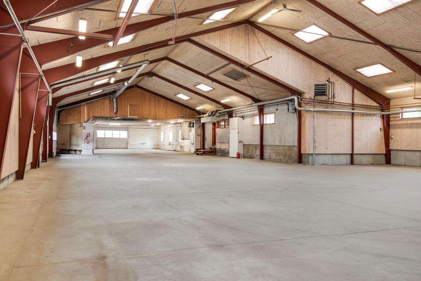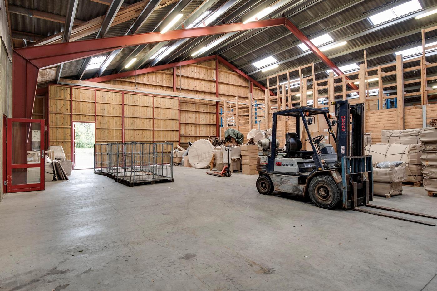 Erhvervsejendom med tilhørende bolig består af både kontor, lager og bolig. Ejendommens 3 lagerhaller er varierende i størrelse og har alle porte i niveau. Ejendommens bygninger tilgås af udenomsarealer med kørefast underlag. Desuden er der grusbelagte opbevaringsområder.