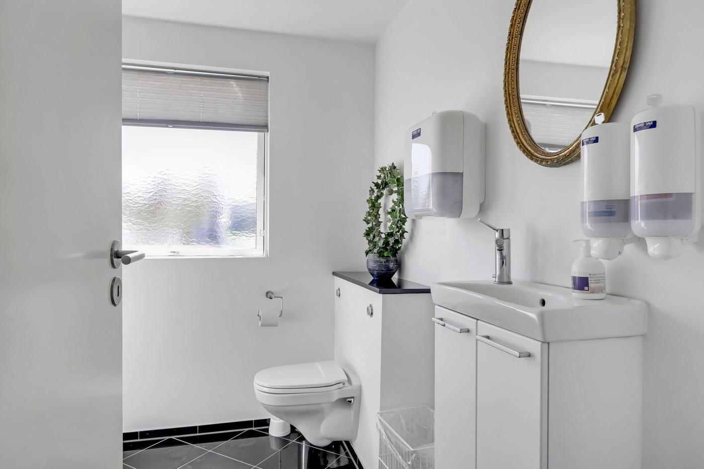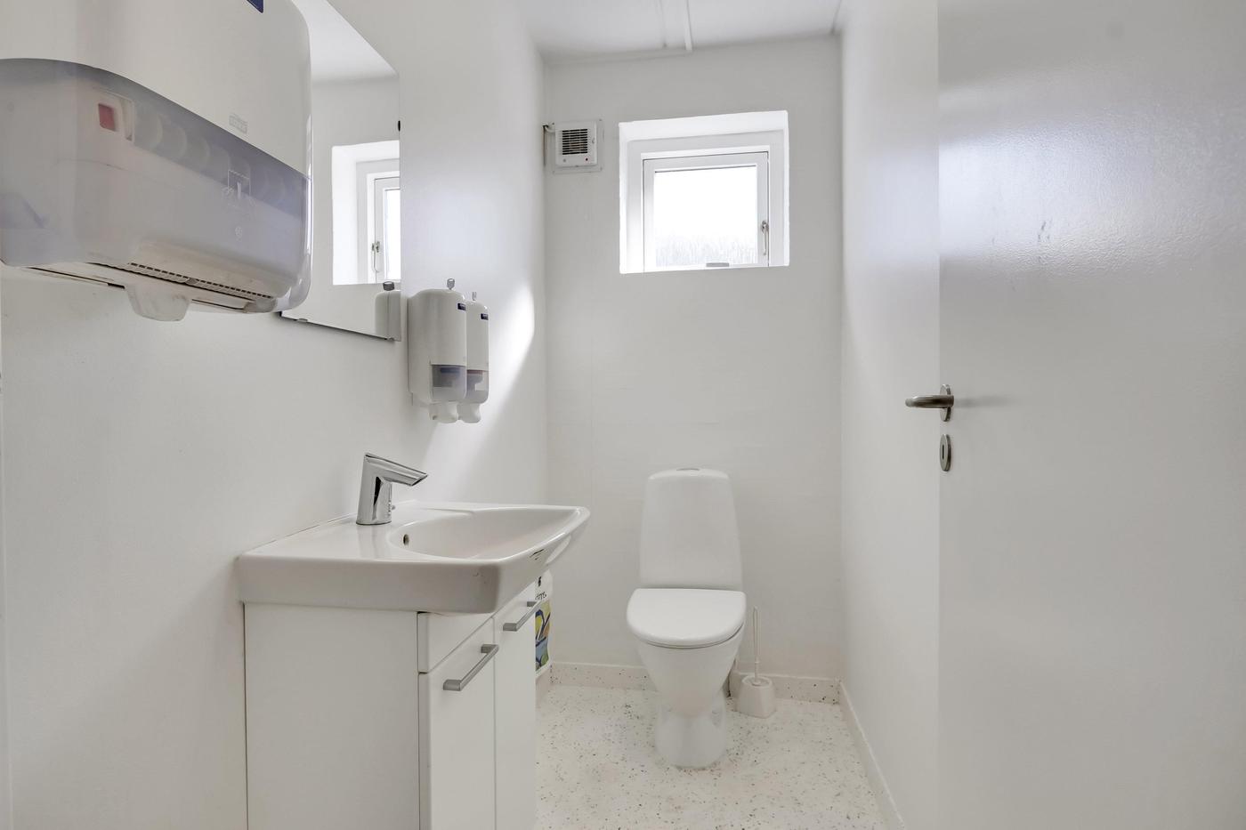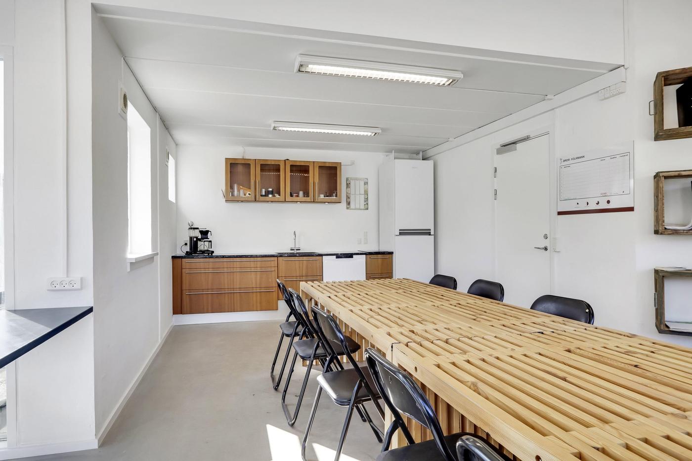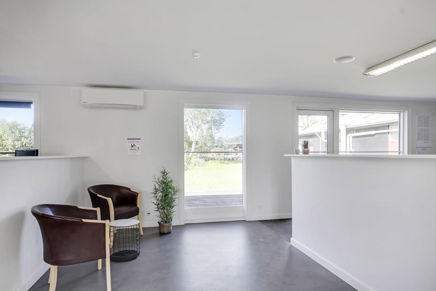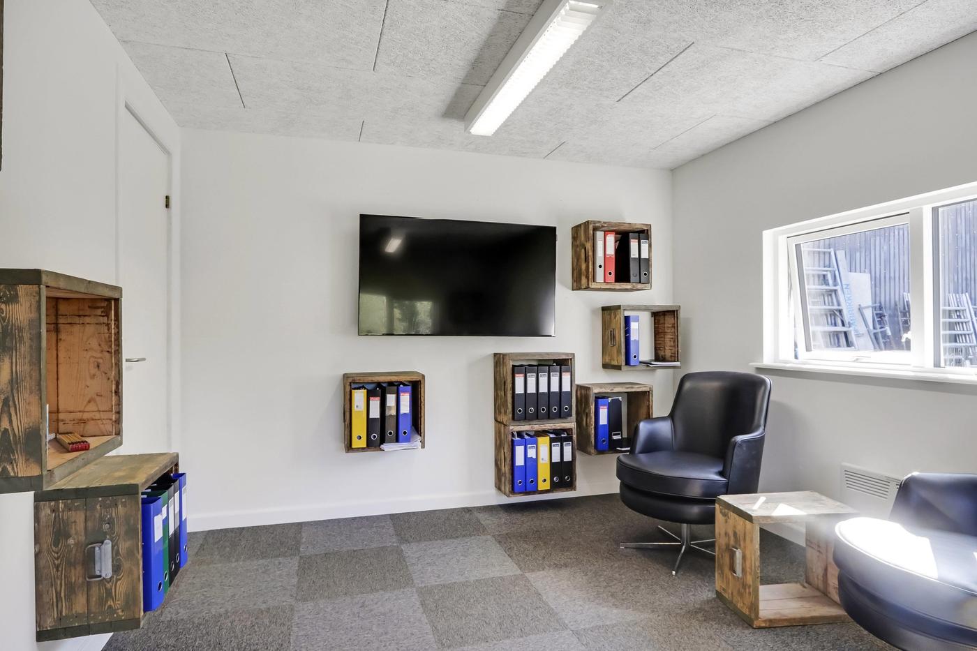 Udover værkstedsbygningen findes separat ejendom, der anvendes til kontor. Bygningen er indrettet med entre med badeværelse med brus, stort åbent kontorlandskab med pt. 3 arbejdspladser. I åben forbindelse med kontorområdet findes køkken med spiseplads. Herudover separat kontor og depotrum.