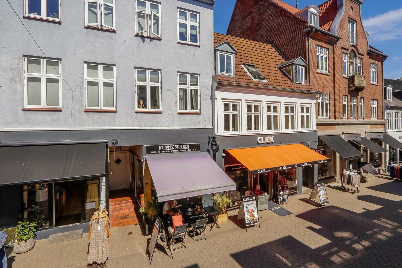 I stueetagen har der været drevet fotoforretning fra ejendommen gennem flere årtier. I passagen fra gågaden og bagtil mod det offentlige parkeringsareal er der adgang til ejendommens 2 beboelseslejligheder.