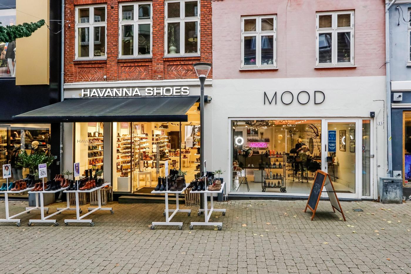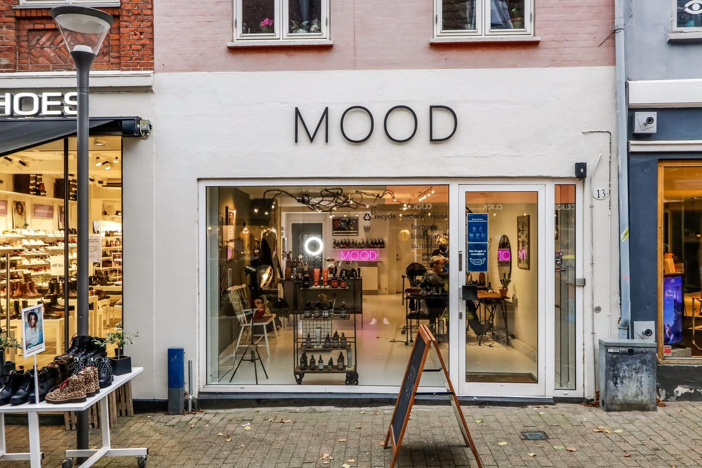 Erhvervslejemålet har siden juni 2019 været udlejet til MOOD, frisørsalon. Nem og overskuelig butik i god stand, som jf. BBR er 88 m². Der er udgang til baggård fra butikken.