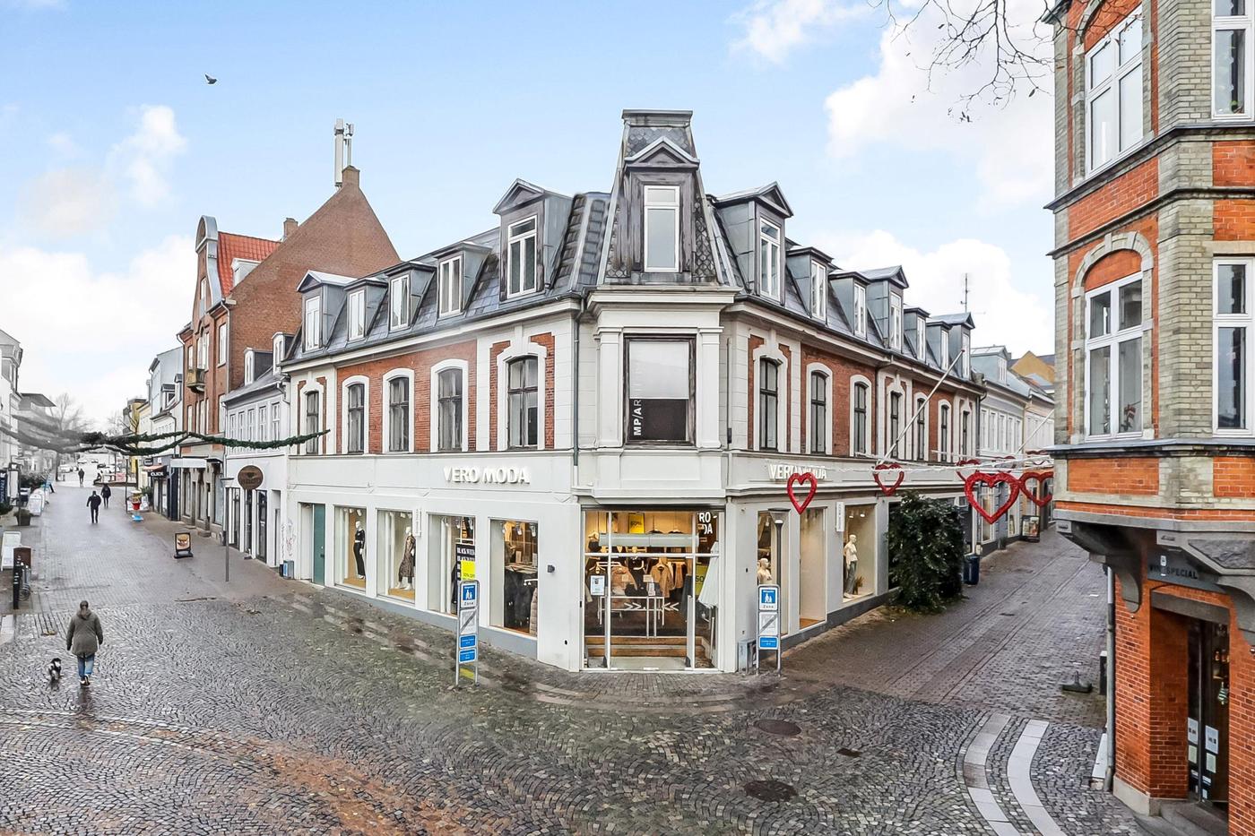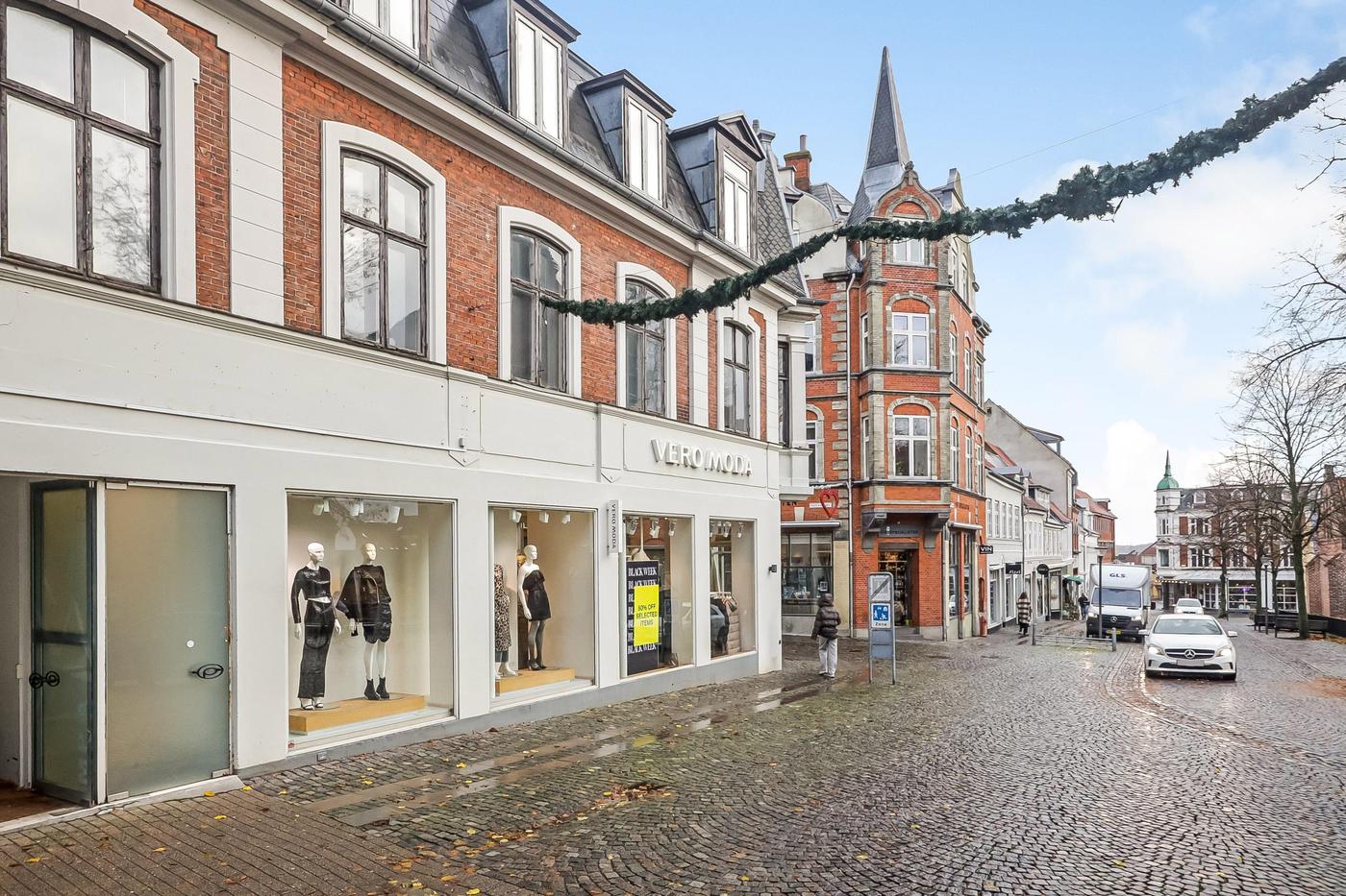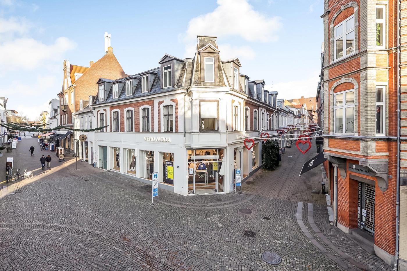 Ejendommen, der er en af Svendborgs flotte gamle bygninger, har en central beliggenhed i Svendborgs gågadenet og der er en virkelig god facadedækning.