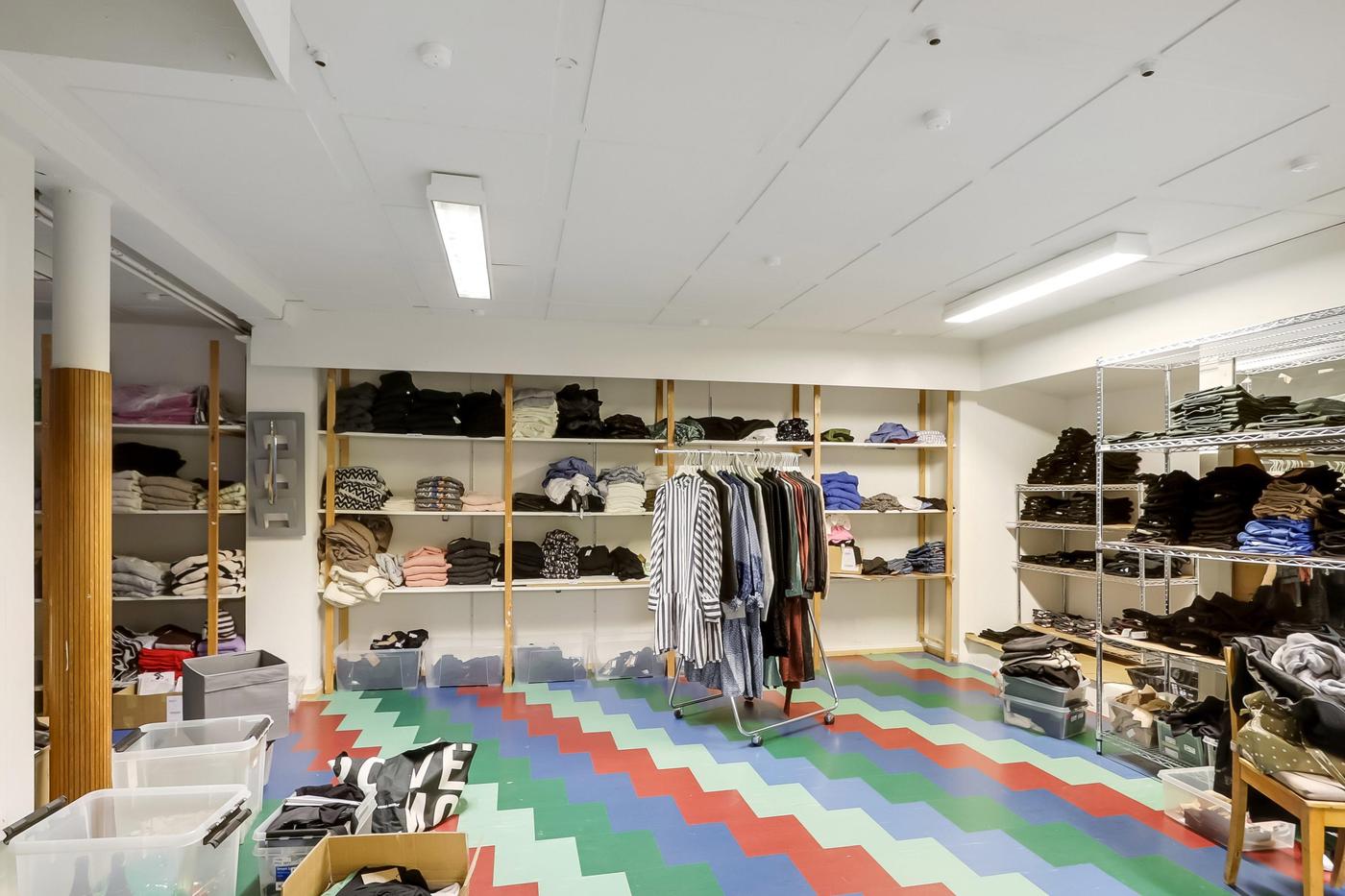 Lokalerne har i årevis været anvendt til tøjforretning, men pga. deres størrelse vil de også være anvendelig til mere pladskrævende formål - f.eks. brugskunst og lignende.