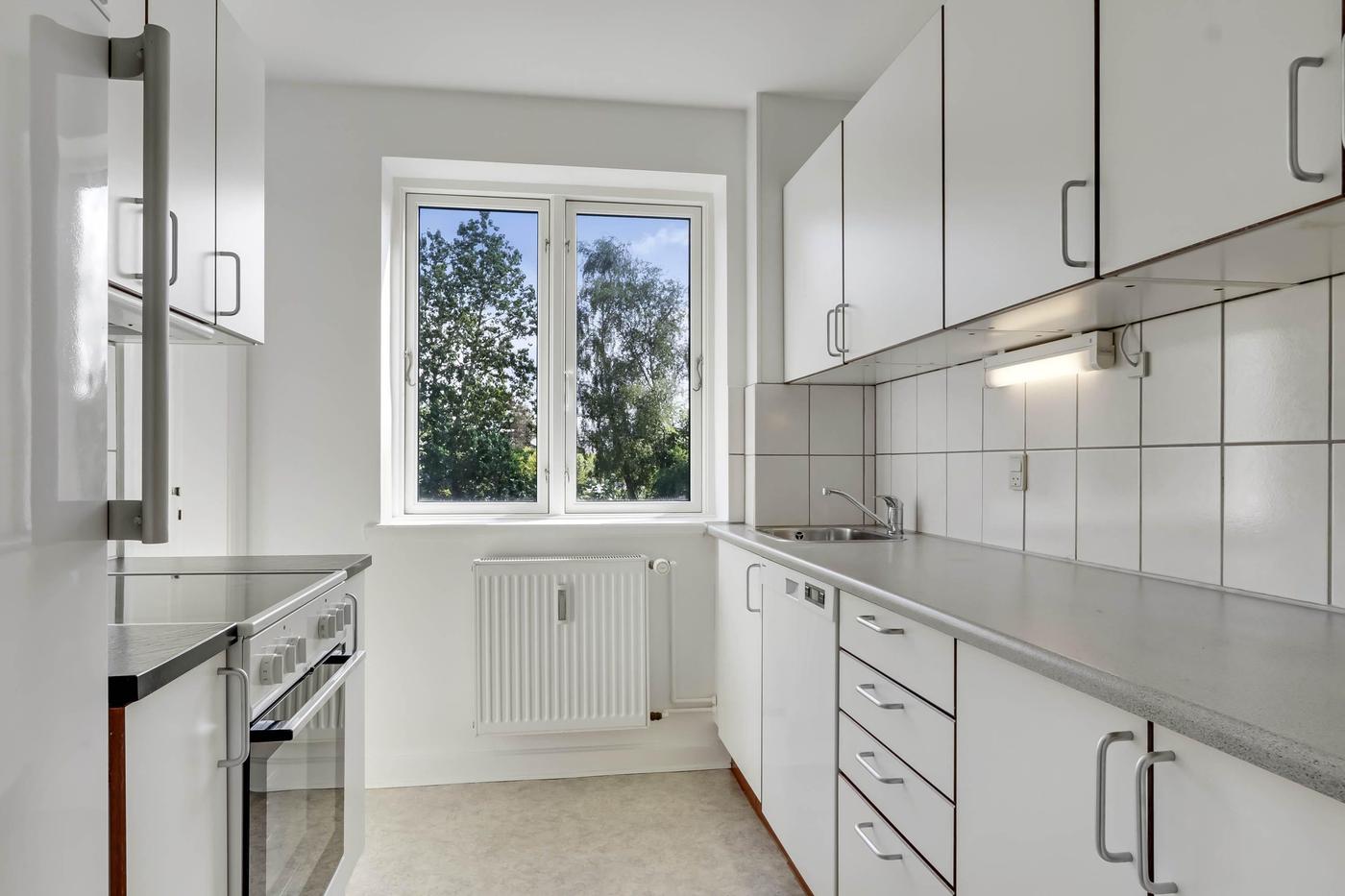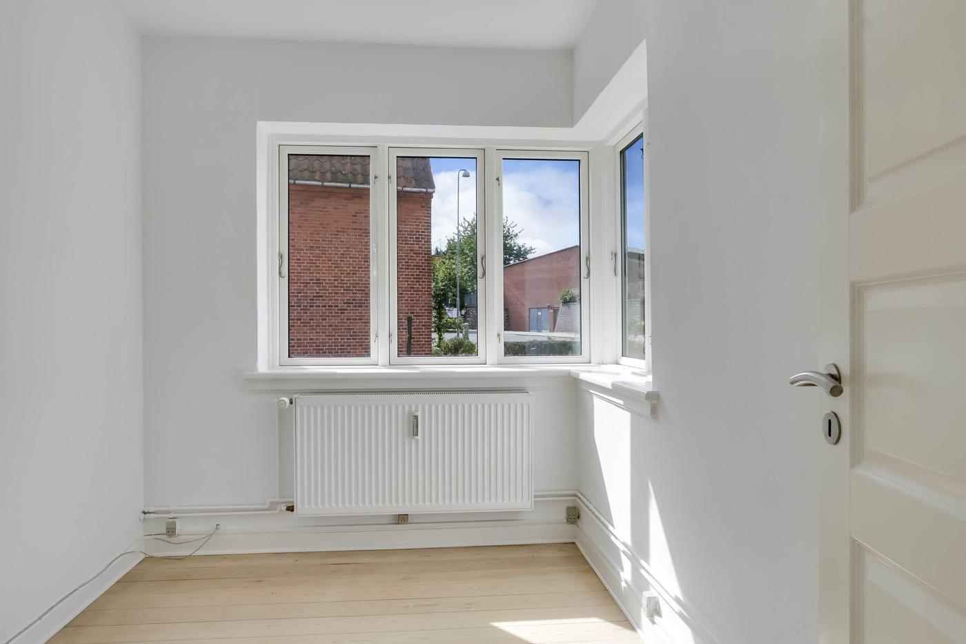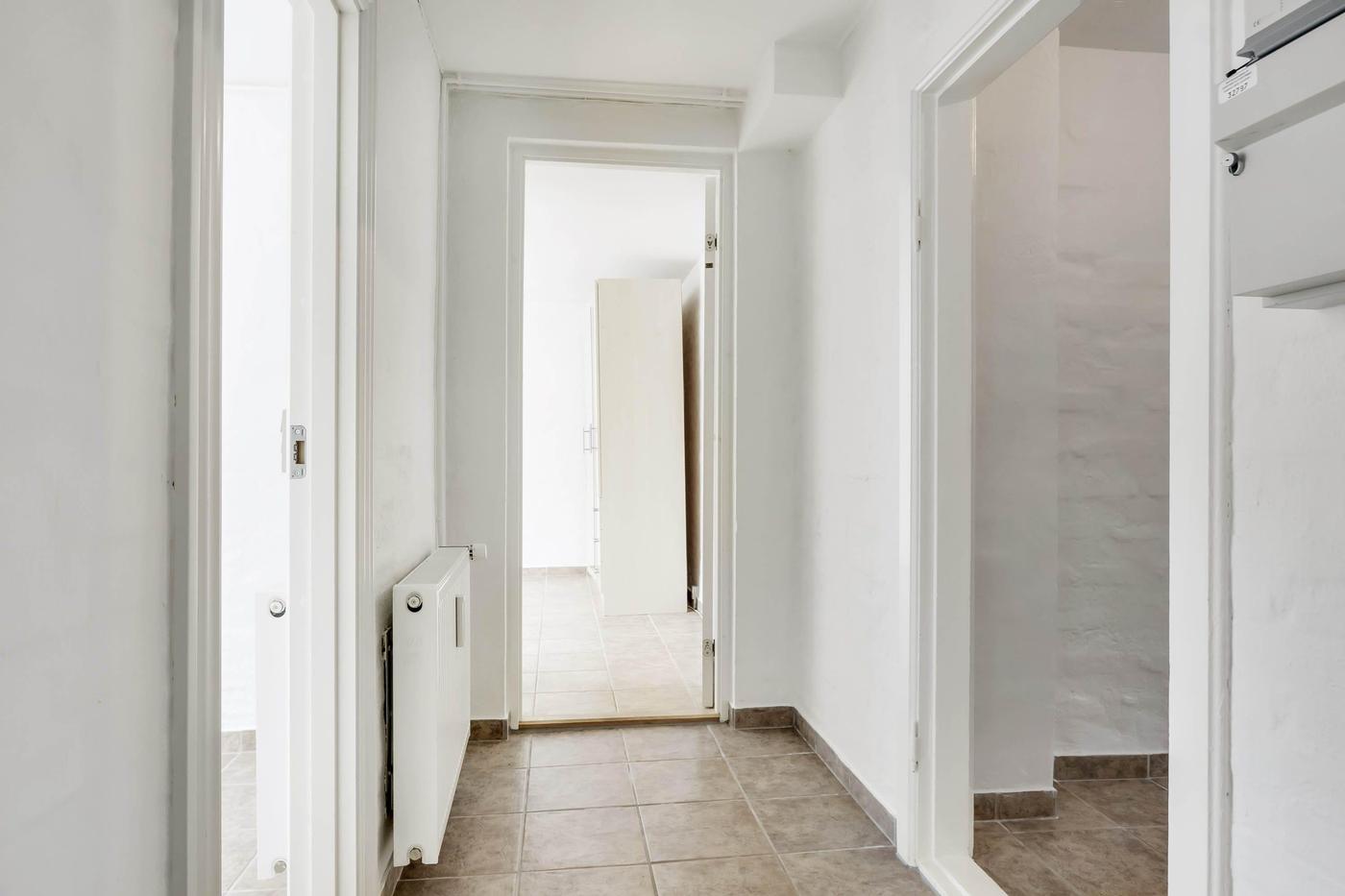 Stuelejligheden indeholder repos med nedgang til kælderen via intern trappe, entre, stor stue, værelse/kontor, soveværelse, køkken, viktualierum og badeværelse. Der er afhøvlede gulve i værelser og stue.