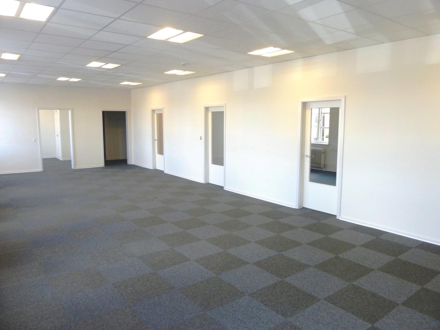 Lejemålet andrager 209 m² og indeholder et stort regulært kontor med plads til ca. 5-6 arbejdsstationer, 3 tilstødende kontorer på hver ca. 10 m². Der er adgang til personalefaciliteter fra det store kontor i form af frokostrum og mindre køkken samt toilet.