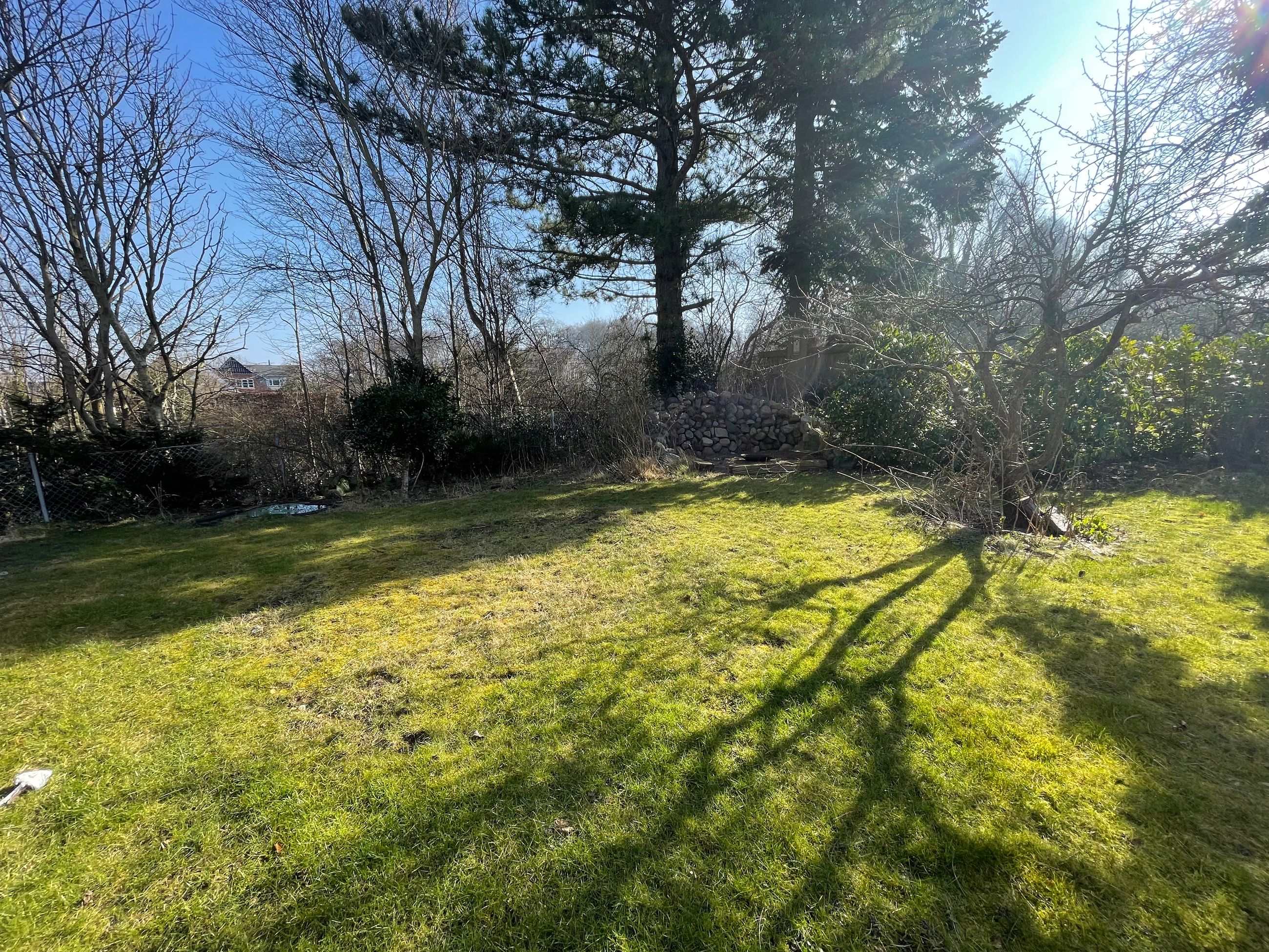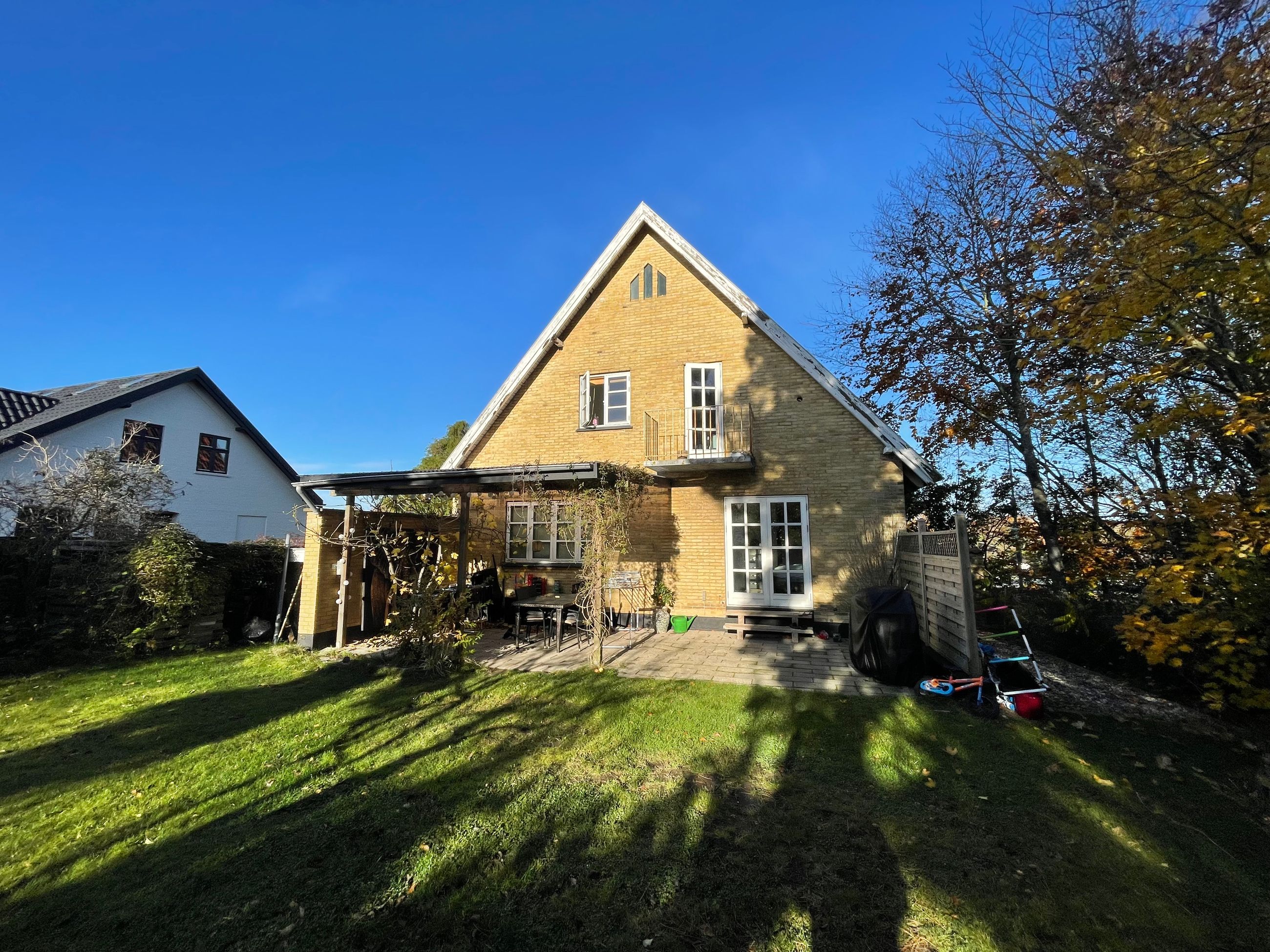 Bag ejendommen findes fin lukket have med terrasse.