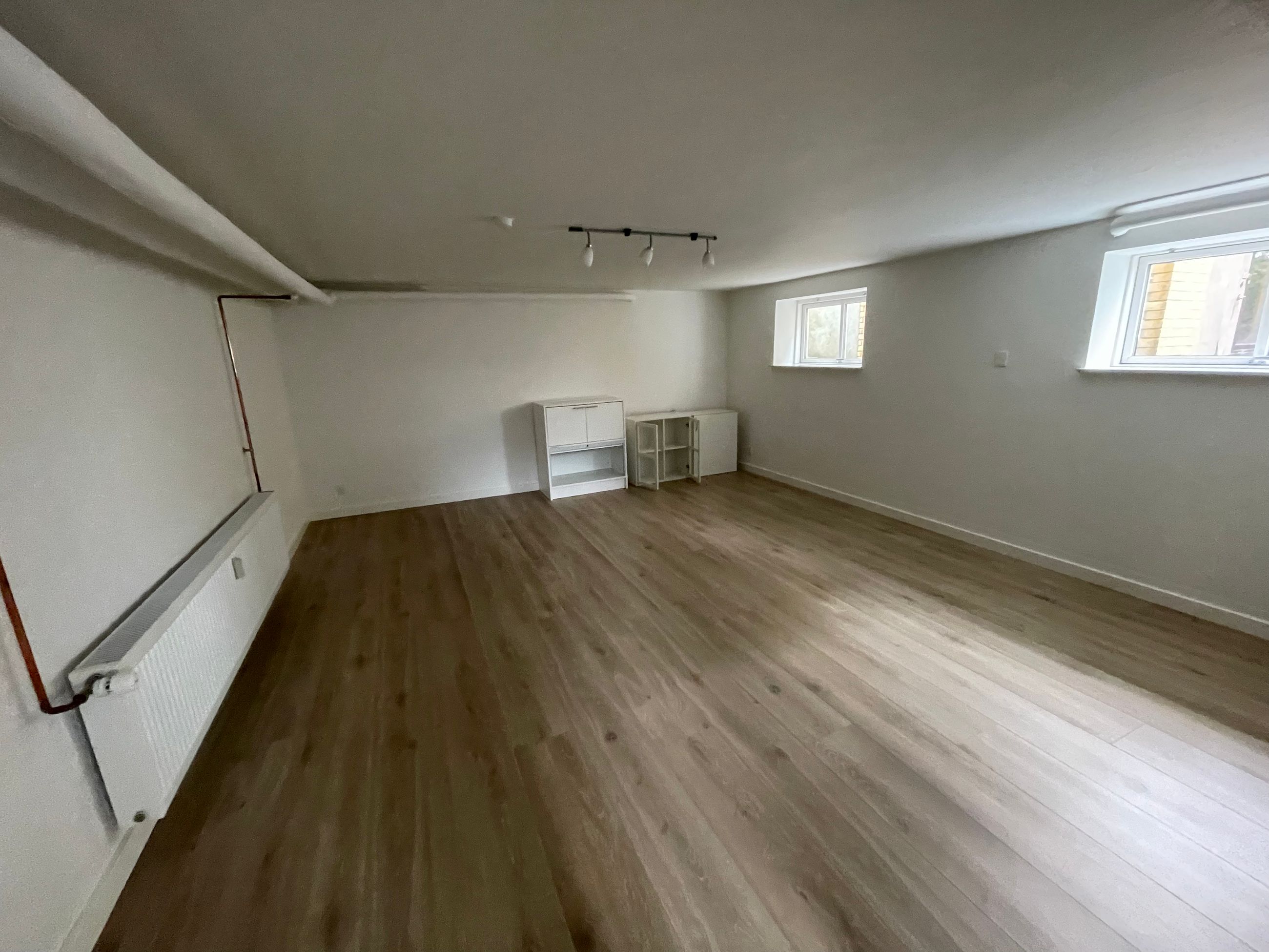 Der er egen adgang til kælderen, der er indrettet med entre, køkken, badeværelse, 2 værelser samt fyrrum.
