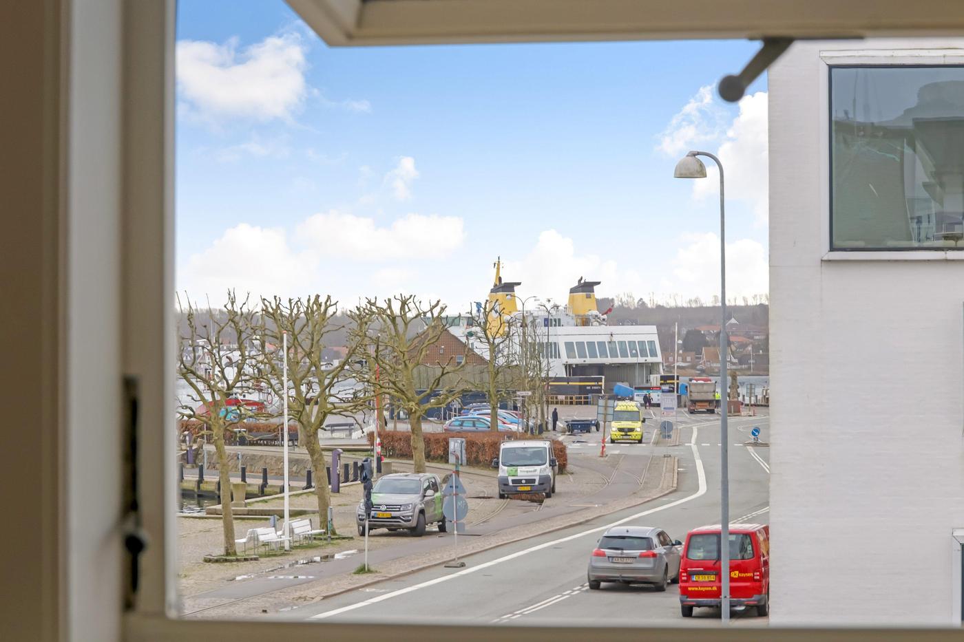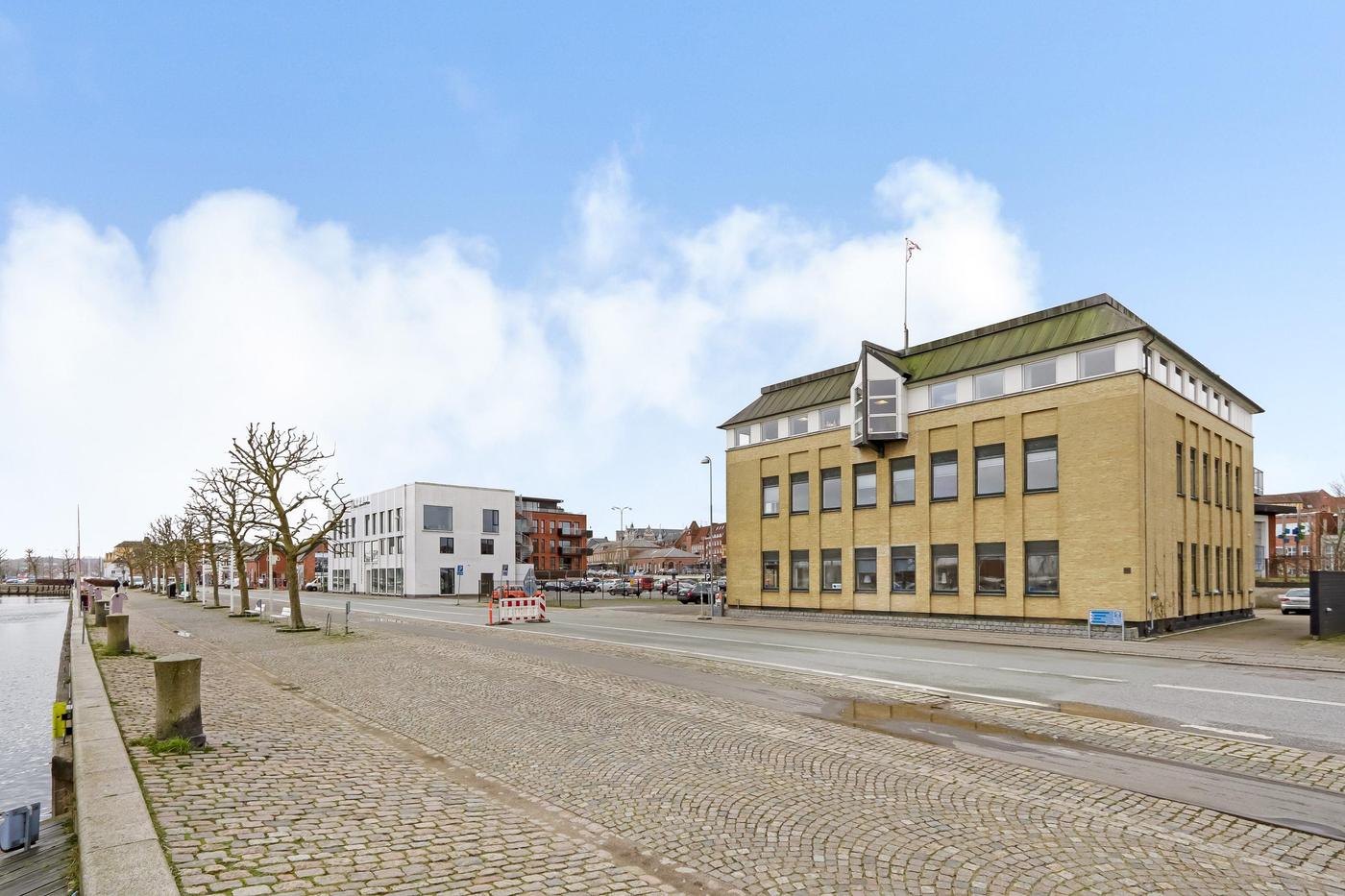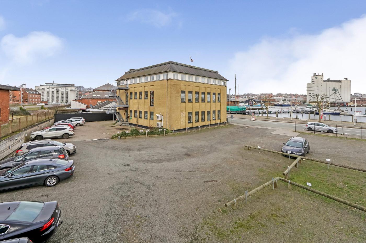 Ejendommen er beliggende på havnefronten med udsigt til hele Svendborgs maritime miljø, og med banegården og busstationen lige bagved. Byens gågader finder man kun få minutters gang fra lejemålet.