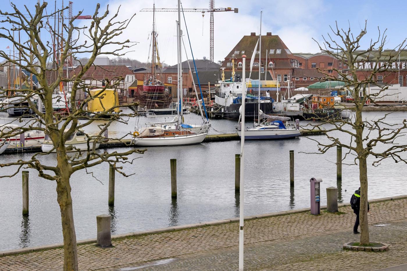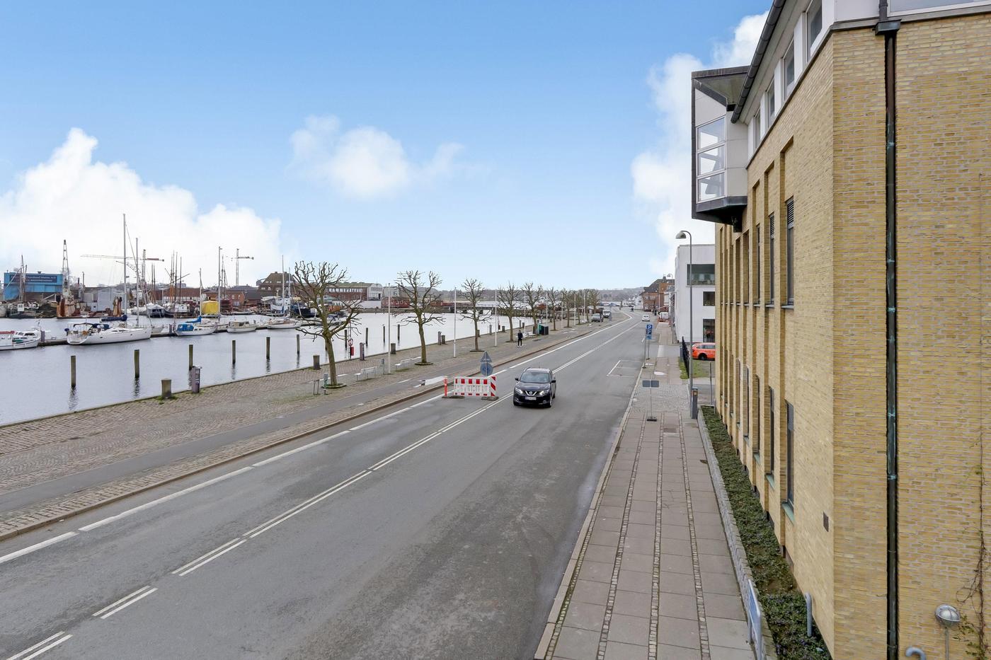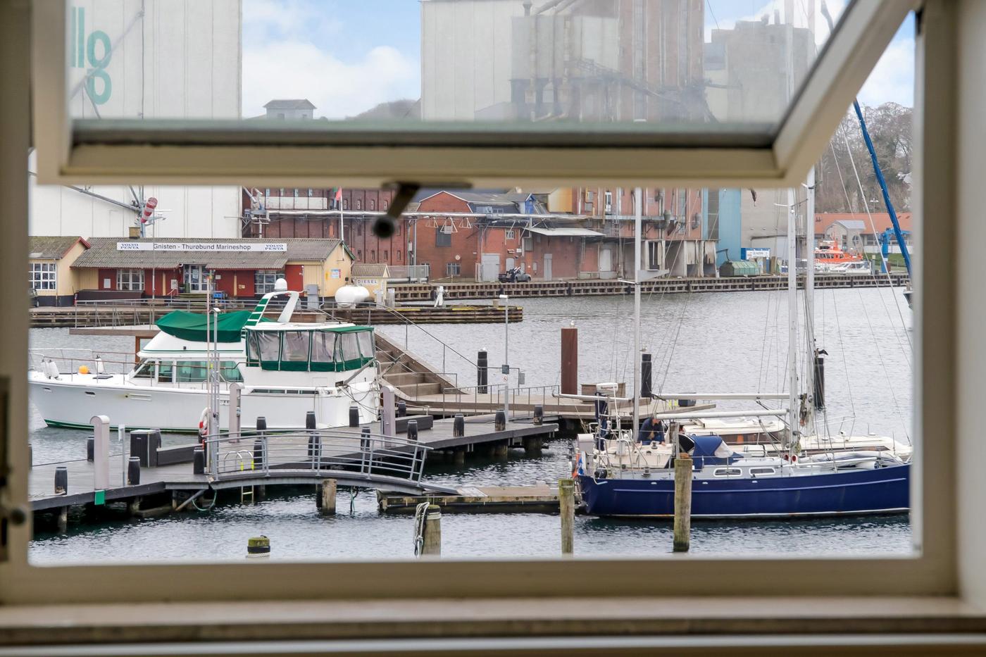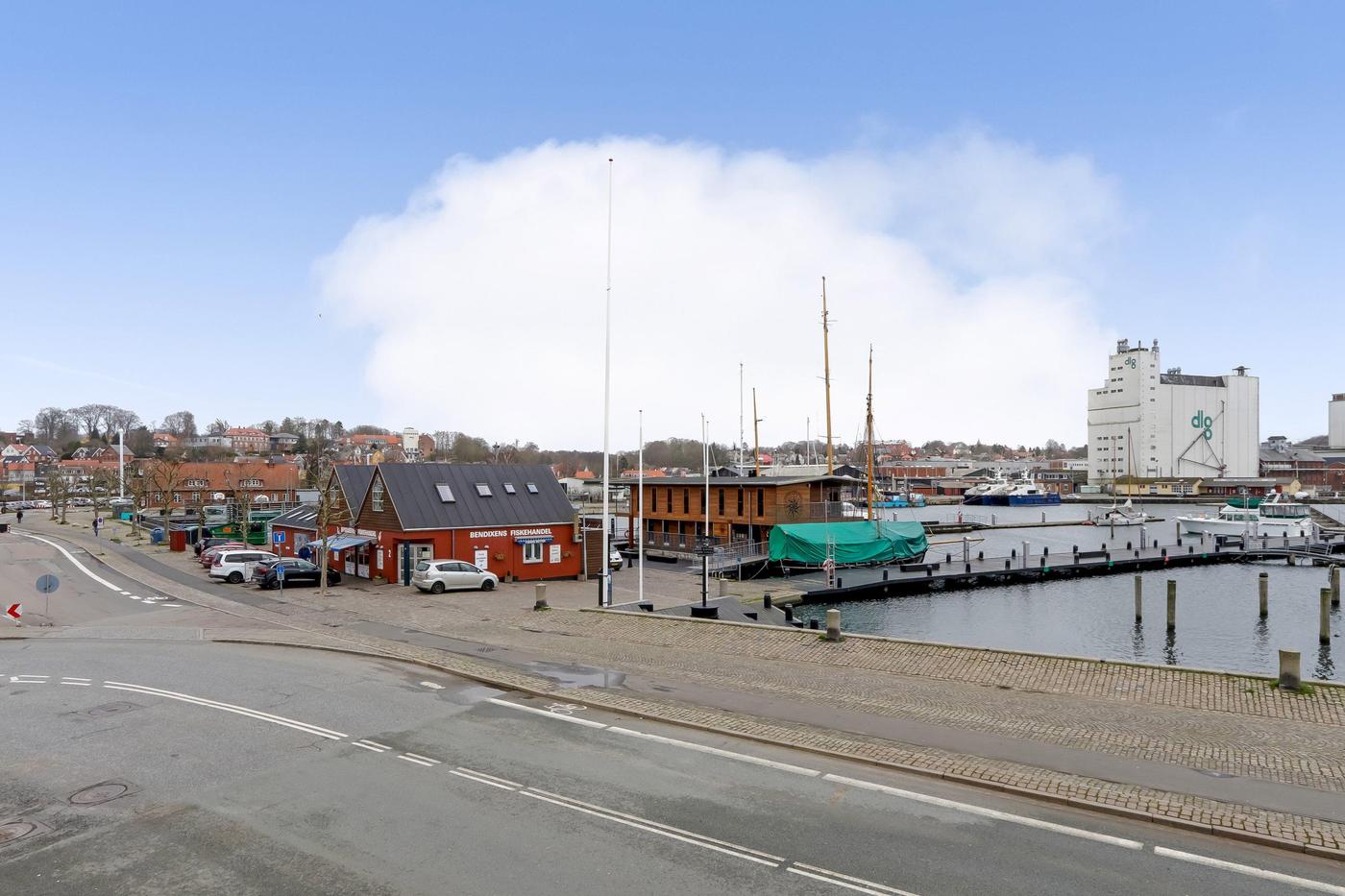 Ejendommen er beliggende på havnefronten med udsigt til hele Svendborgs maritime miljø, og med banegården og busstationen lige bagved. Byens gågader finder man kun få minutters gang fra lejemålet.
