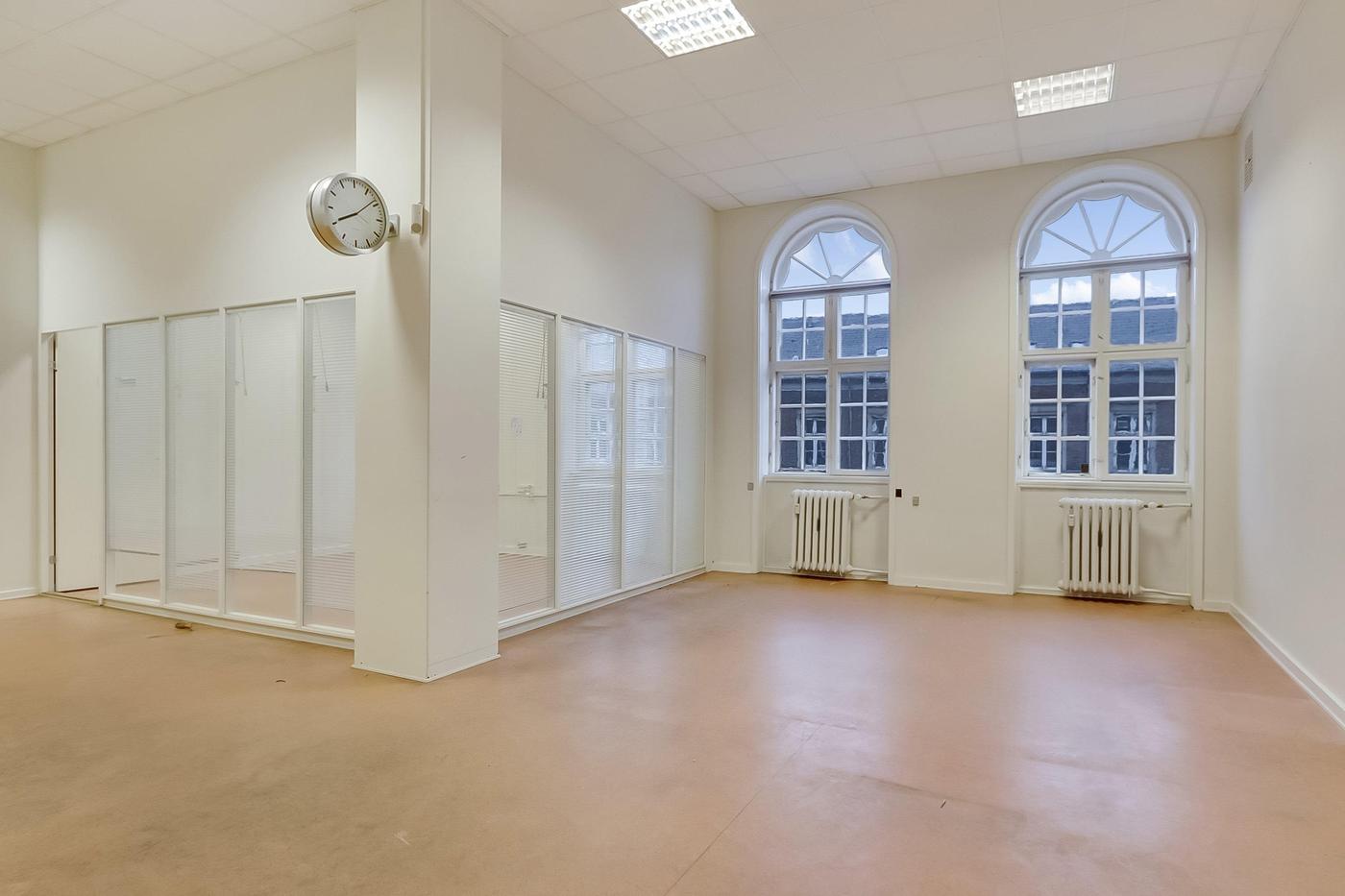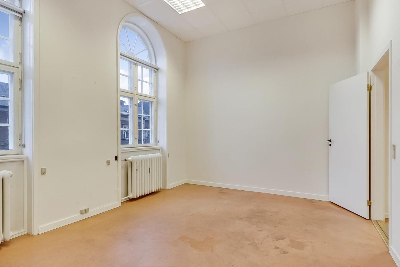 Lejemålet andrager i alt 217 m² og er indrettet med foyer/indgangsparti, et åbent og regulært kontorområde, 2 lyse kontorer med vinduer mod Klosterplads, et mødelokale samt toilet, depot og frokoststue.