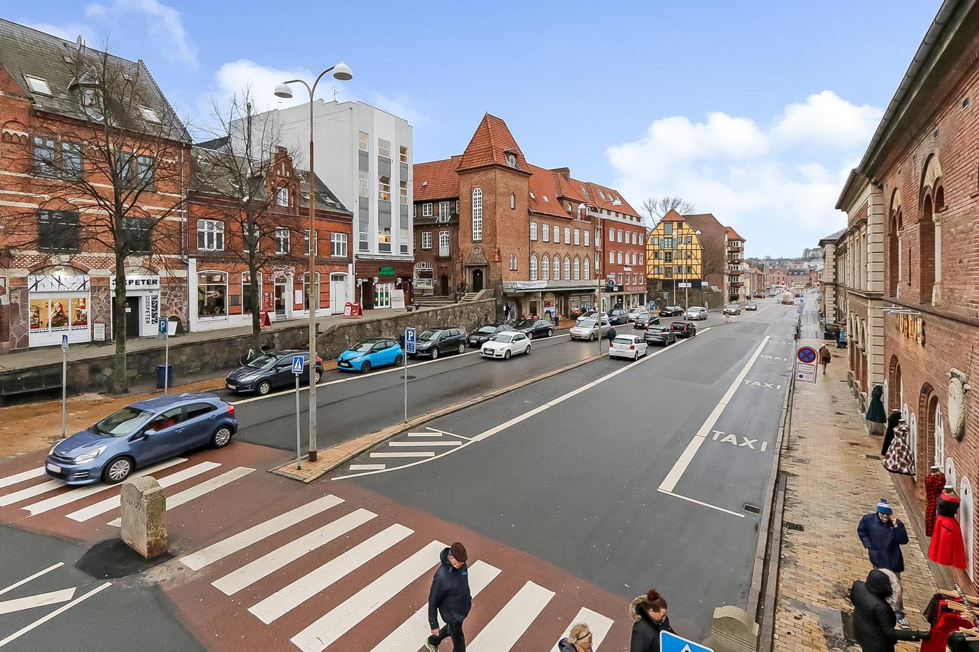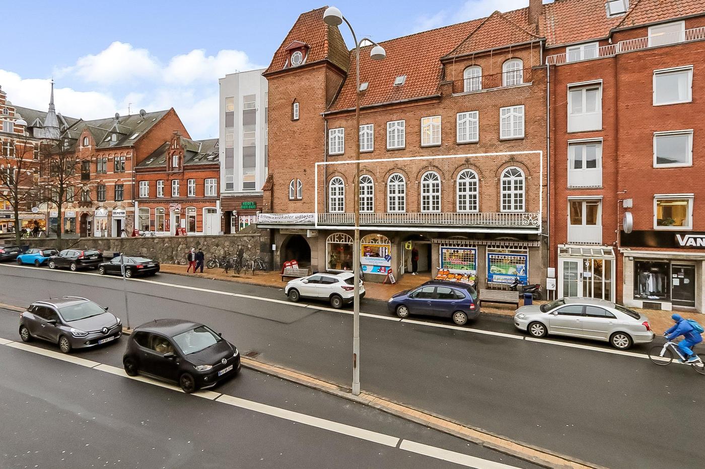 På modsatte side ligger byens banegård og der er kun 200 meter til busstationen. I det hele taget er ejendommen godt og centralt beliggende med byens gågade i "baggården" og havneområdet kun 200 meter fra ejendommen.