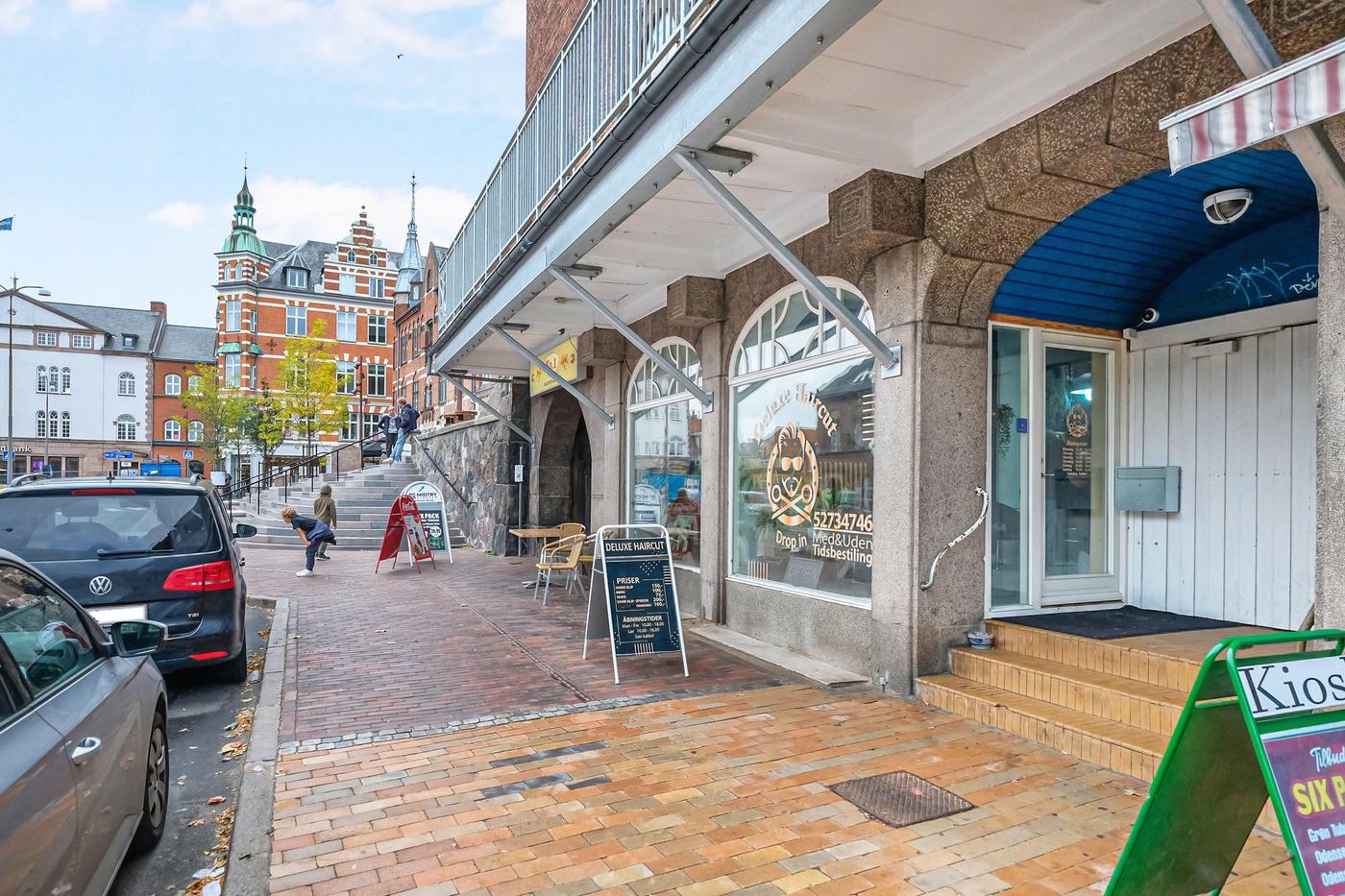 Der er korttidsparkering lige udenfor lejemålet, og én af byens store gågader, Møllergade, ligger lige rundt om hjørnet.