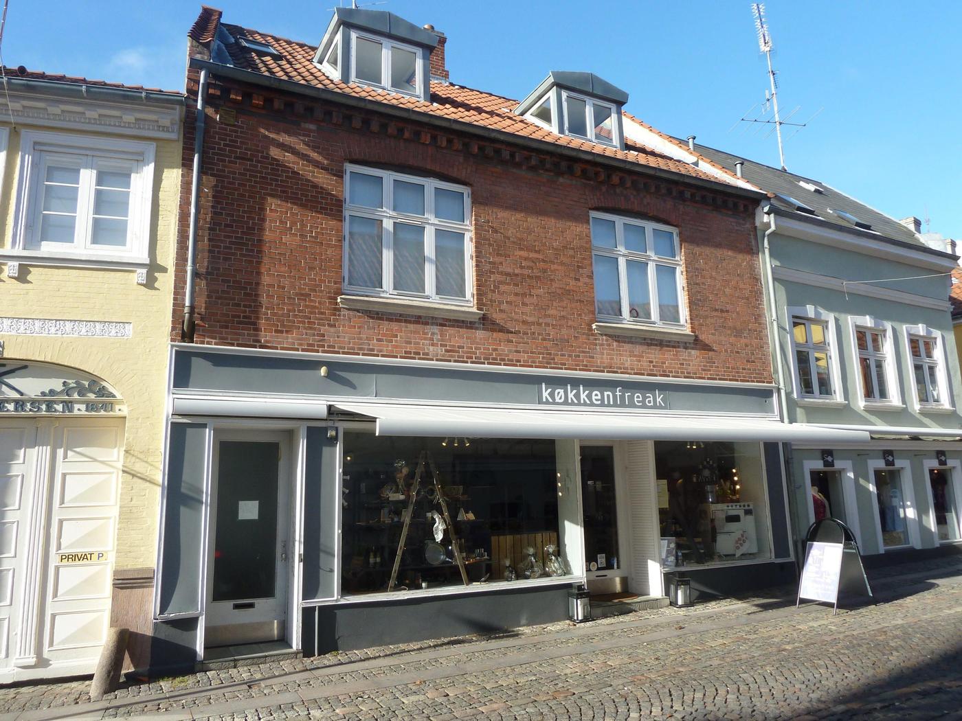 Butikslejemål centralt beliggende i atmosfærefyldt og brostensbelagt sivegade.