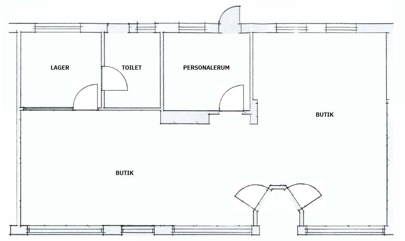 Butikken, der har en god facadedækning, indeholder vinkelbygget butikslokale, lille lager, toilet med forrum samt kontor/frokoststue.