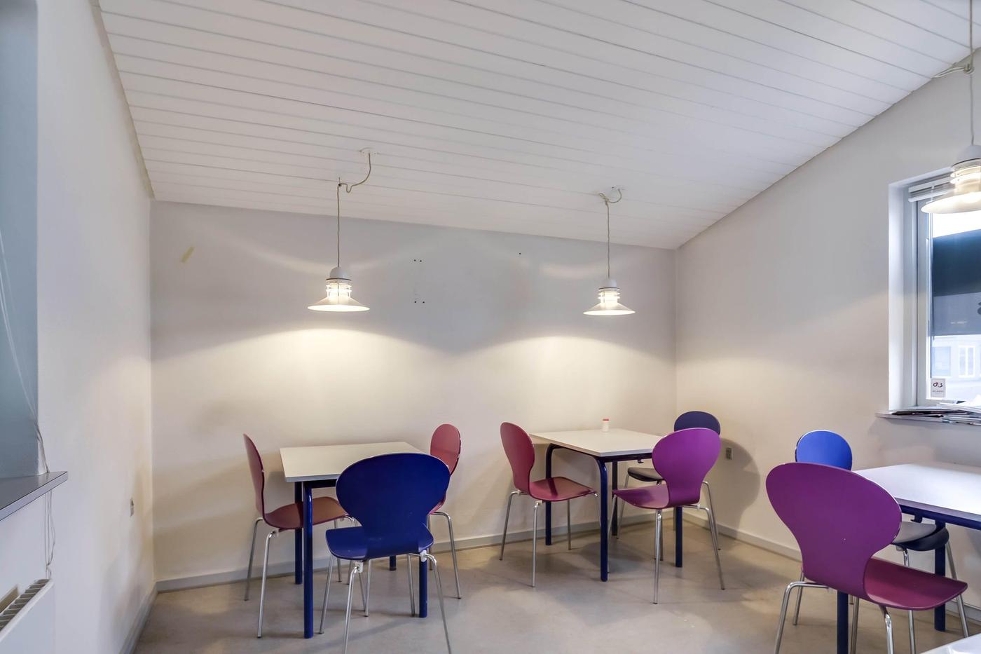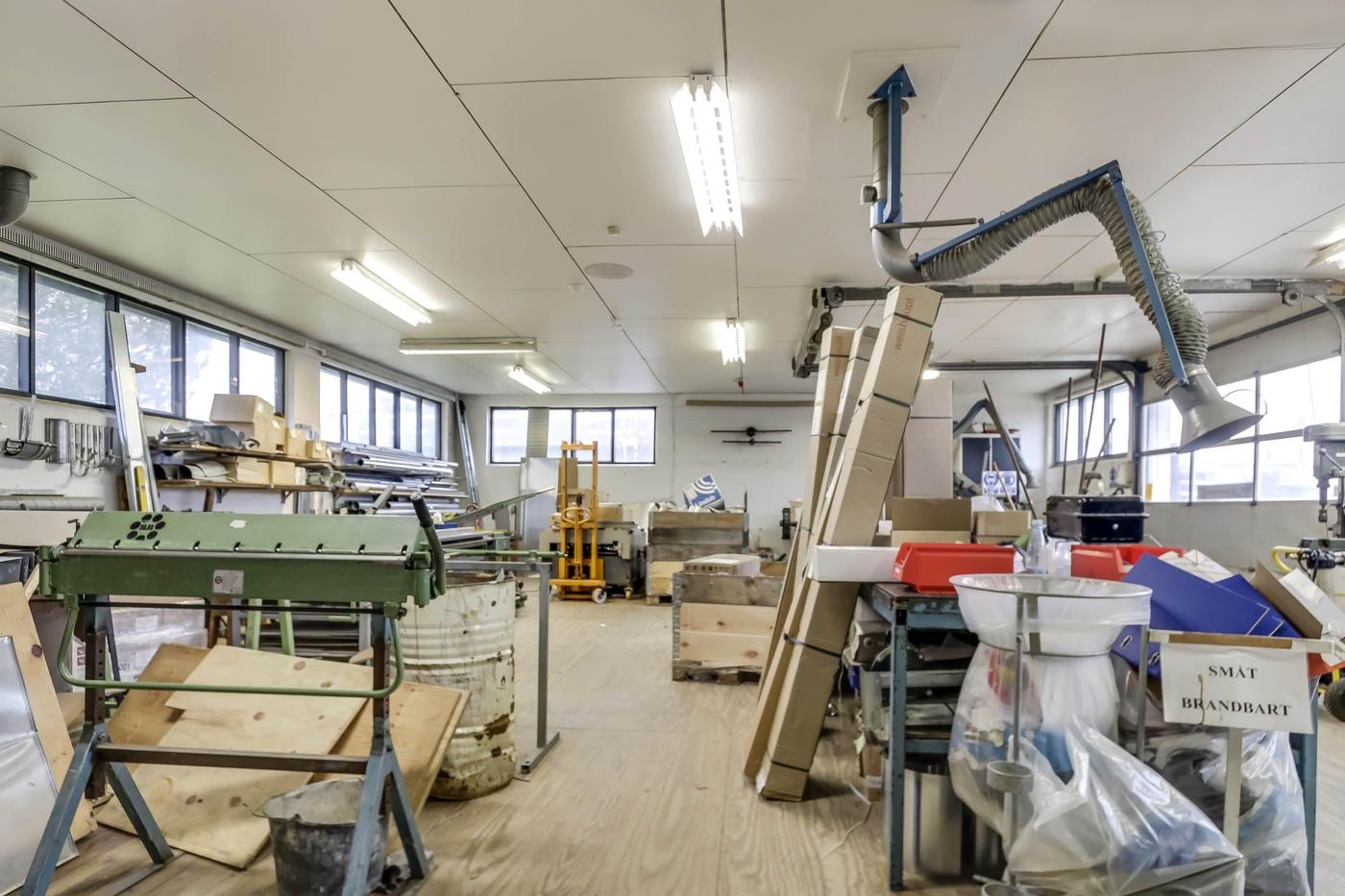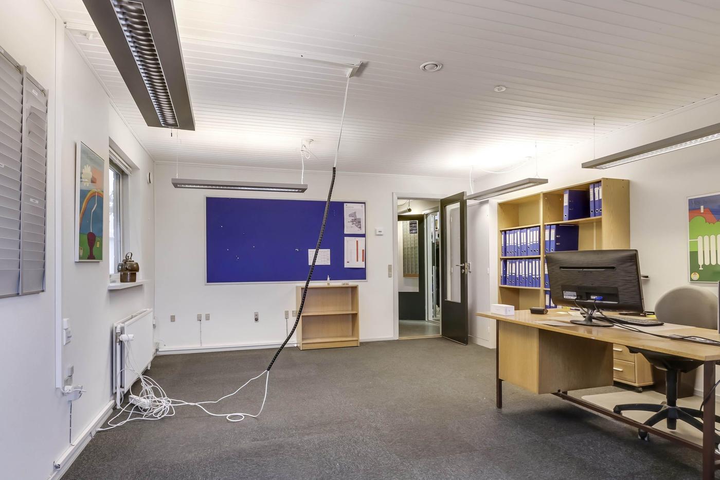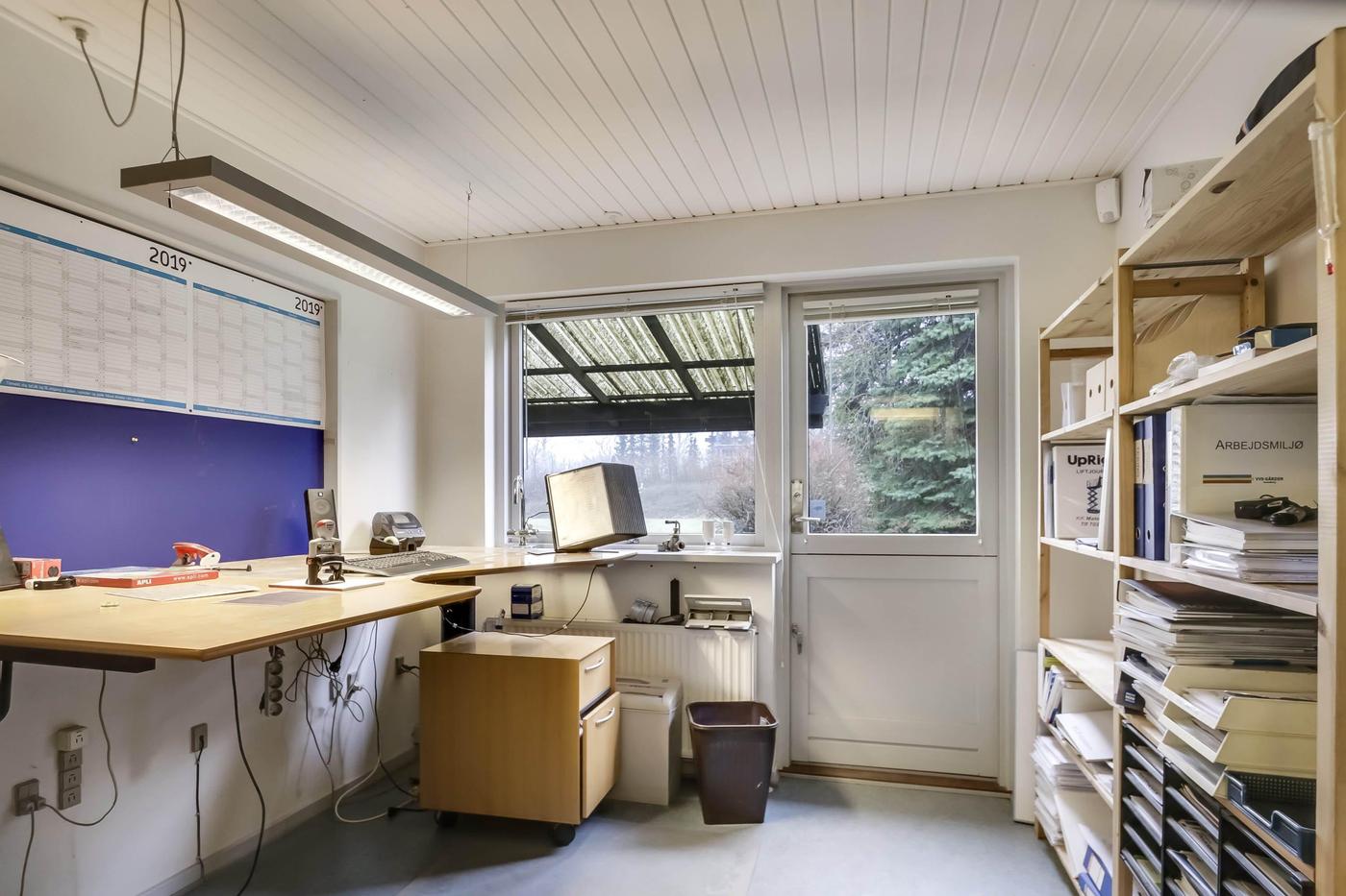 Bygningen indeholder administrationsdel med entré med kundetoilet, administrationslokale med 3-4 arbejdspladser, chefkontor, separat kontor og frokoststue med tekøkken. Herudover findes lager og værksted med en frihøjde på ca. 3 meter. I værkstedet er der isat aluhejseport på ca. 3 x 2,80 meter. Værksted og lager har trægulve/pladegulve, da ejendommen oprindeligt er opført til tømrer-/snedkervirksomhed. Fra lageret er der adgang til server-/arkivrum, omklædningsfacililteter, bruserum, frokoststue og toilet.