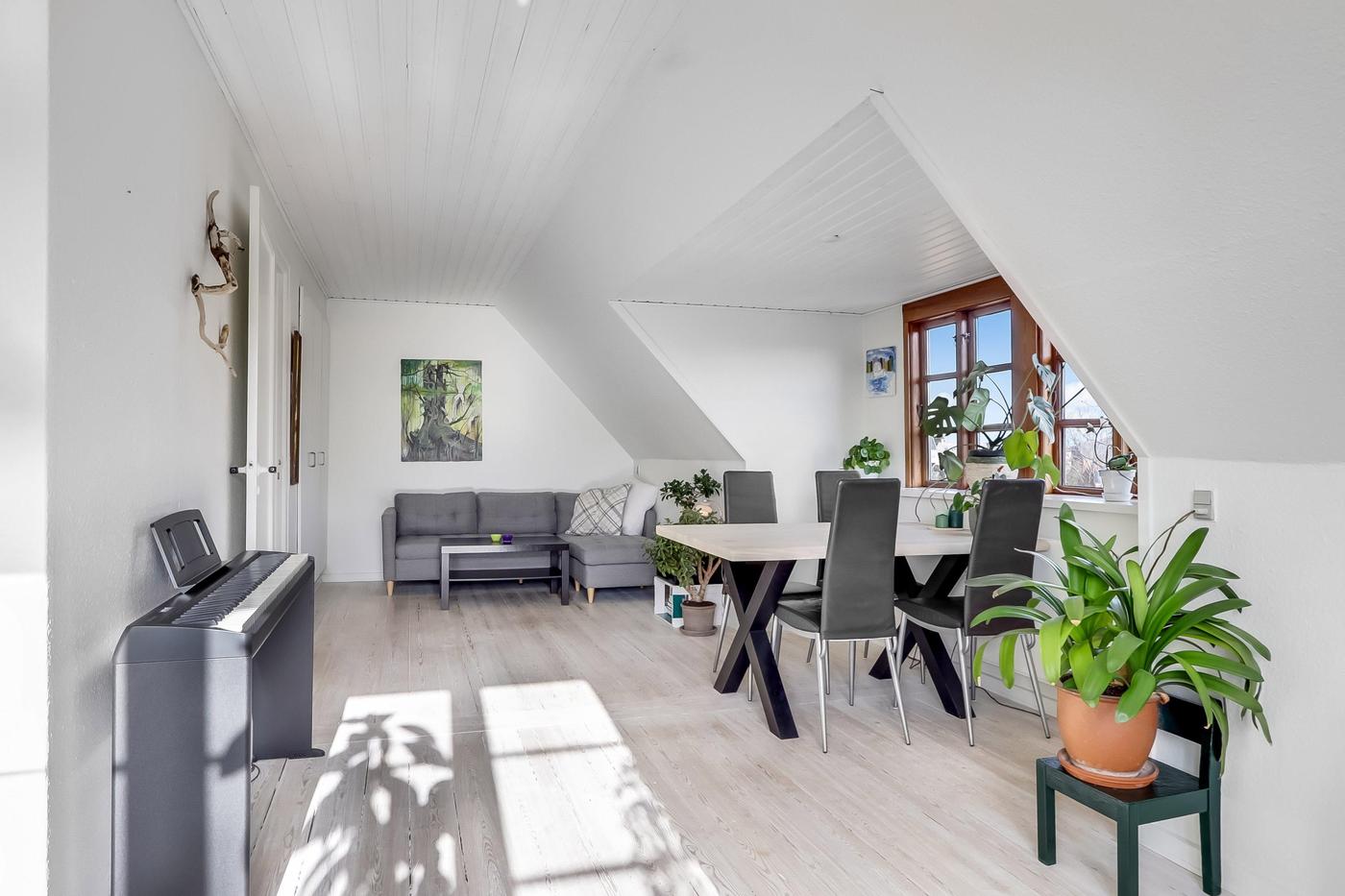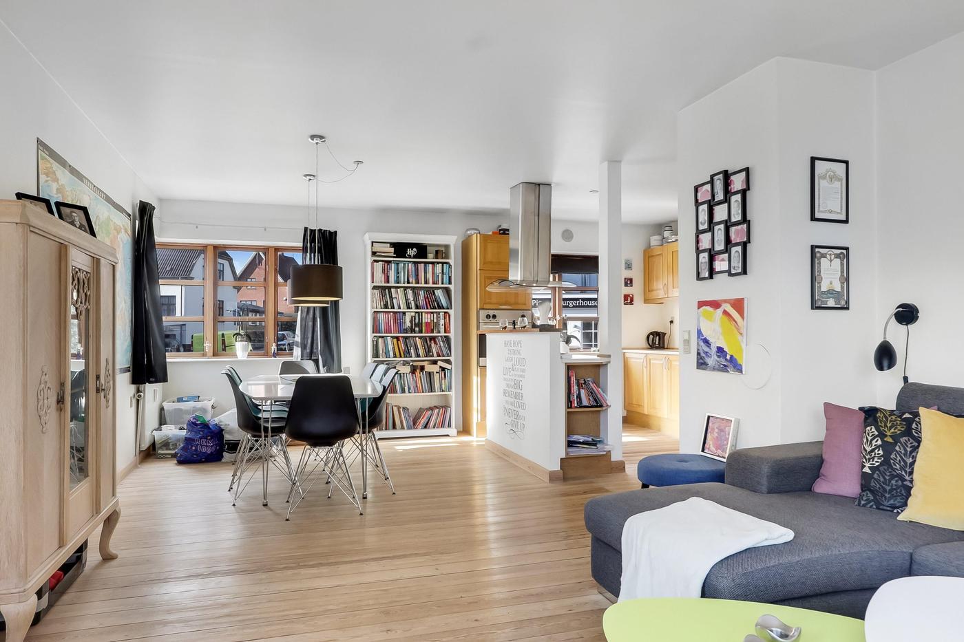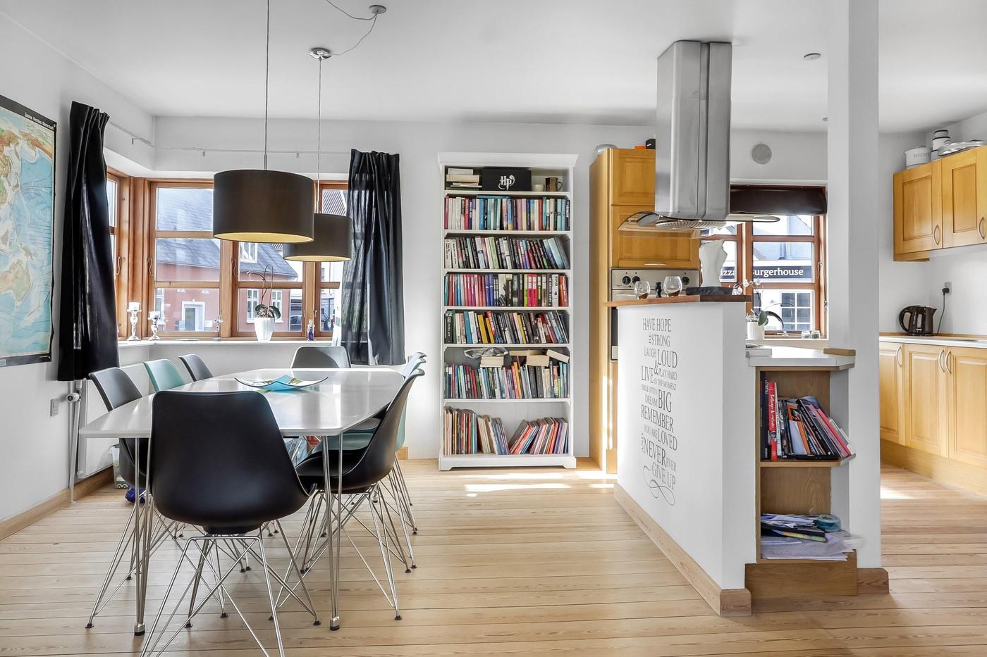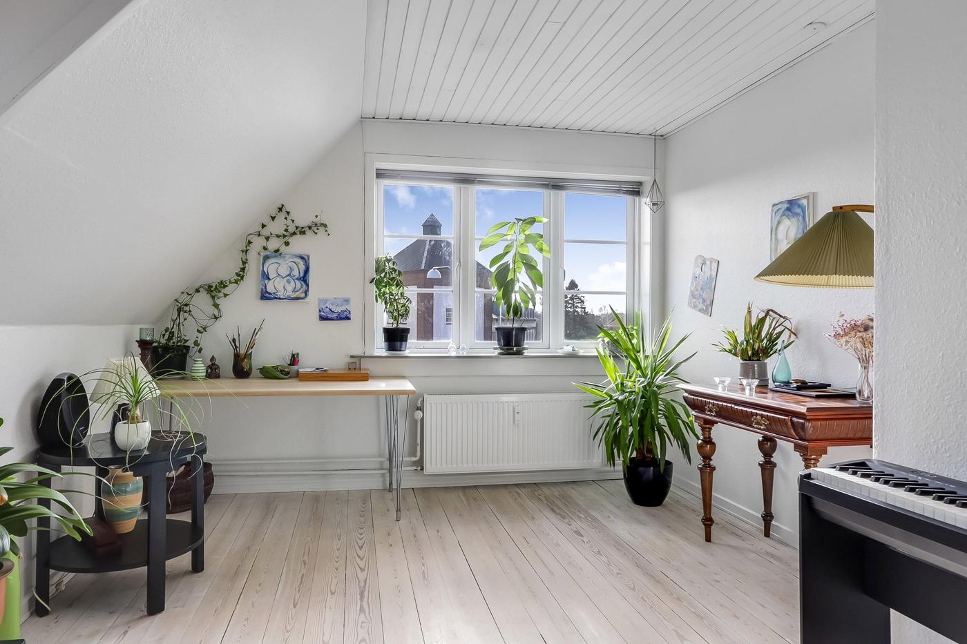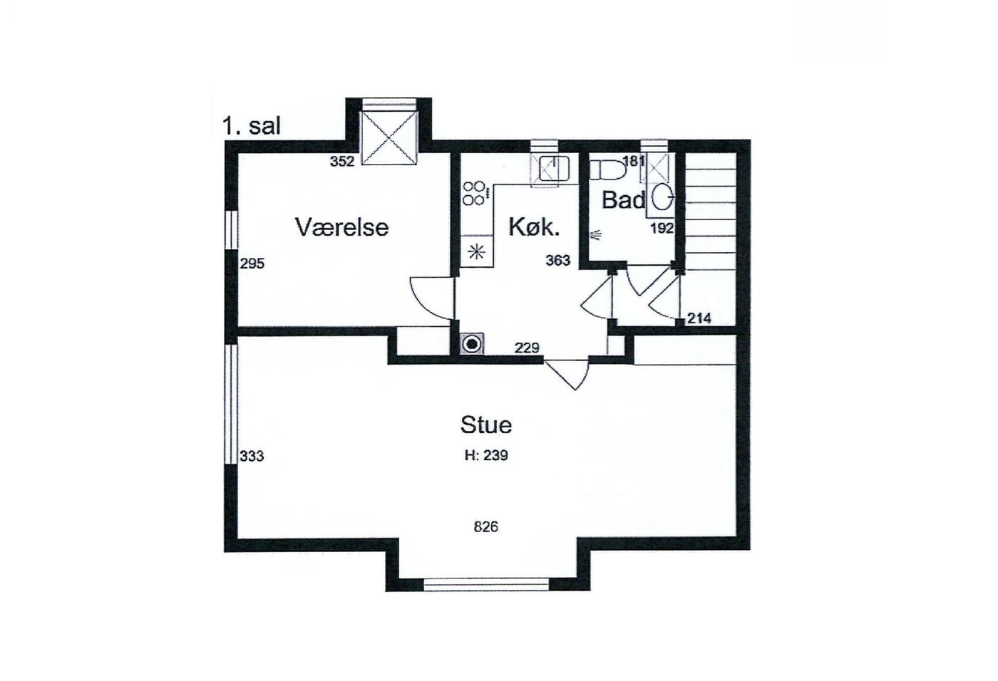 På 1. sal består lejligheden af lille mellemgang, badeværelse med brus, køkken, soveværelse samt stor stue.