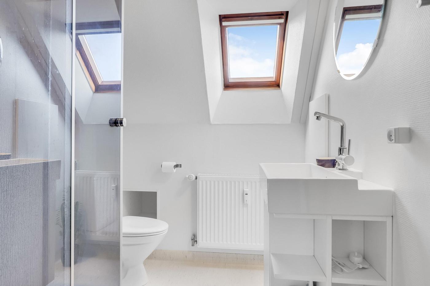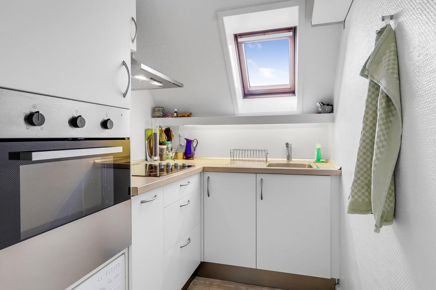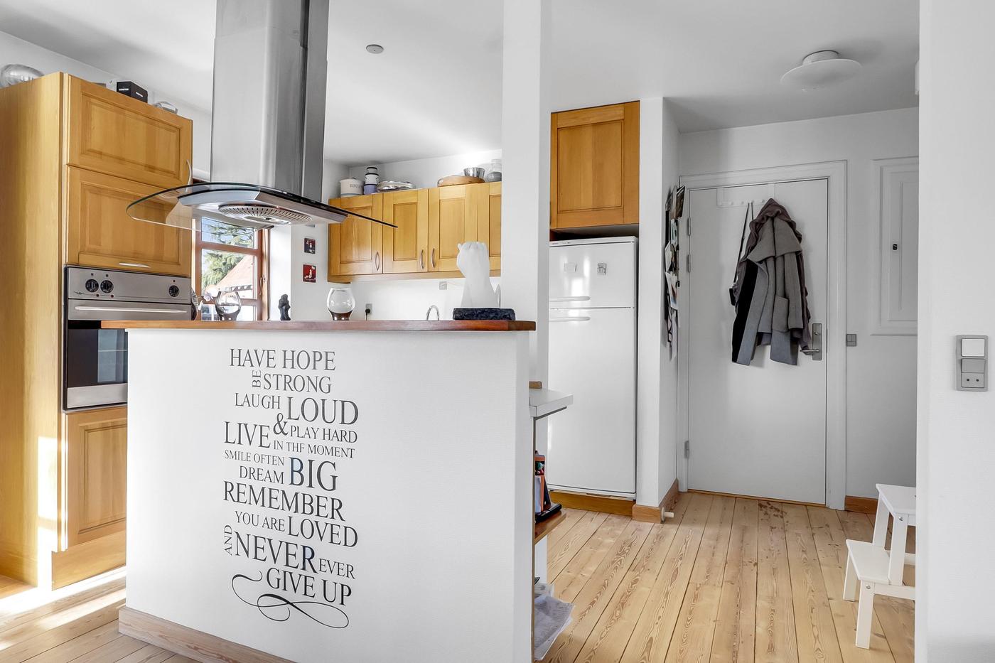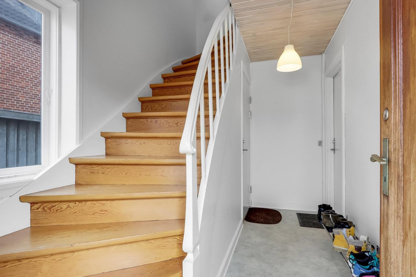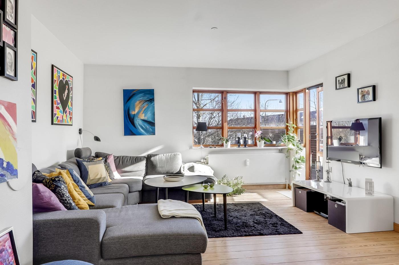 På 1. sal består lejligheden af lille mellemgang, badeværelse med brus, køkken, soveværelse samt stor stue.