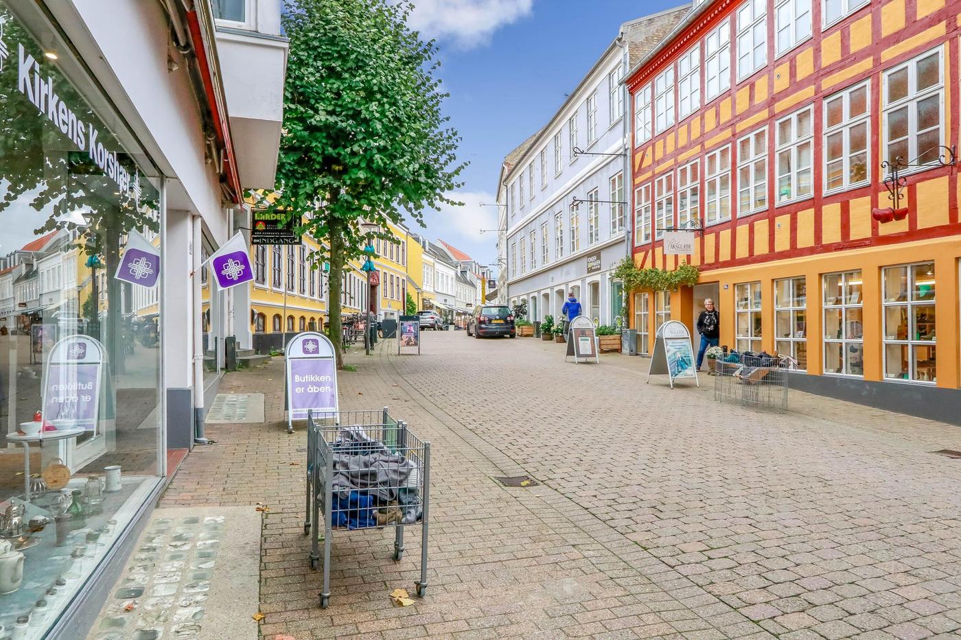 Rummeligt butikslejemål beliggende i del af Møllergade med spændende specialbutikker og en af byens mest kendte og besøgte restauranter - Resumé.