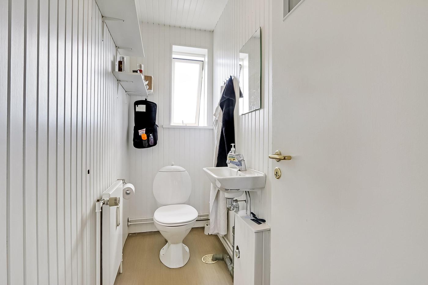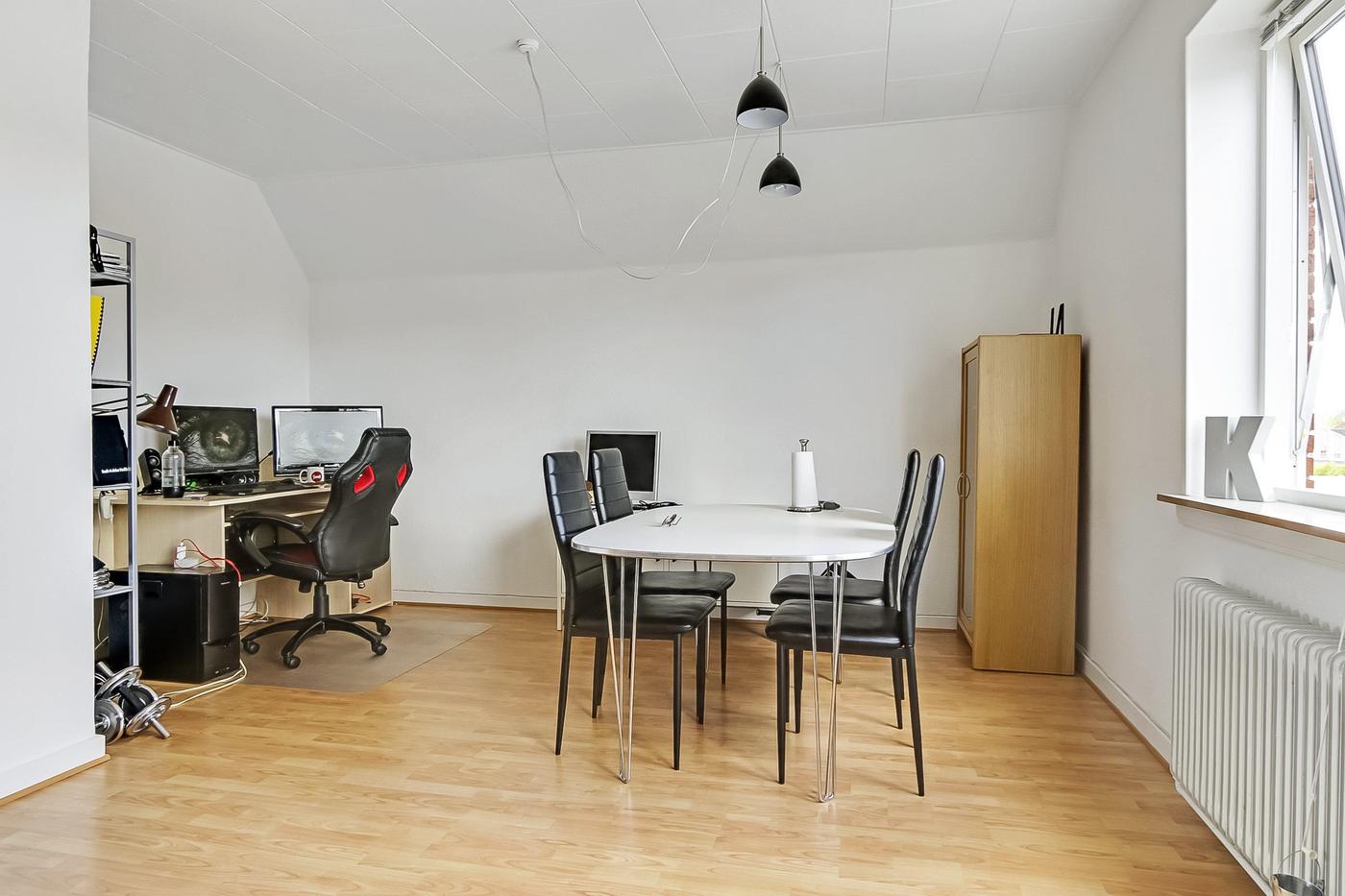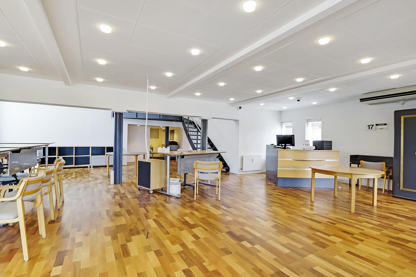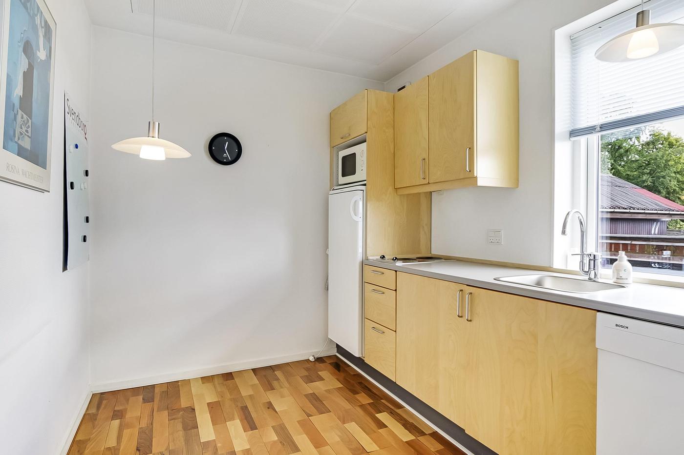 Fra ekspeditionslokalet er der etableret en intern trappe til den overliggende etage. Her er der repos, mødelokale, køkken samt toilet.