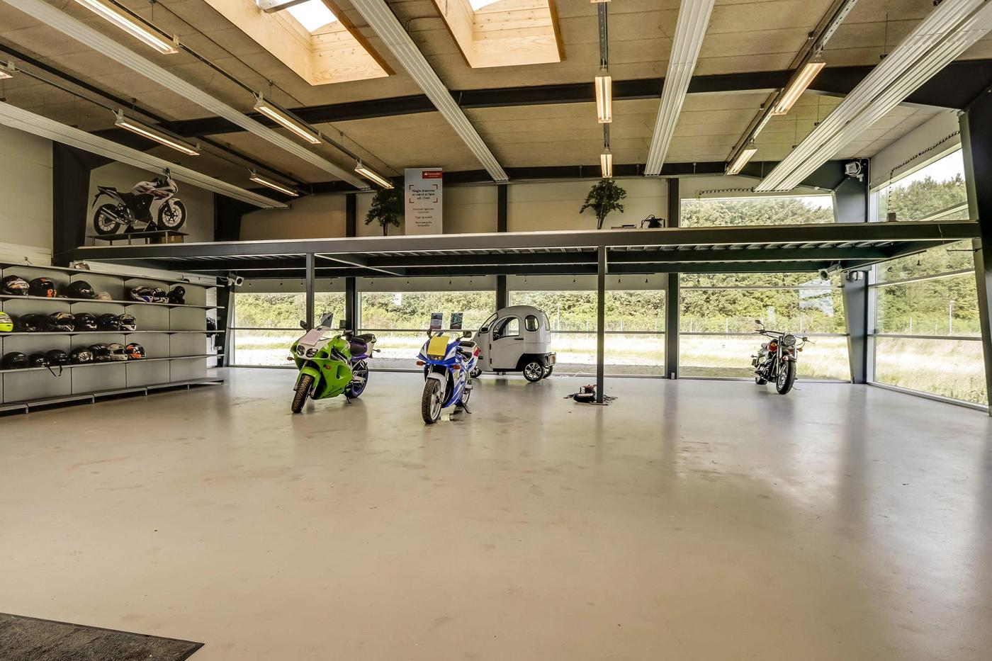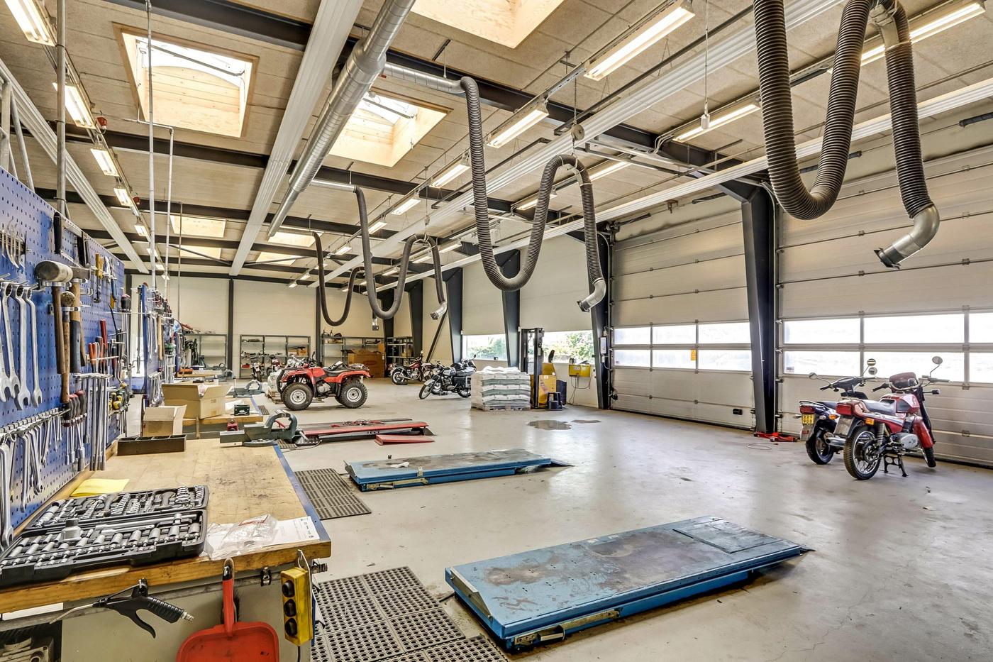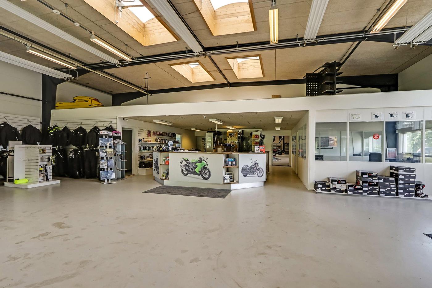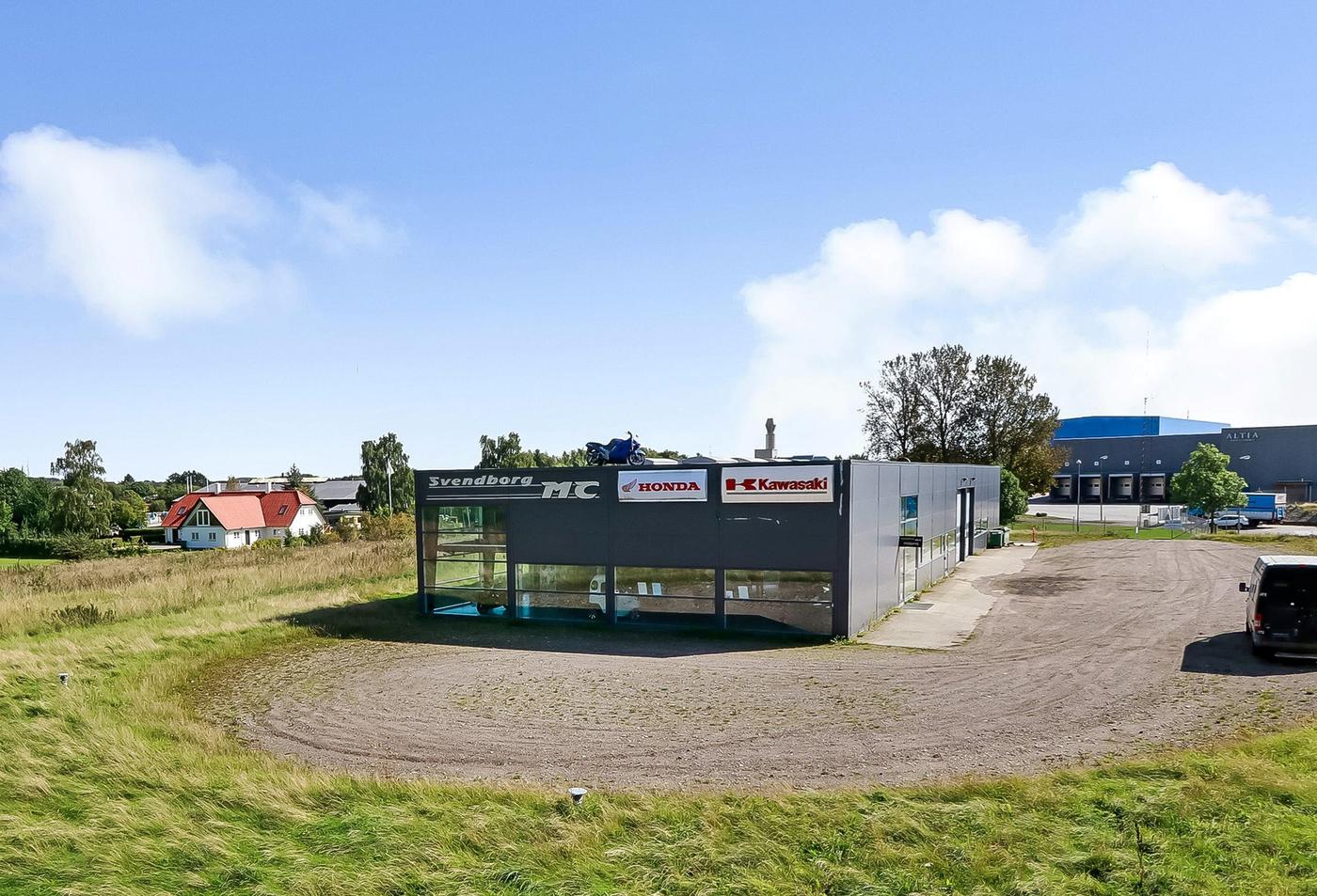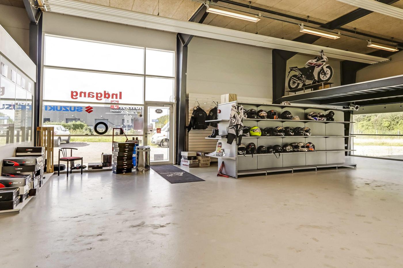 En komplet motorcykelforretning i specialopført ejendom med veludstyret værksted, reservedelslager, butiksindretning og i øvrigt med alt hvad der hører til en moderne MC-forretning.