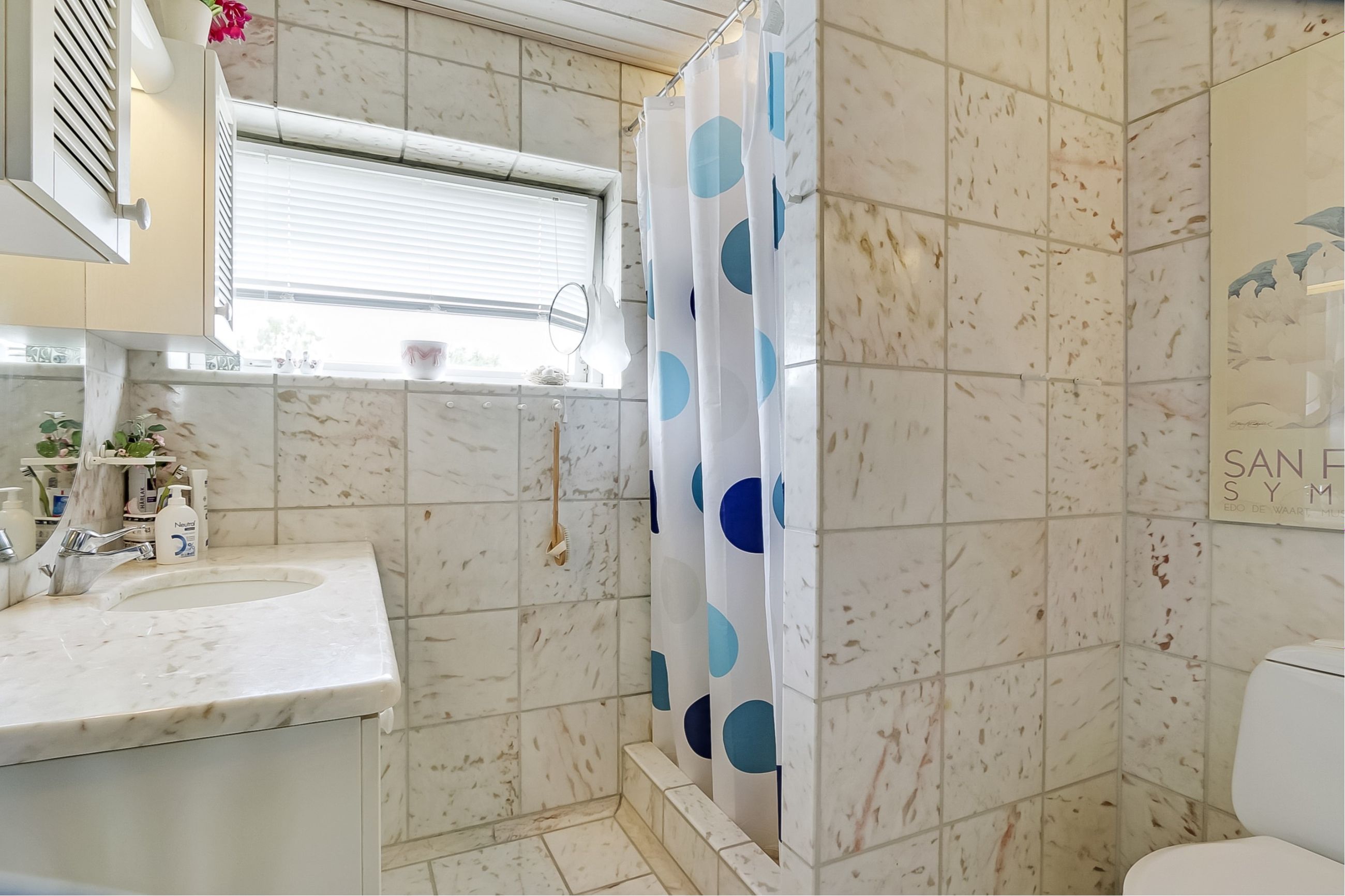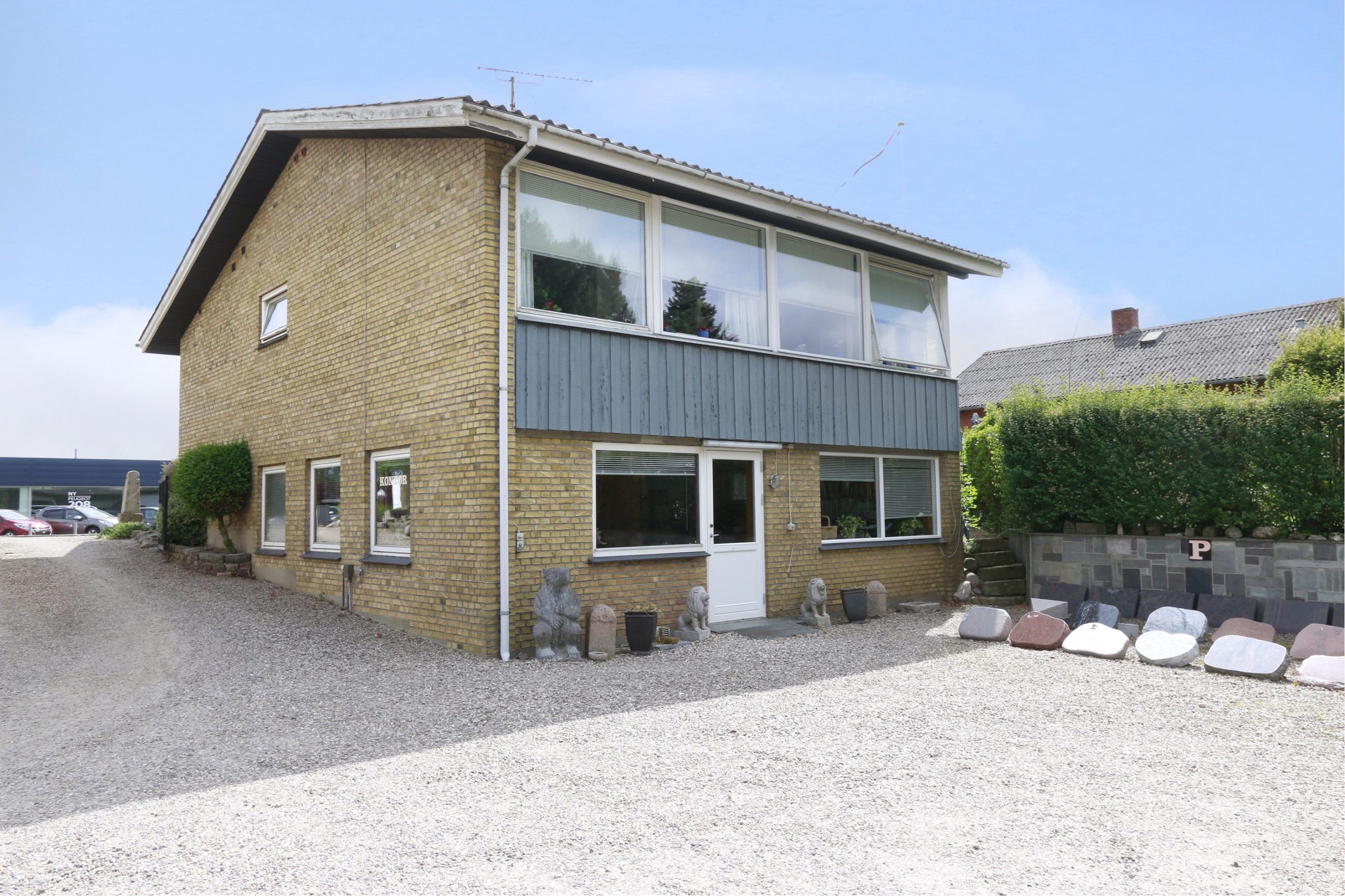 Privatbeboelsen er en gul murstensejendom opført i 1964. Bygningen indeholder en beboelse på ca. 121 m² i flere plan, indrettet med entre, toilet i stueetagen, åbent køkken til spise- og opholdsstue med udgang til hyggelig udestue. Fra udestuen er der videre adgang til terrasse og dejlig lukket have. I beboelsens gang er der trappe til 1. sal med soveværelse, kontor og et ekstra værelse. Derudover findes pænt og velholdt badeværelse.