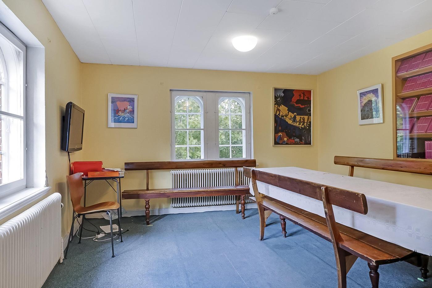 I forlængelse af kirkesalen findes mødelokale med opgang til 1. sal, hvor der er indrettet mindre mødelokale og arkiv.